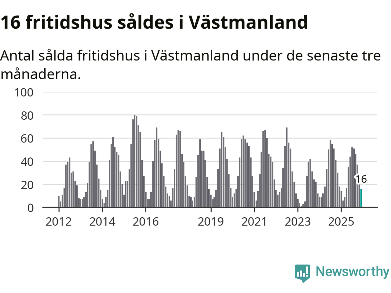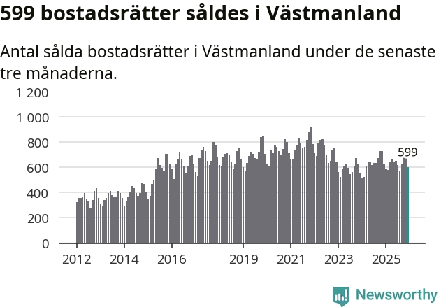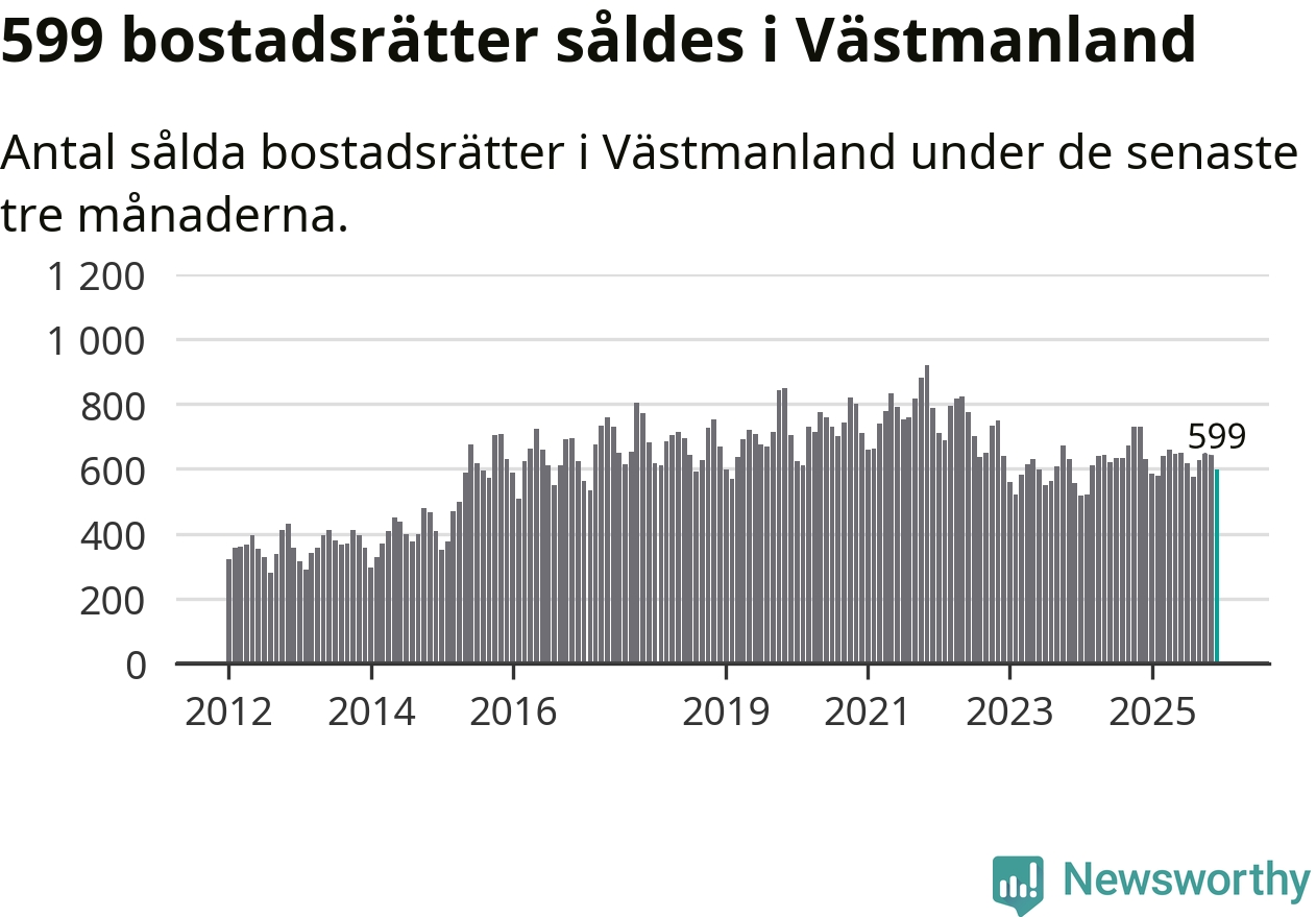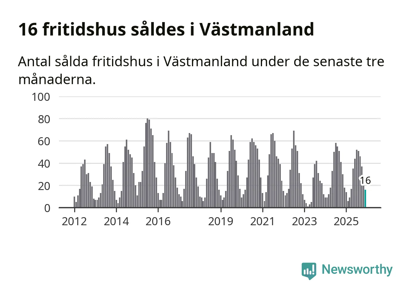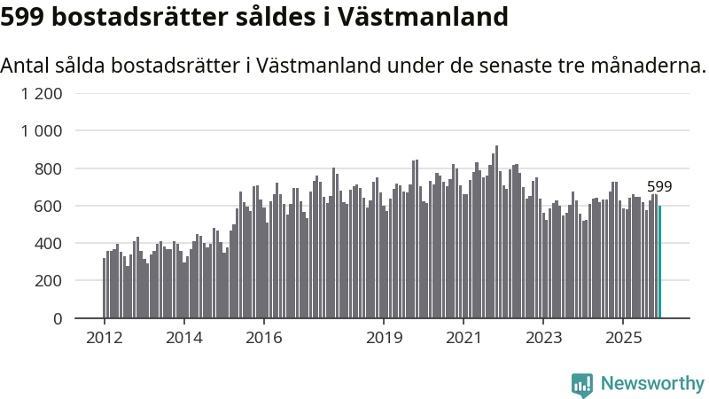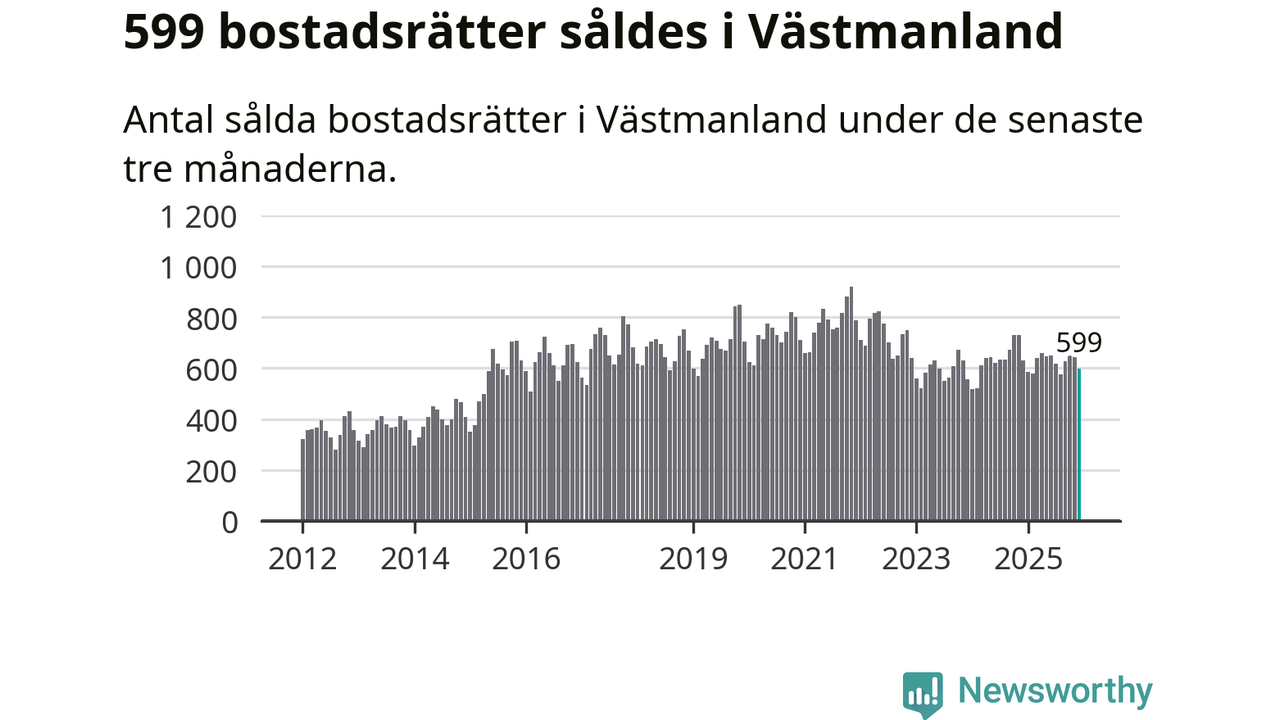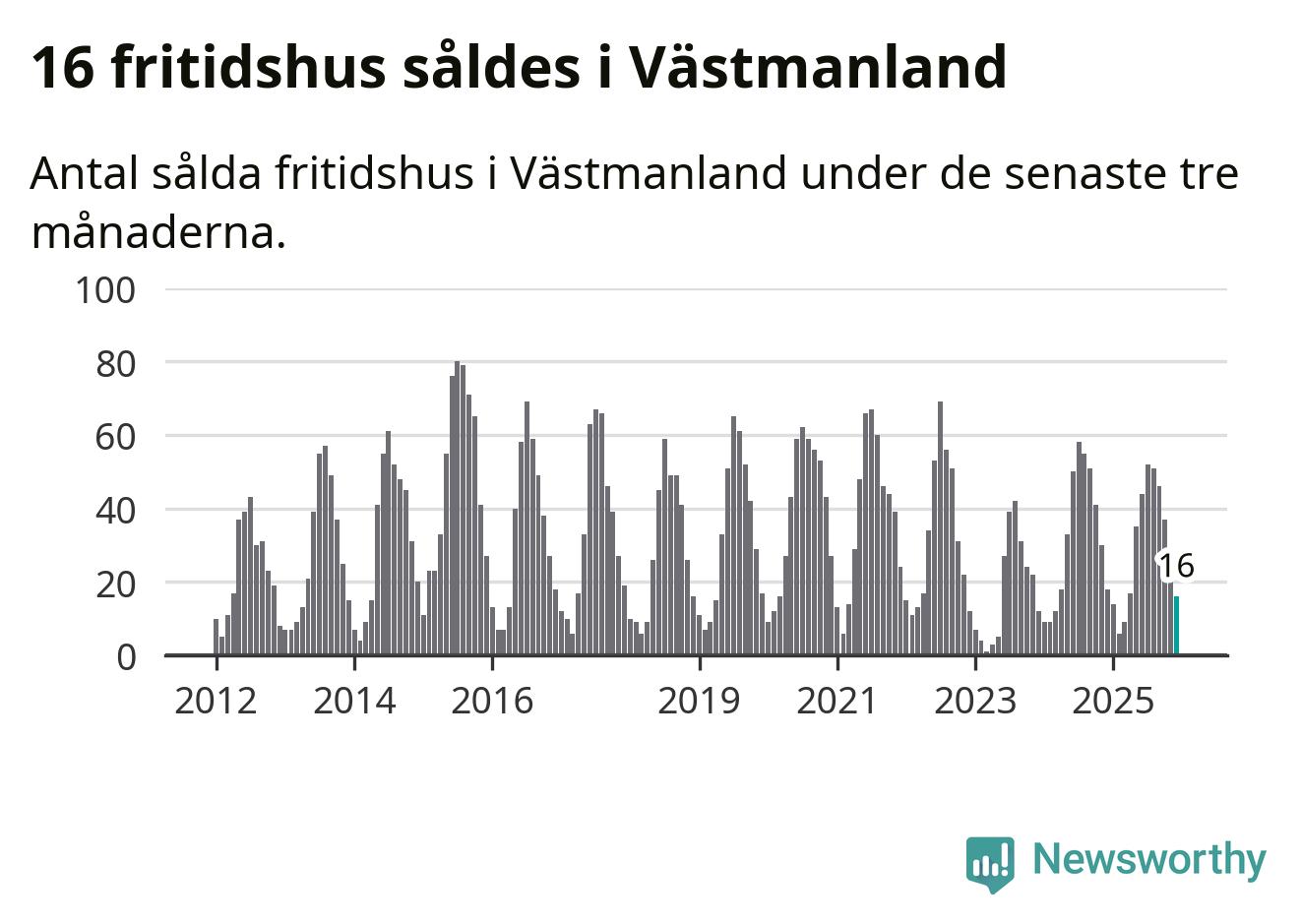 Sammanlagt såldes 16 fritidshus i Västmanlands län mellan oktober 2025 och december 2025 till ett genomsnittligt pris på 1,2 miljoner kronor. I fjol gjordes 18 affärer vid den här tiden på året.
