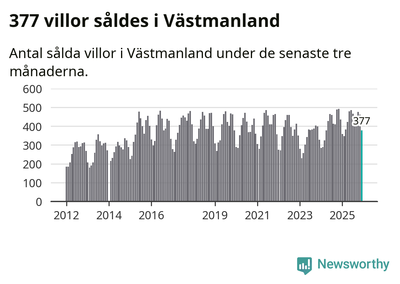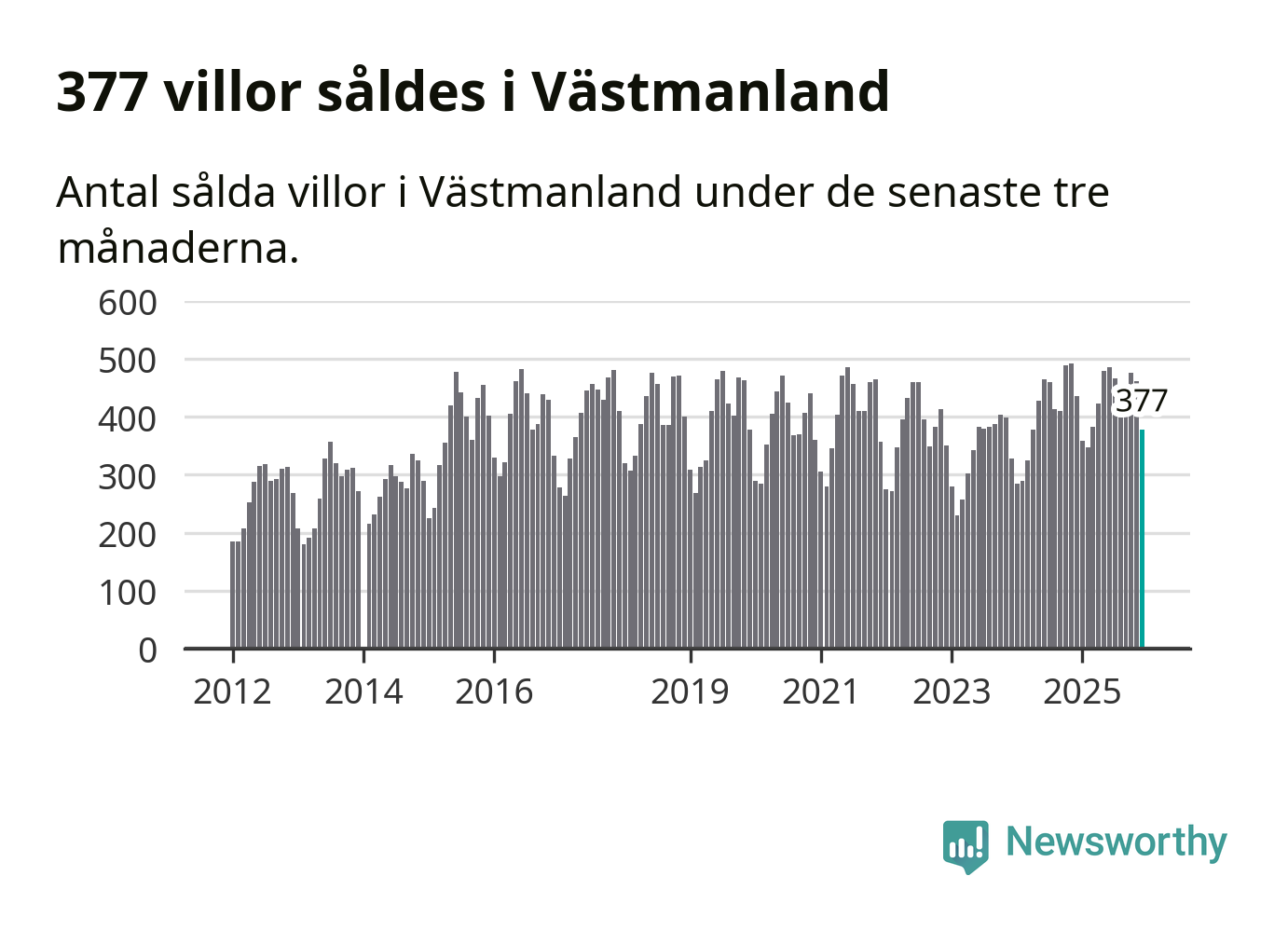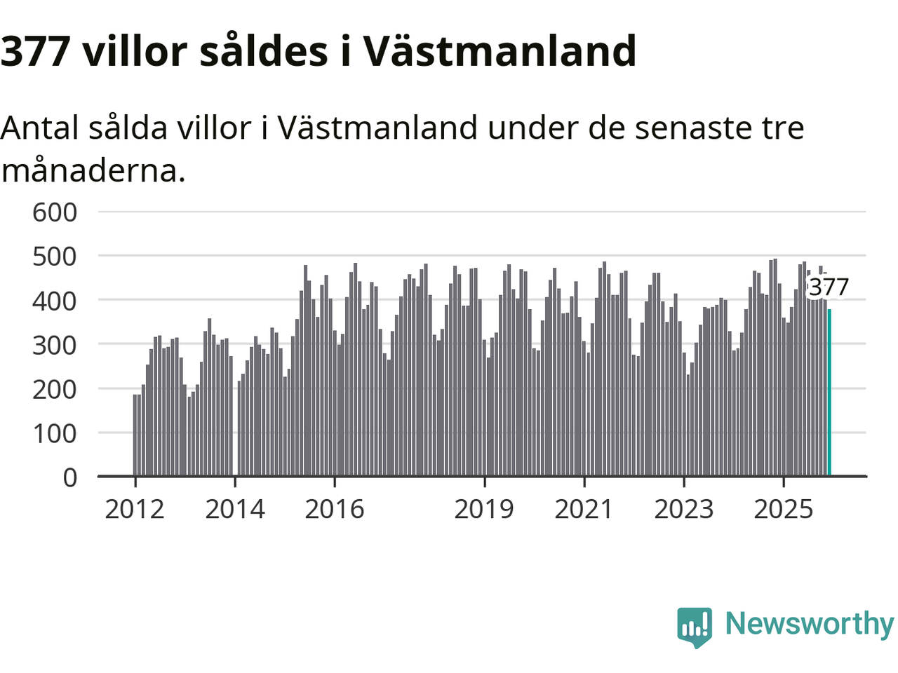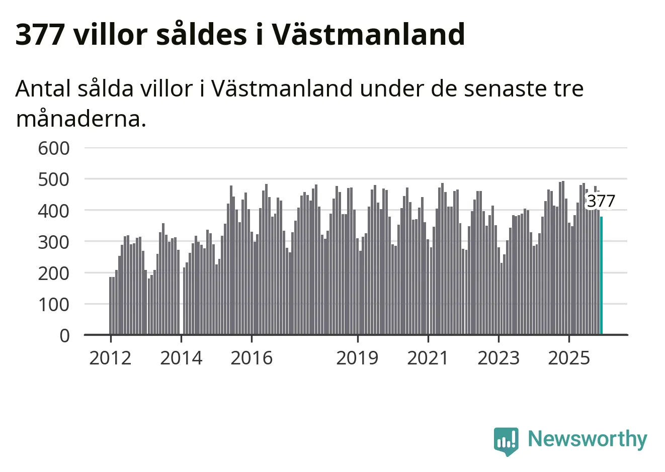 Sammanlagt såldes 377 villor i Västmanlands län mellan oktober och december till ett genomsnittligt pris på 3,2 miljoner kronor. I fjol gjordes 435 affärer vid den här tiden på året.