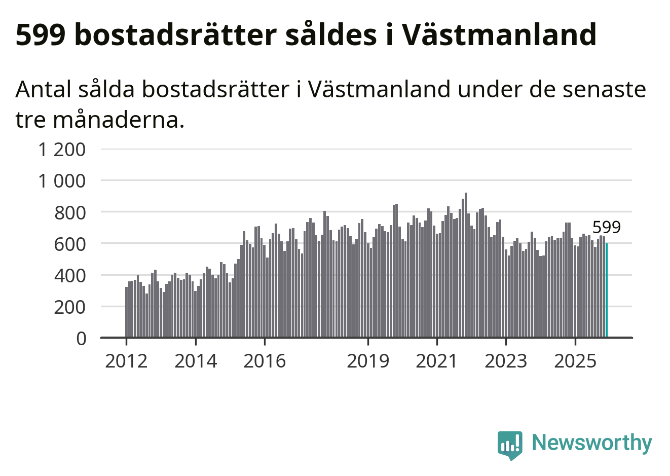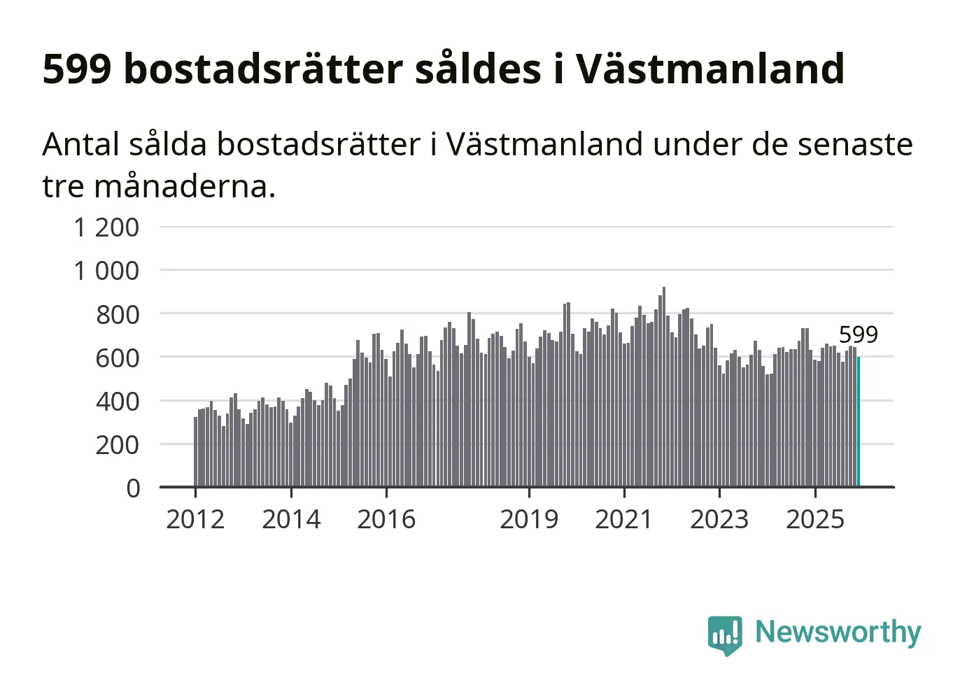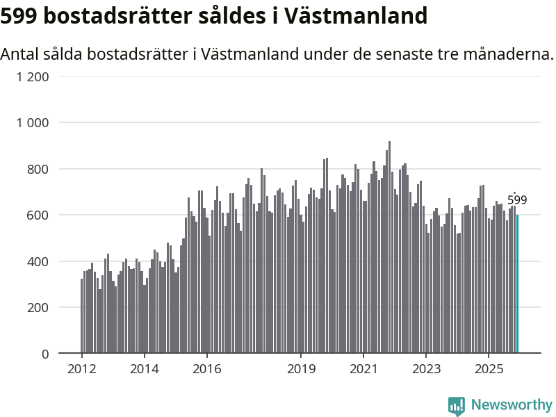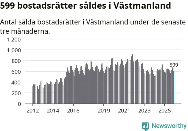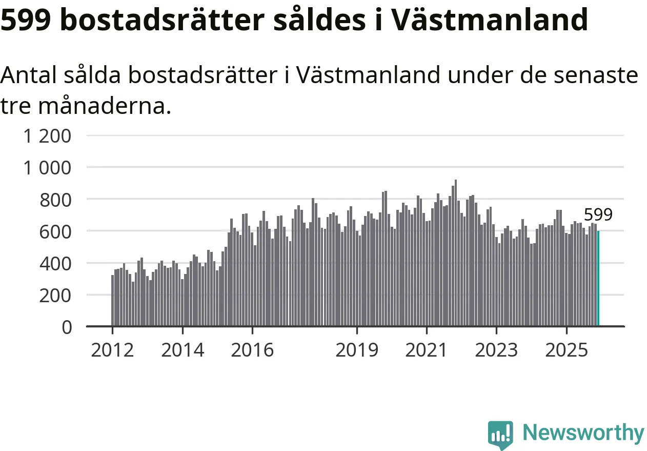 Sammanlagt såldes 599 bostadsrätter i Västmanlands län mellan oktober och december till ett genomsnittligt pris på 1,4 miljoner kronor. I fjol gjordes 629 affärer vid den här tiden på året.
