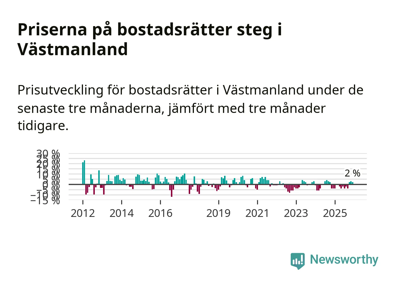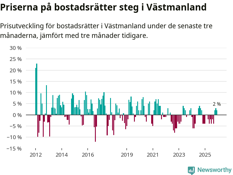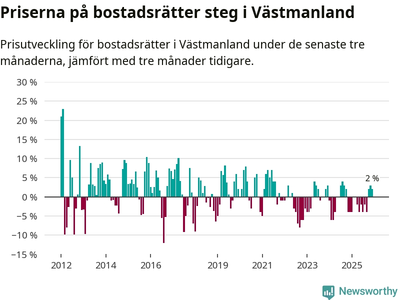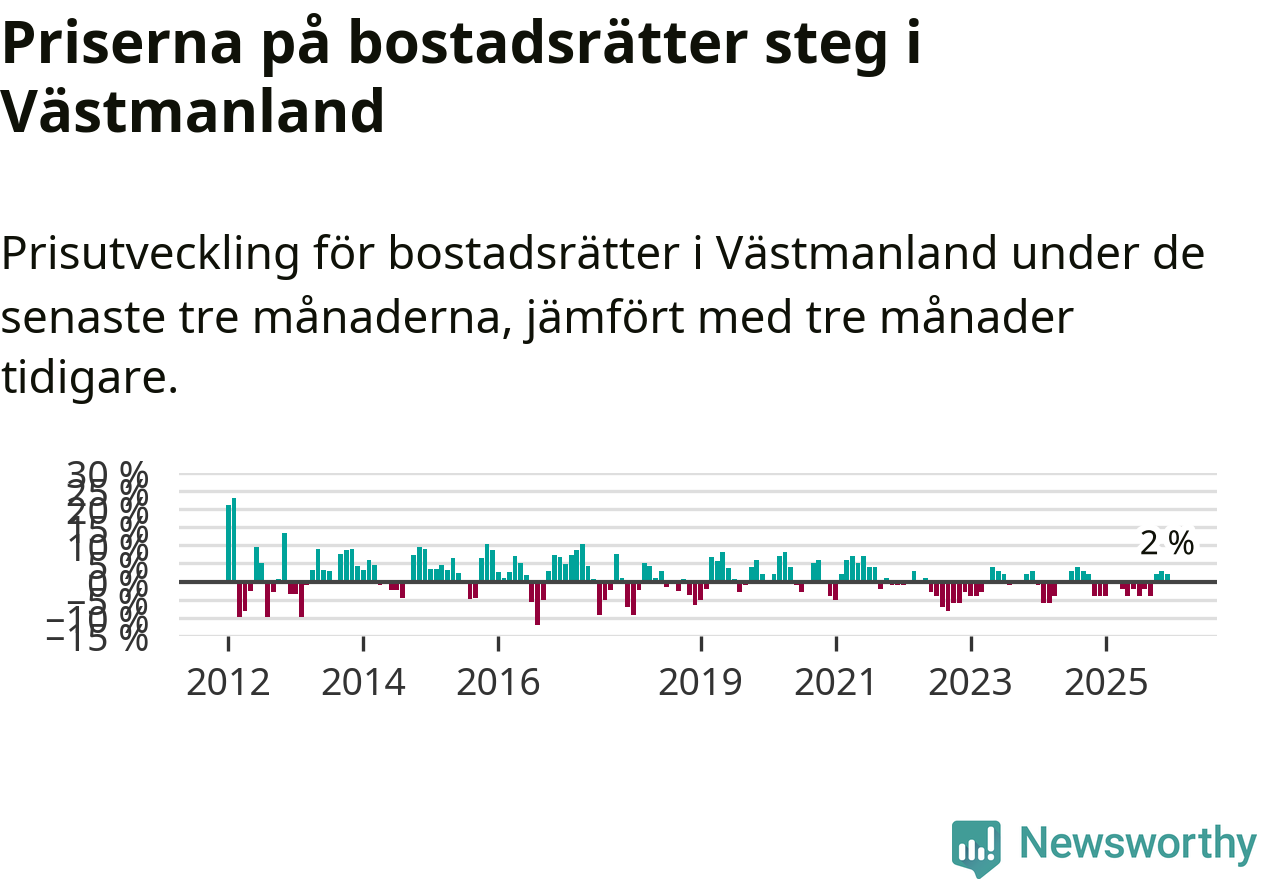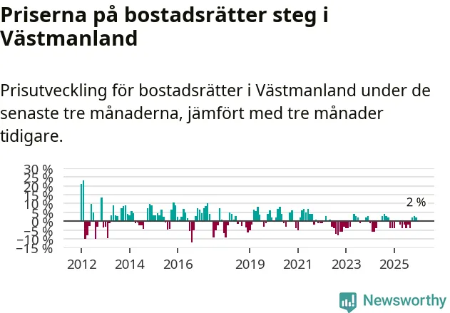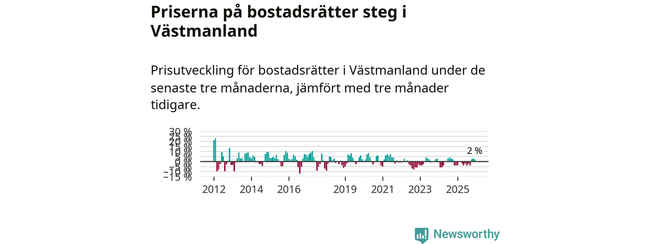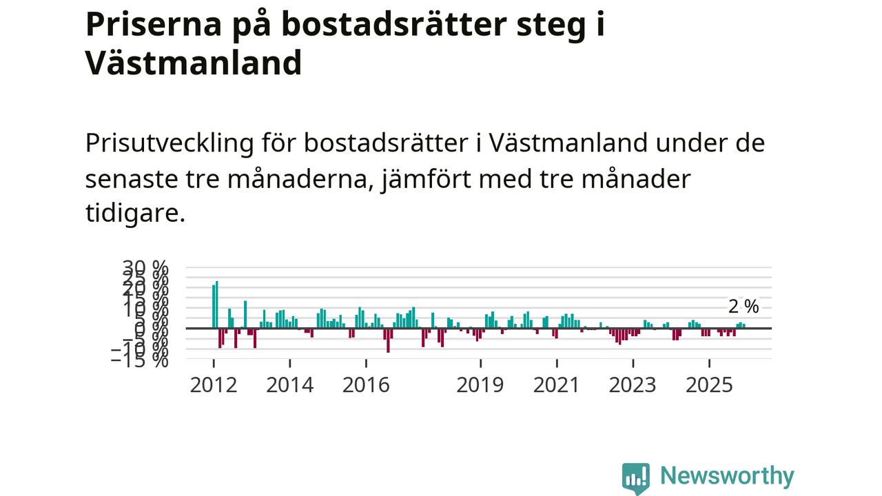 Priserna på bostadsrätter har gått upp i Västmanlands län. Medelpriset på försäljningarna under de senaste tre månaderna visar på en uppgång med 2 procent.