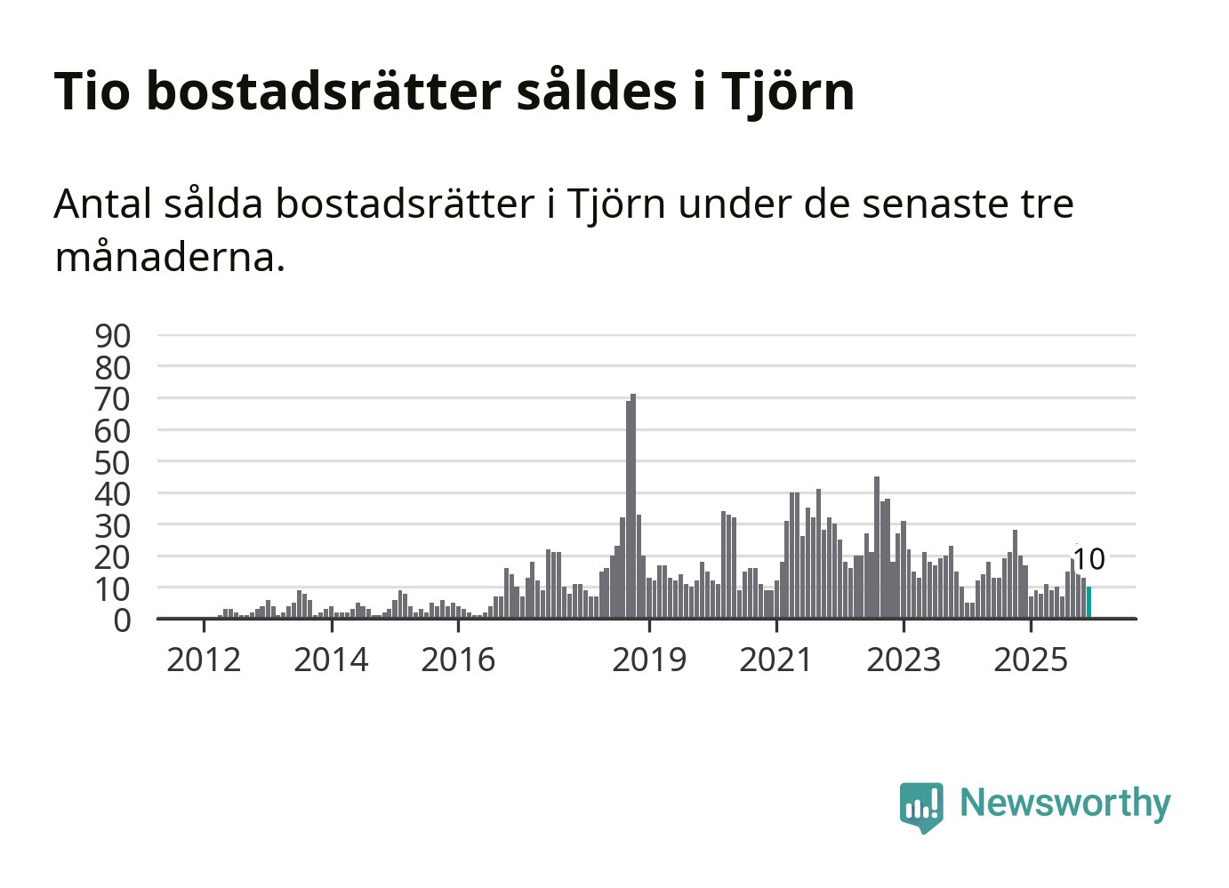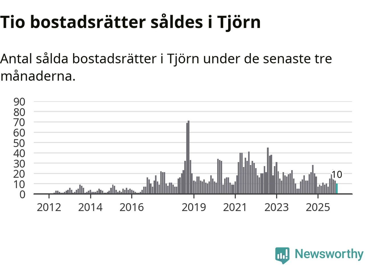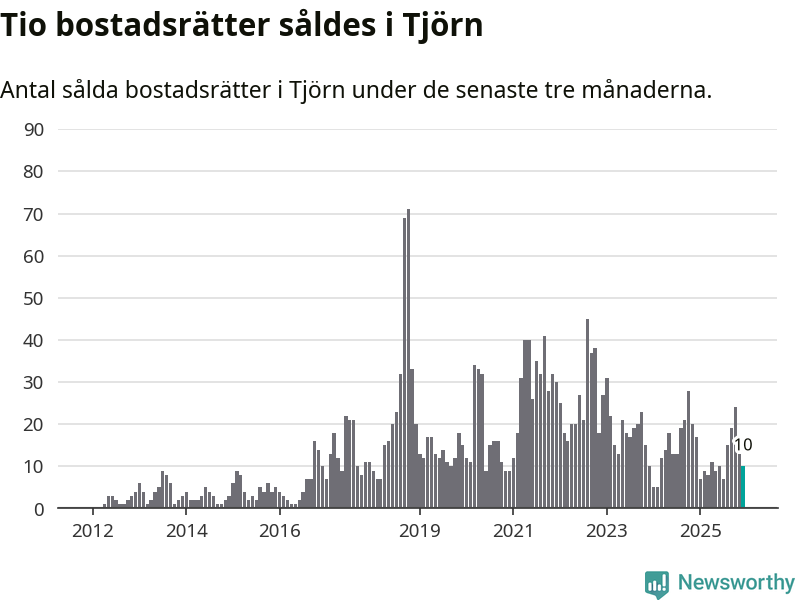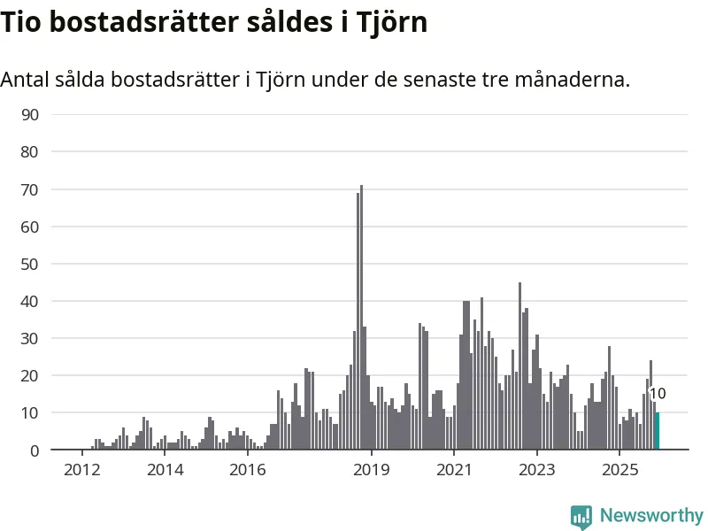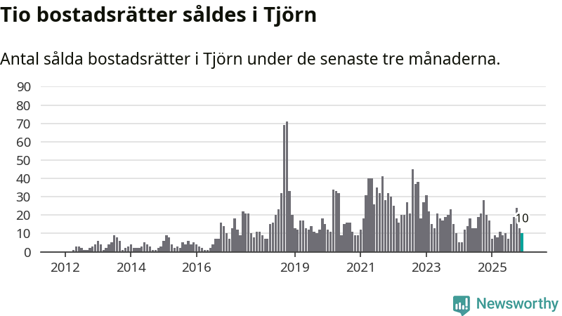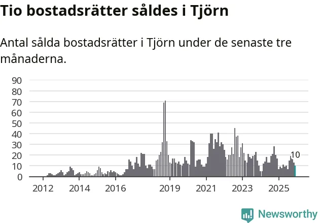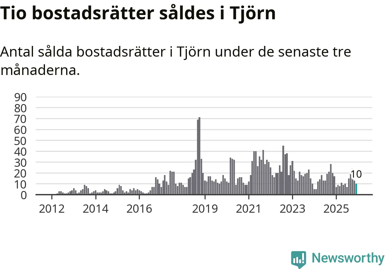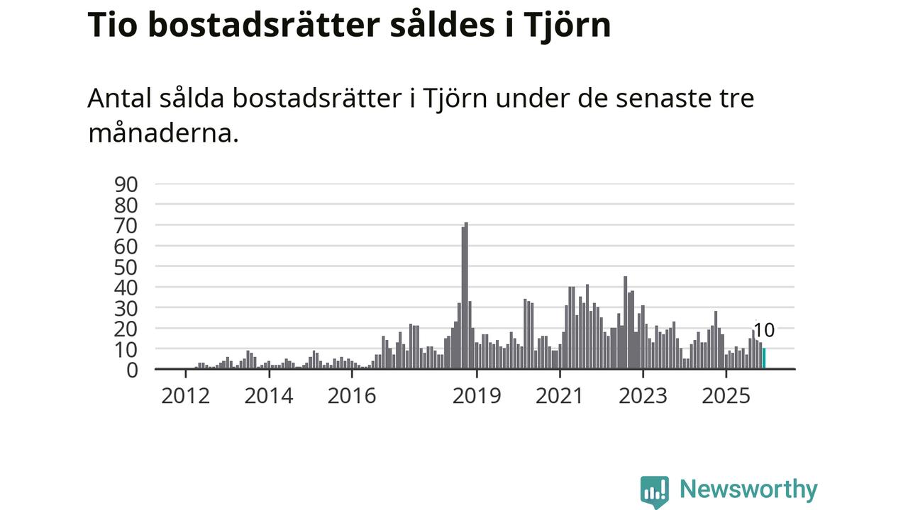 Mellan oktober och december gjordes sammanlagt tio affärer med bostadsrätter i Tjörns kommun. Det kan jämföras med 17 vid motsvarande tid i fjol.