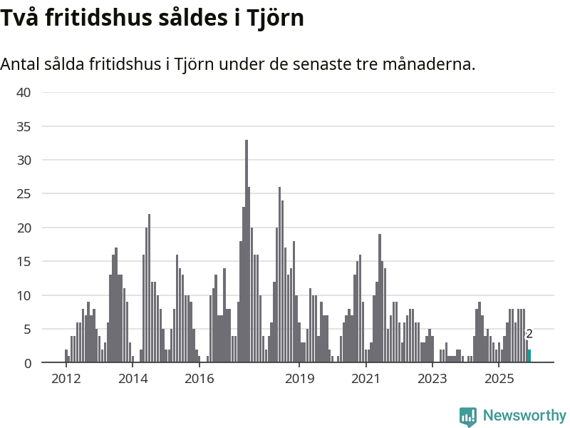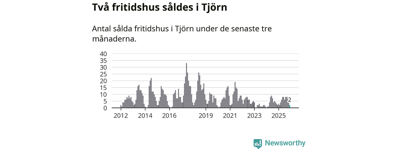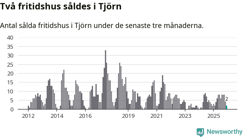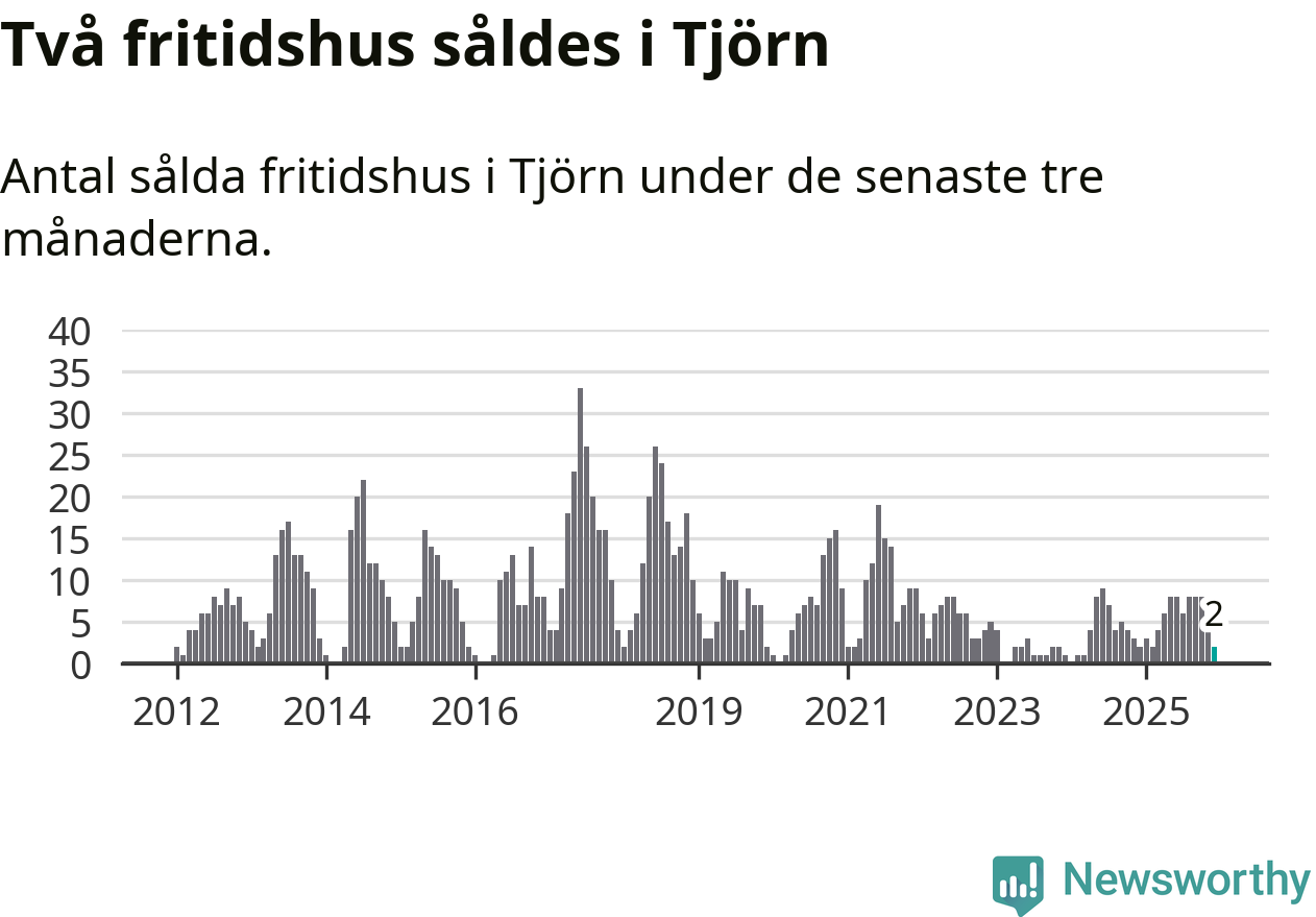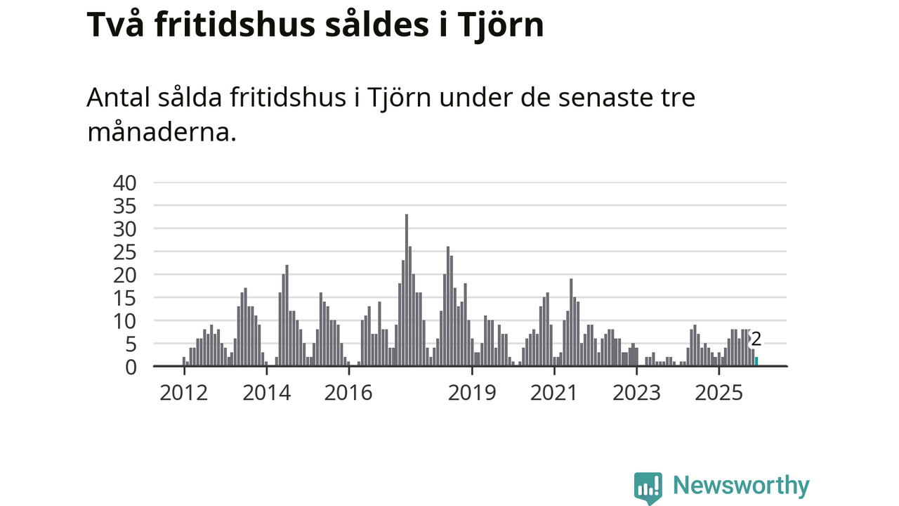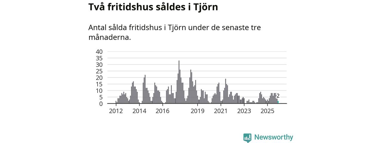 Mellan oktober och december gjordes sammanlagt två affärer med fritidshus i Tjörns kommun. Det är lika många affärer som vid motsvarande tid i fjol.