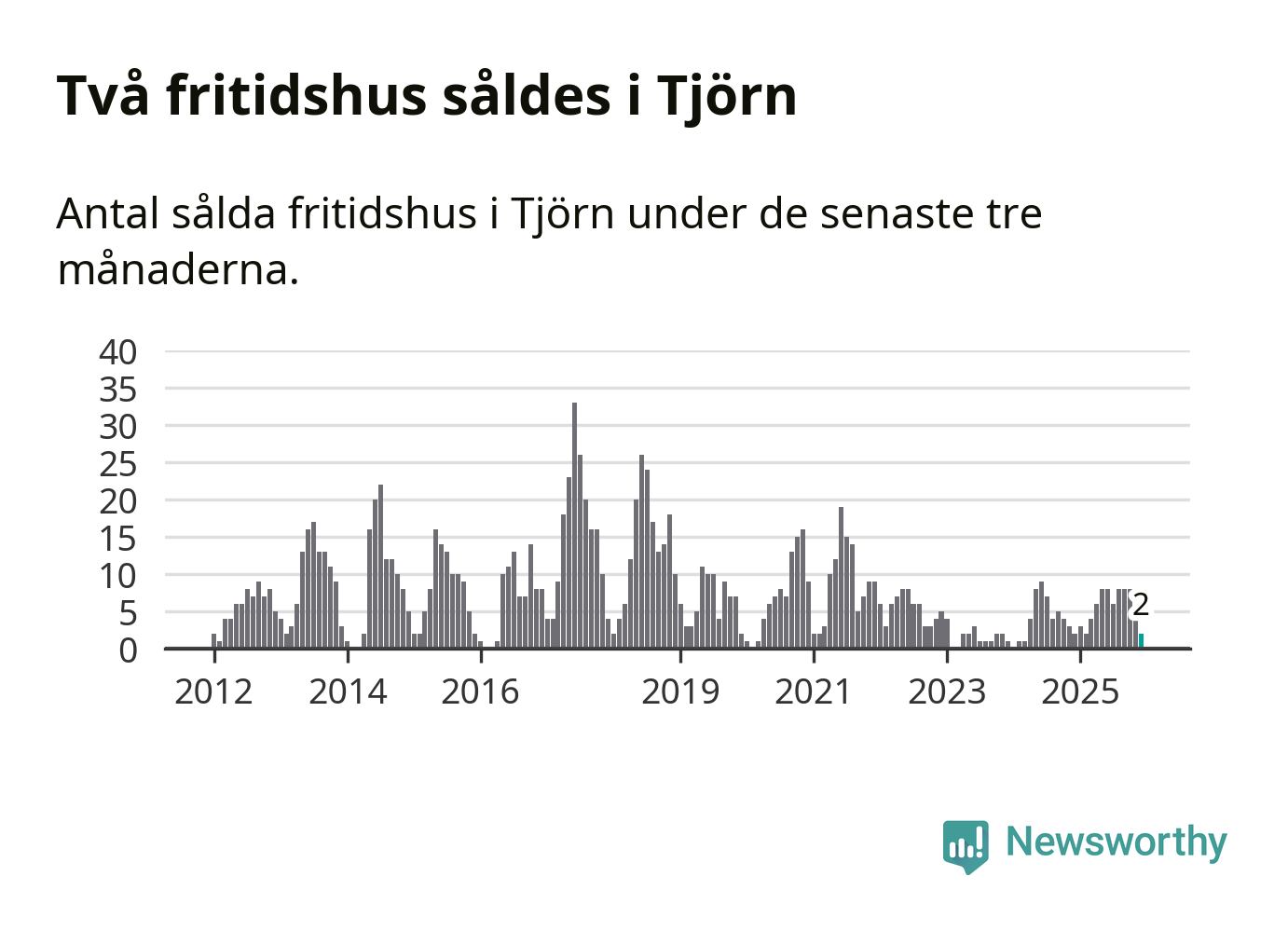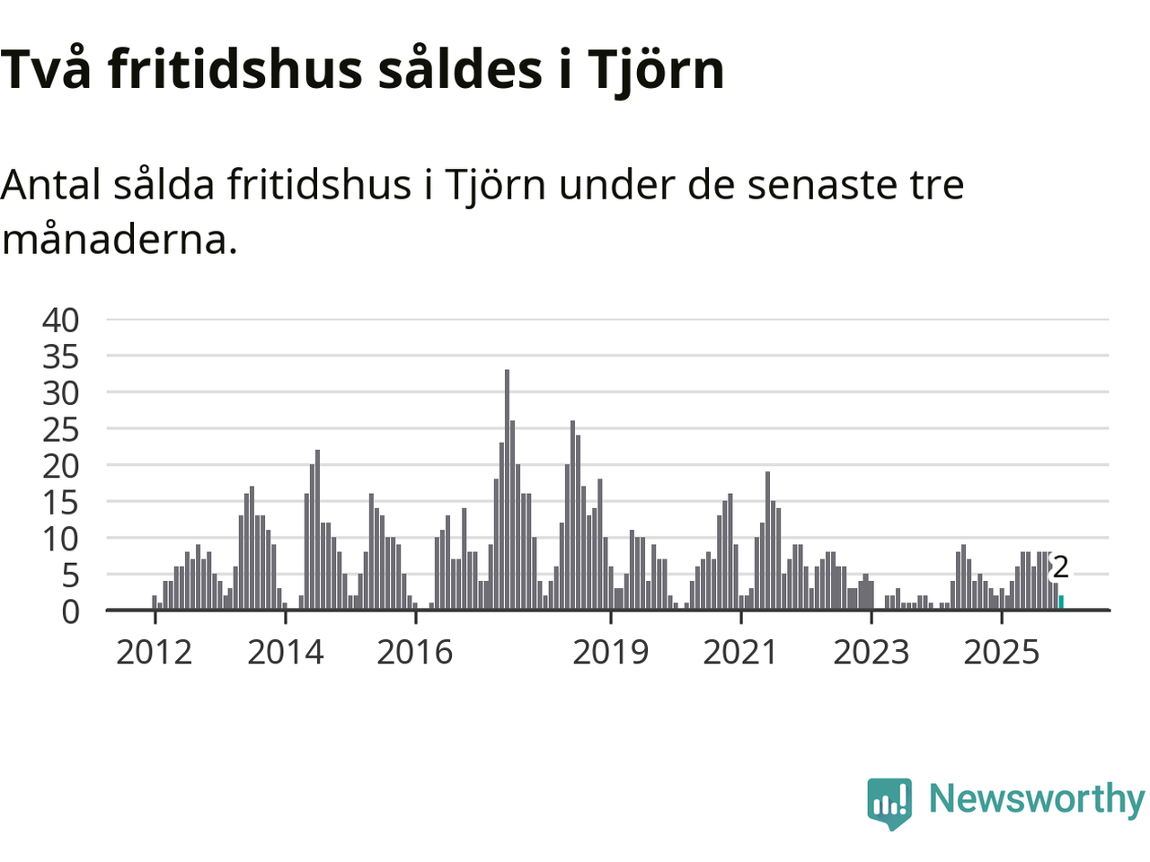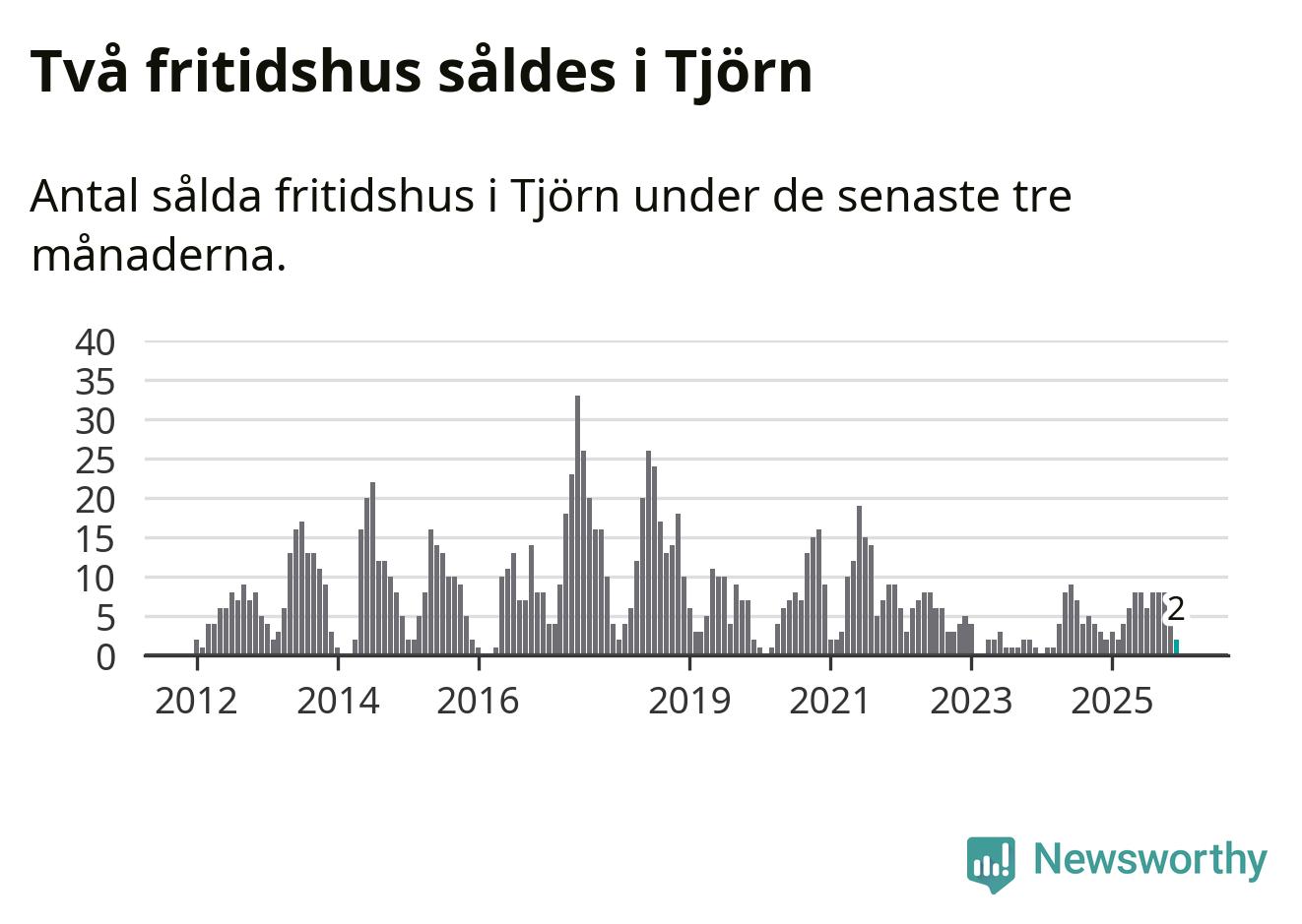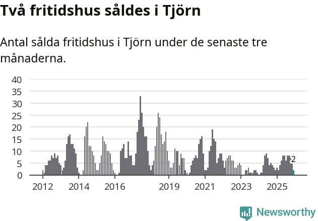 Mellan oktober och december gjordes sammanlagt två affärer med fritidshus i Tjörns kommun. Det är lika många affärer som vid motsvarande tid i fjol.
