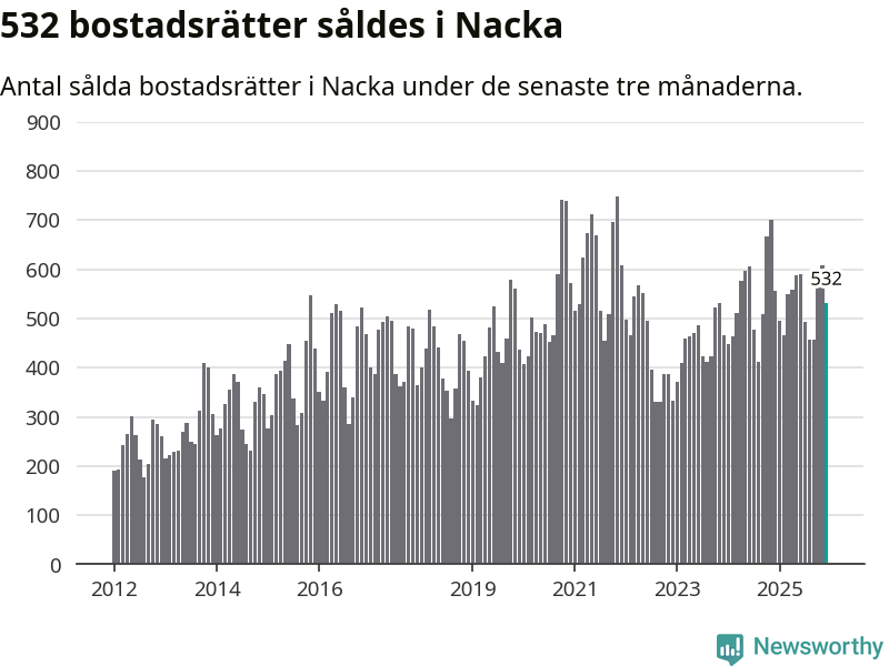 Graf: Antal sålda bostadsrätter i Nacka kommun