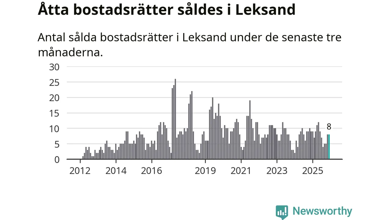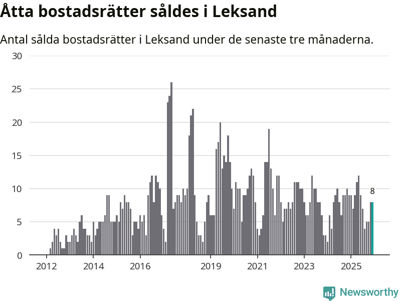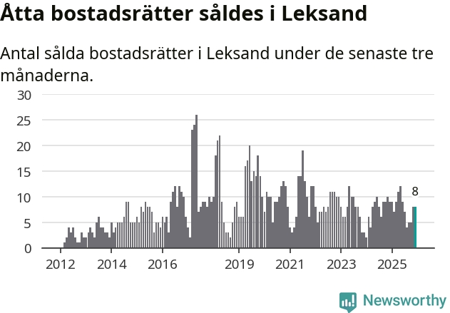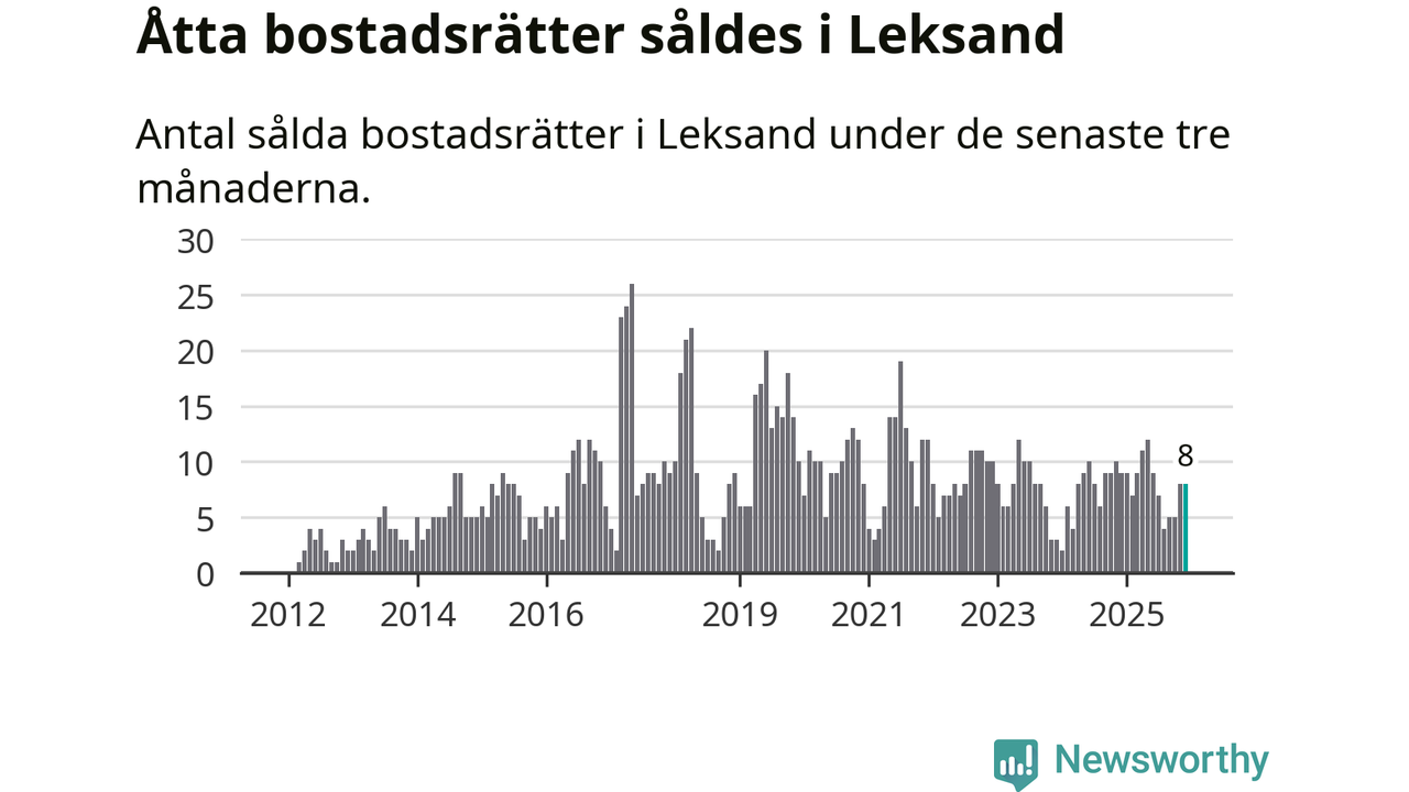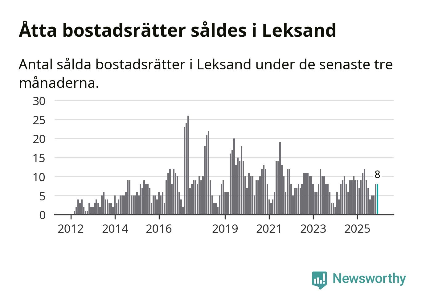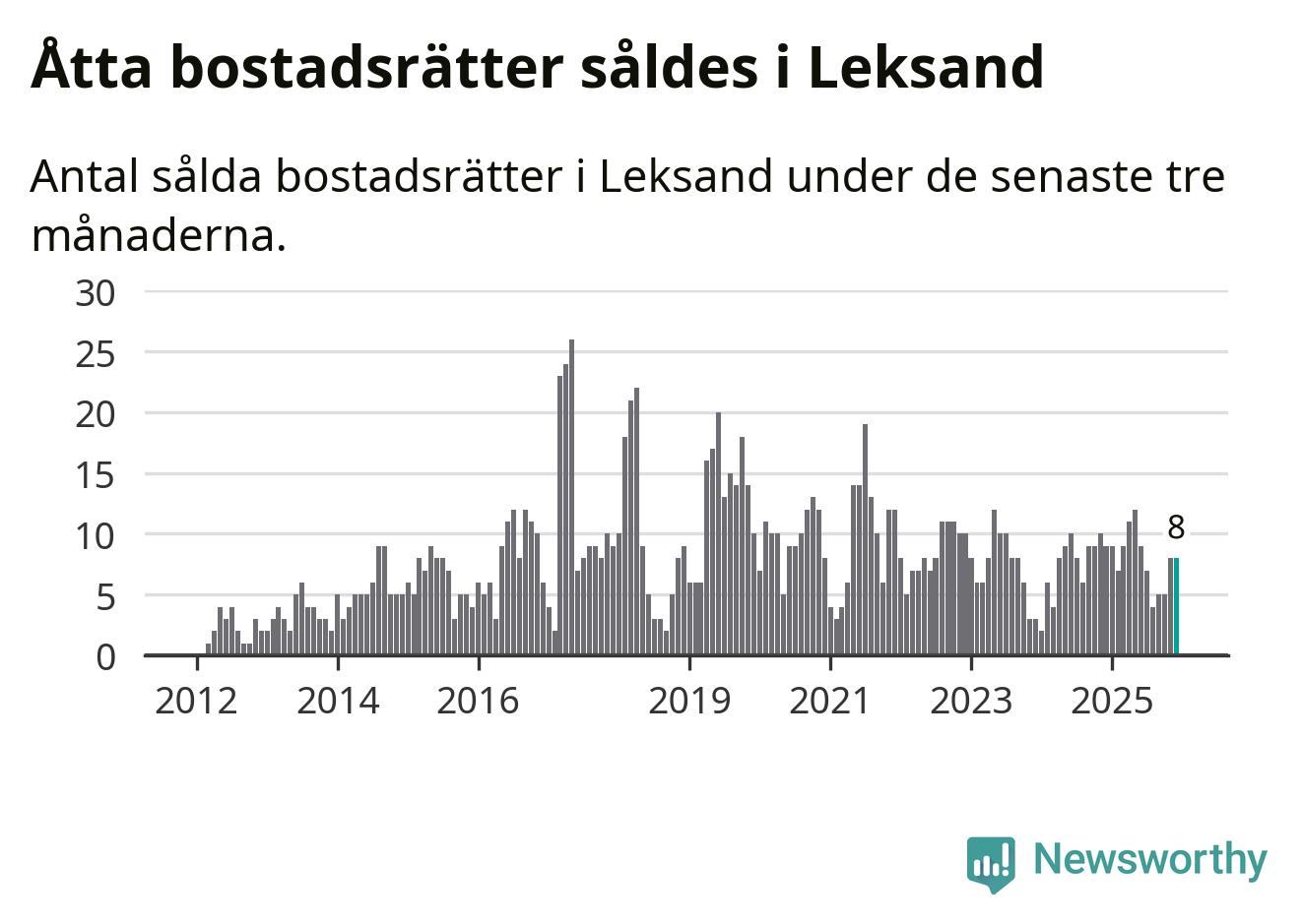 Mellan oktober och december gjordes sammanlagt åtta affärer med bostadsrätter i Leksands kommun. Det kan jämföras med nio vid motsvarande tid i fjol.