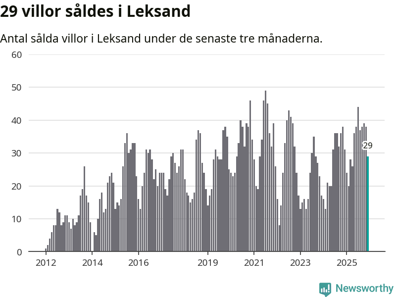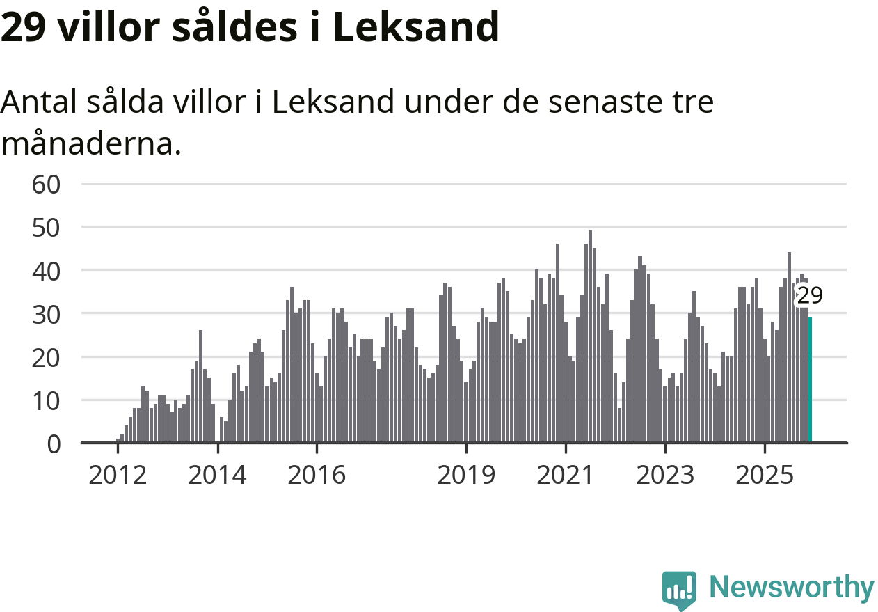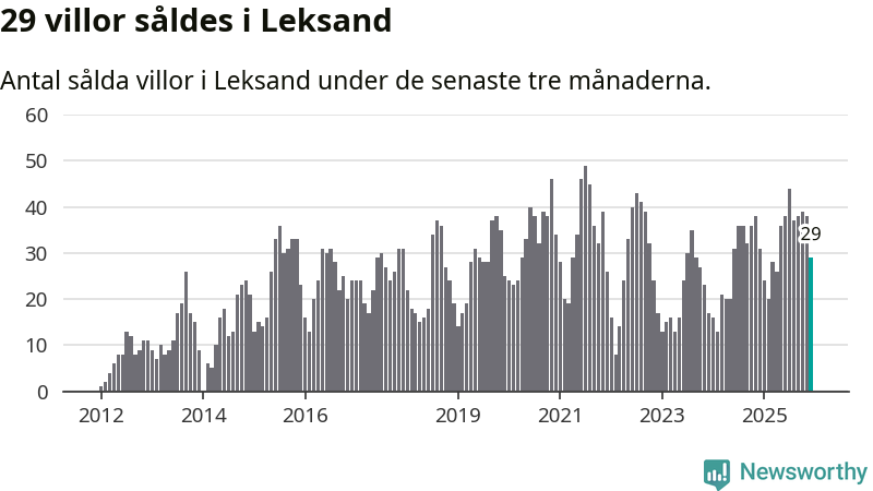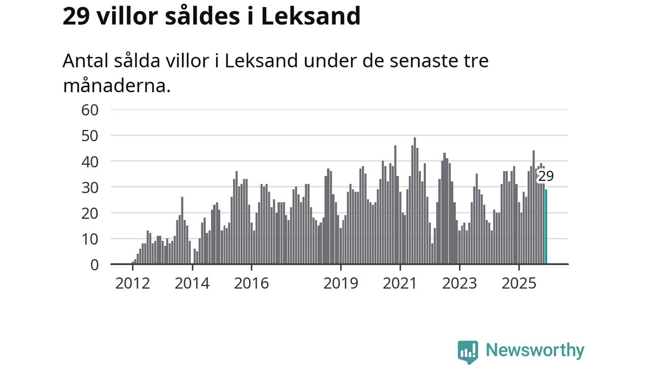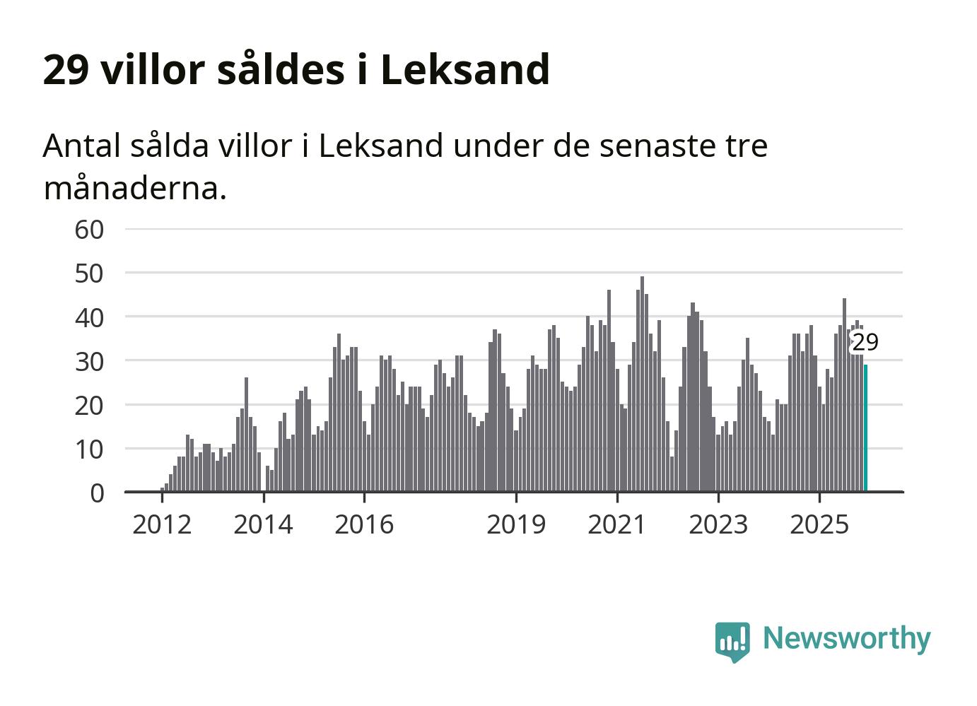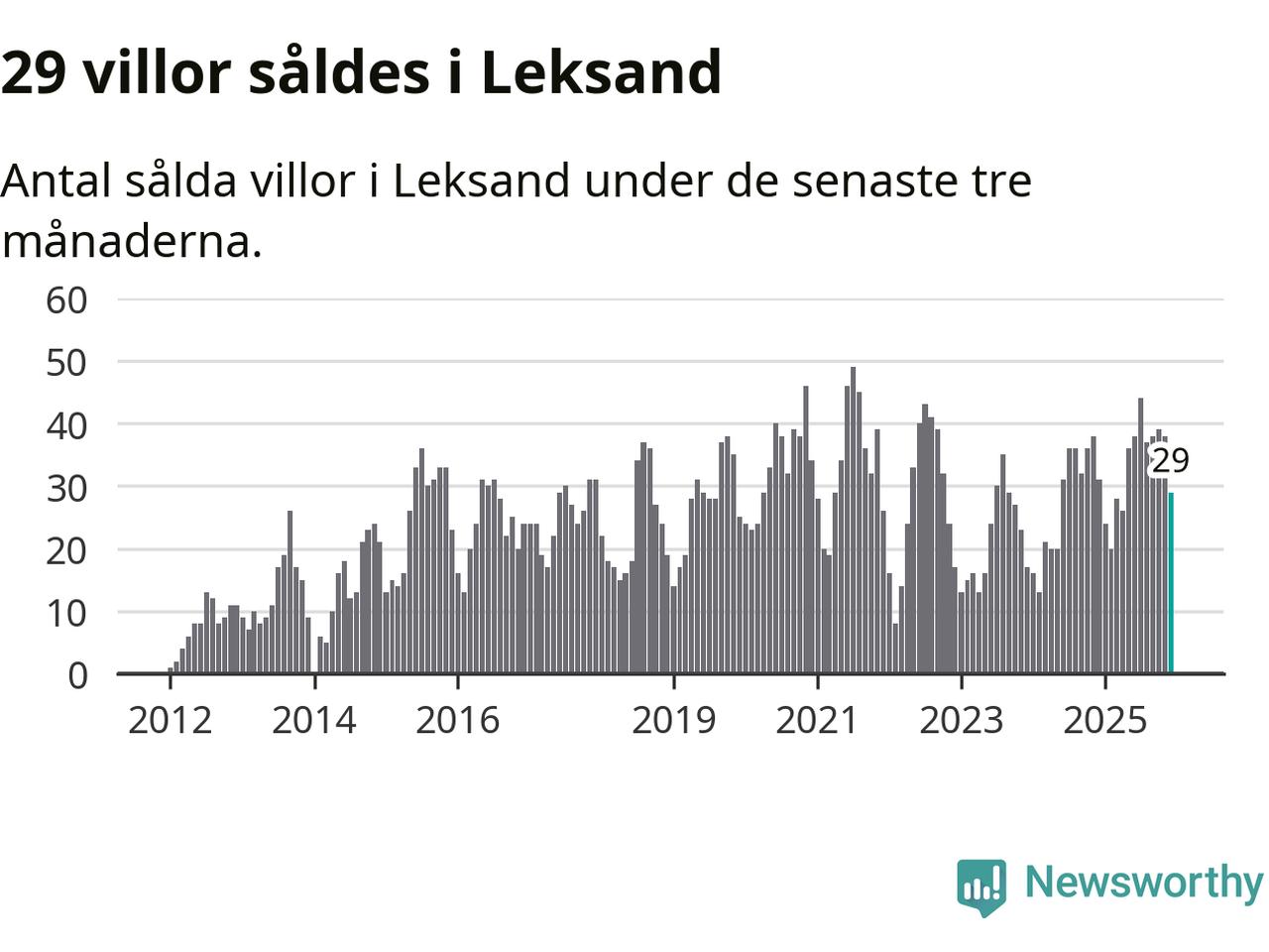Mellan oktober och december gjordes sammanlagt 29 affärer med villor i Leksands kommun. Det kan jämföras med 31 vid motsvarande tid i fjol.