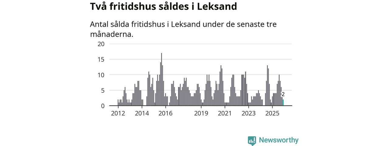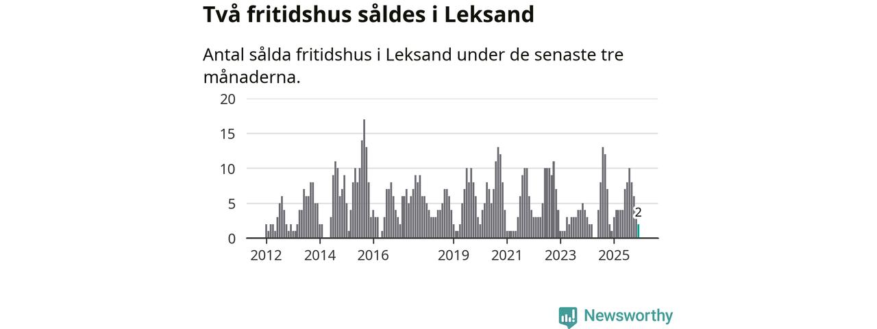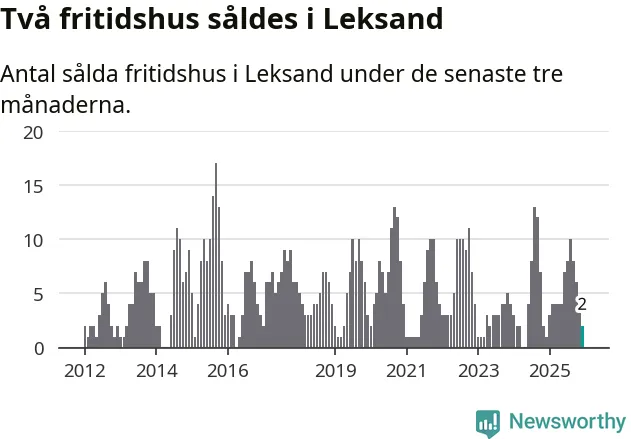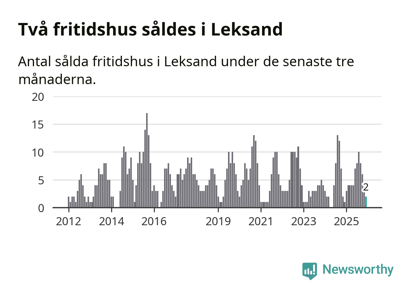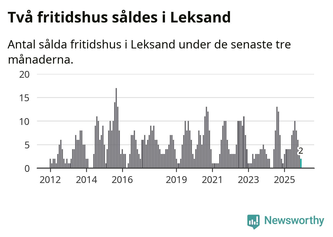 Mellan oktober och december gjordes sammanlagt två affärer med fritidshus i Leksands kommun. Det kan jämföras med ett vid motsvarande tid i fjol.