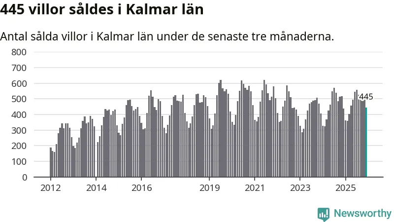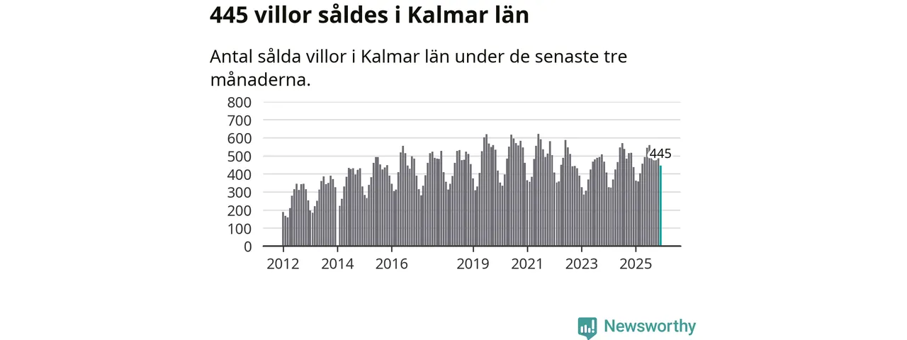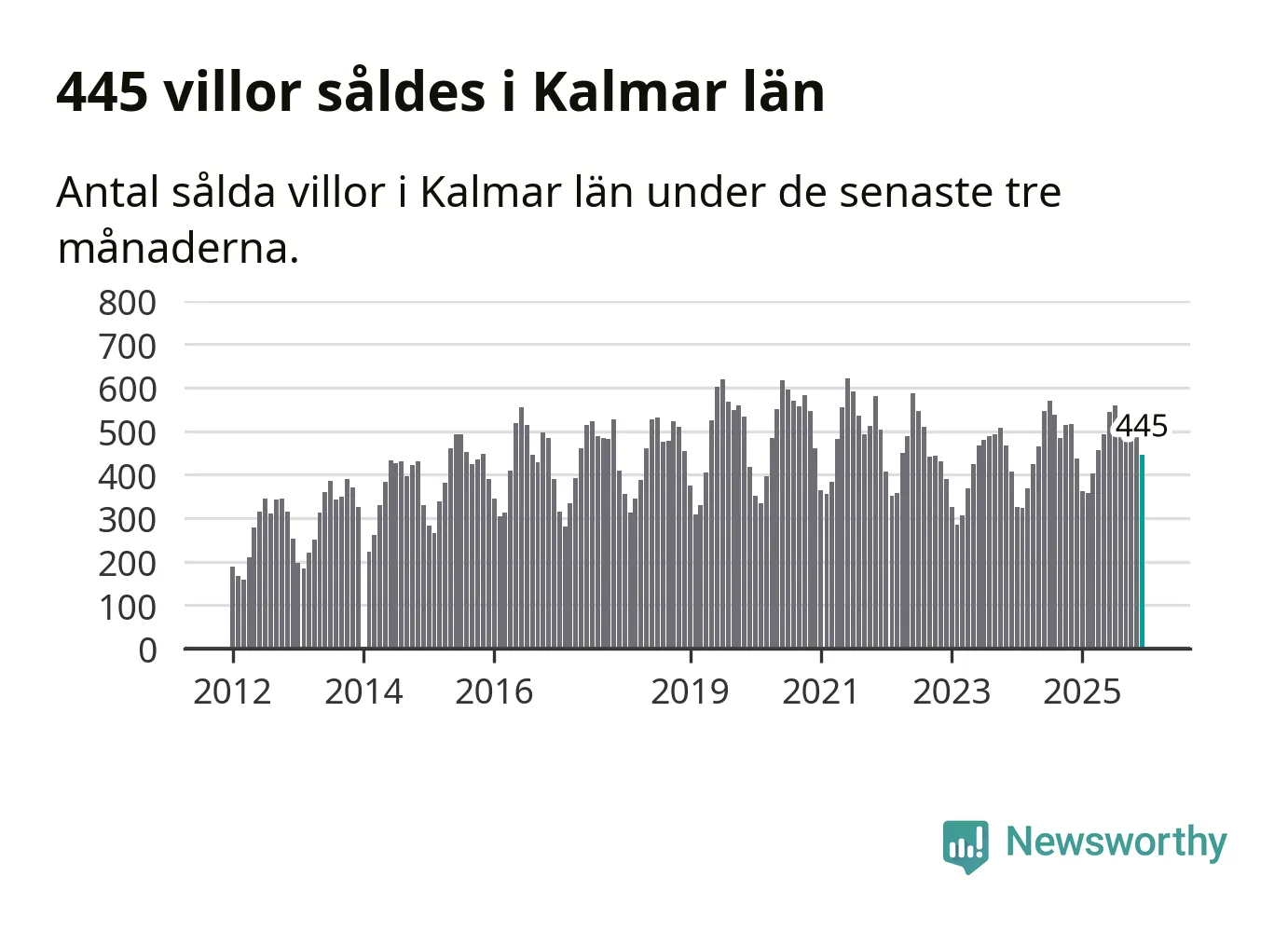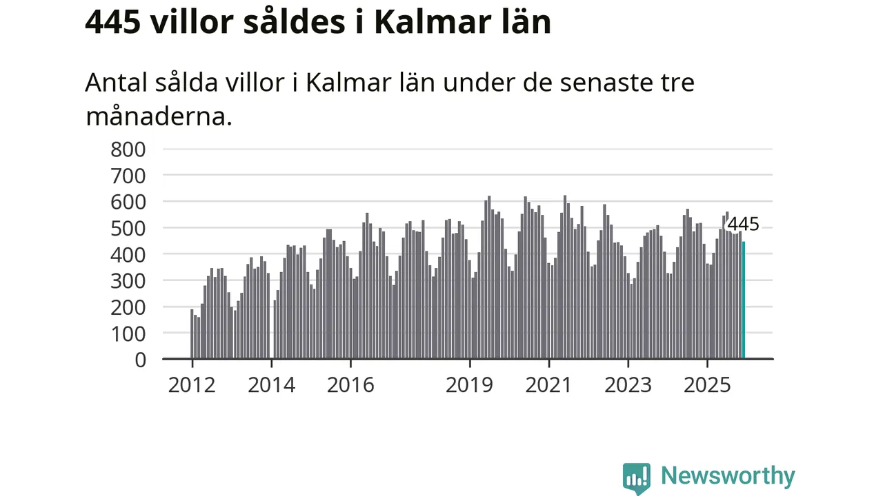 Sammanlagt såldes 445 villor i Kalmar län mellan oktober och december till ett genomsnittligt pris på 2,2 miljoner kronor. I fjol gjordes 437 affärer vid den här tiden på året.