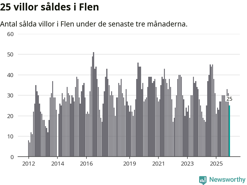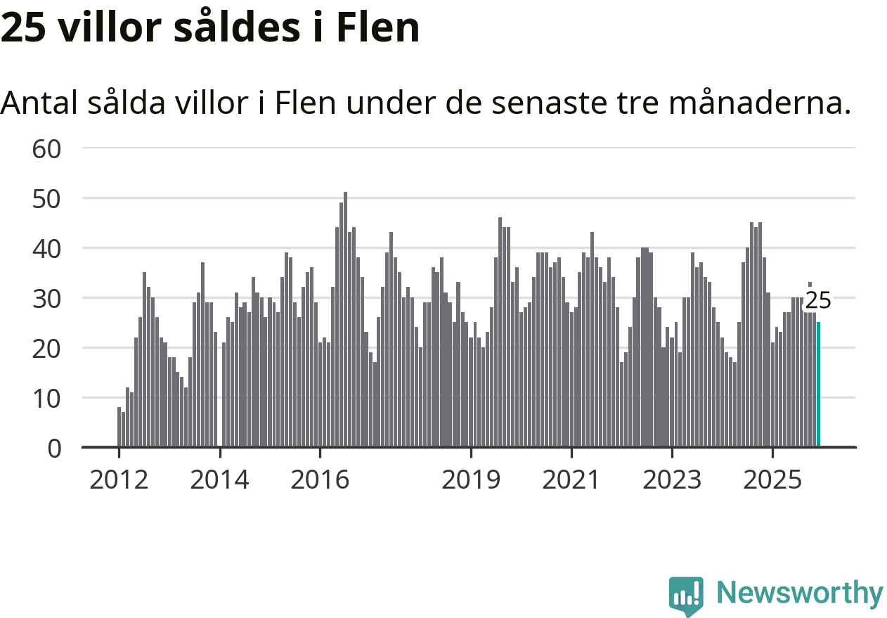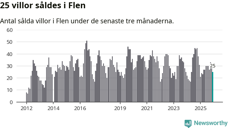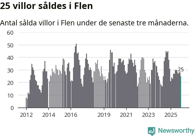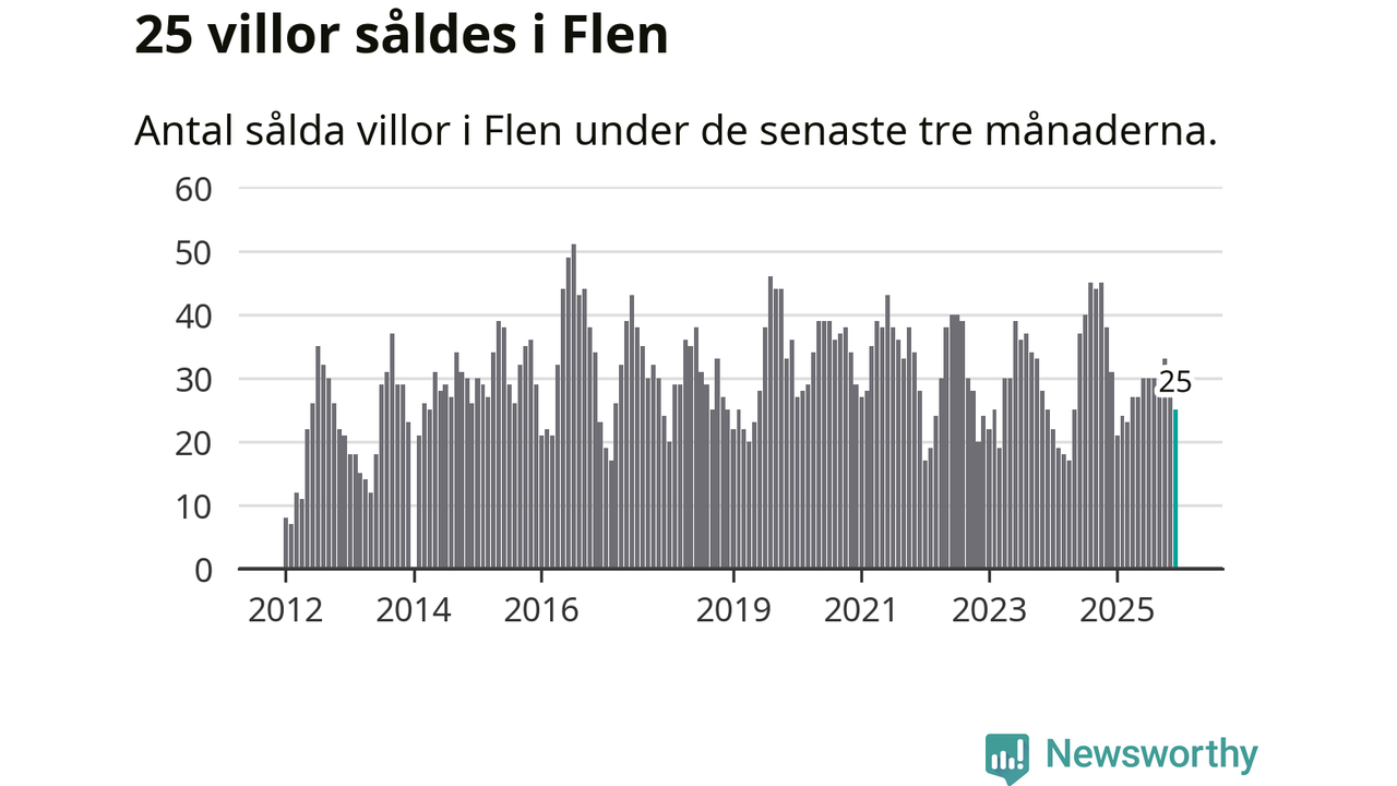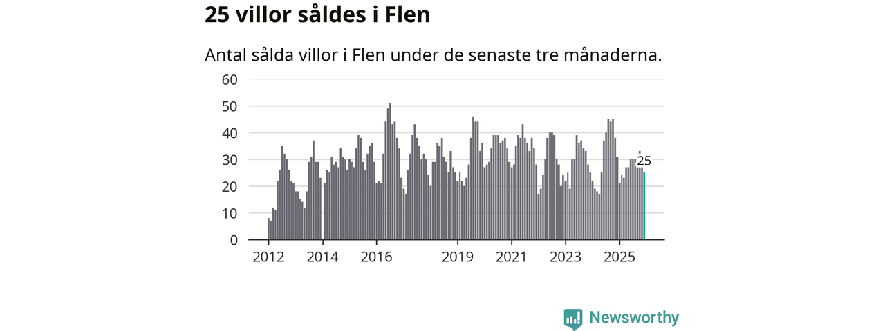 Mellan oktober och december gjordes sammanlagt 25 affärer med villor i Flens kommun. Det kan jämföras med 31 vid motsvarande tid i fjol.