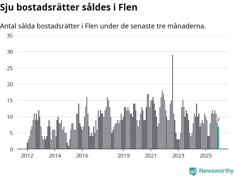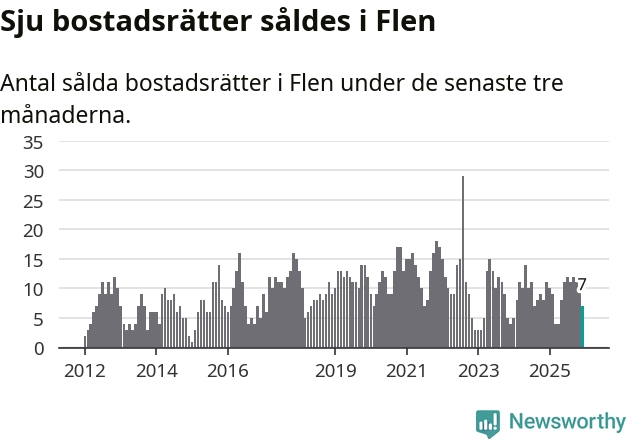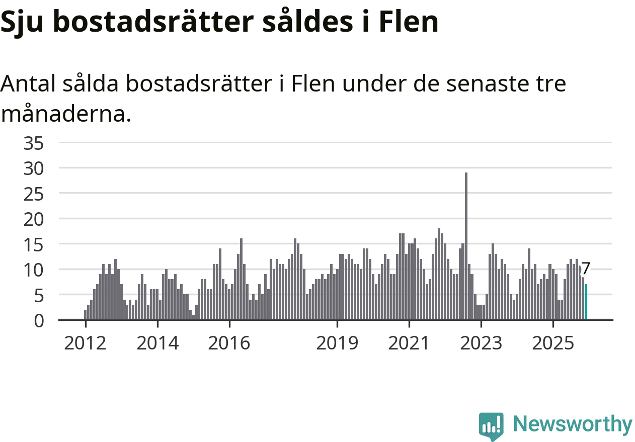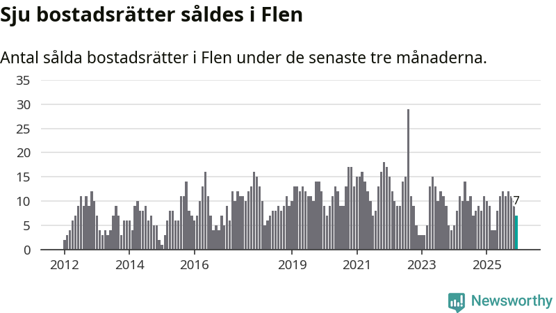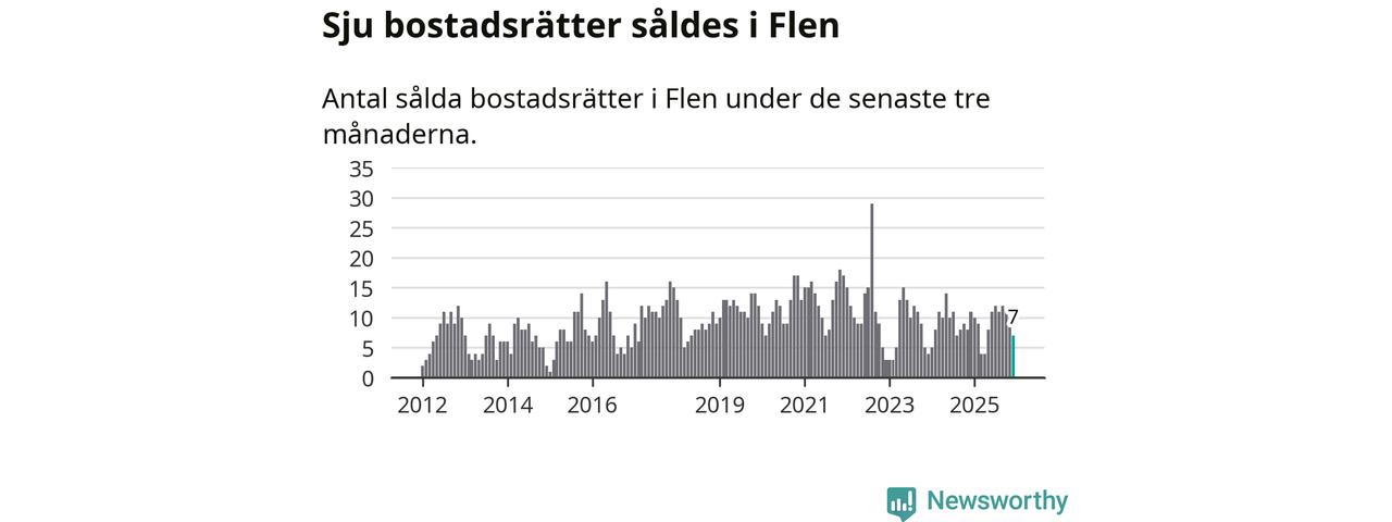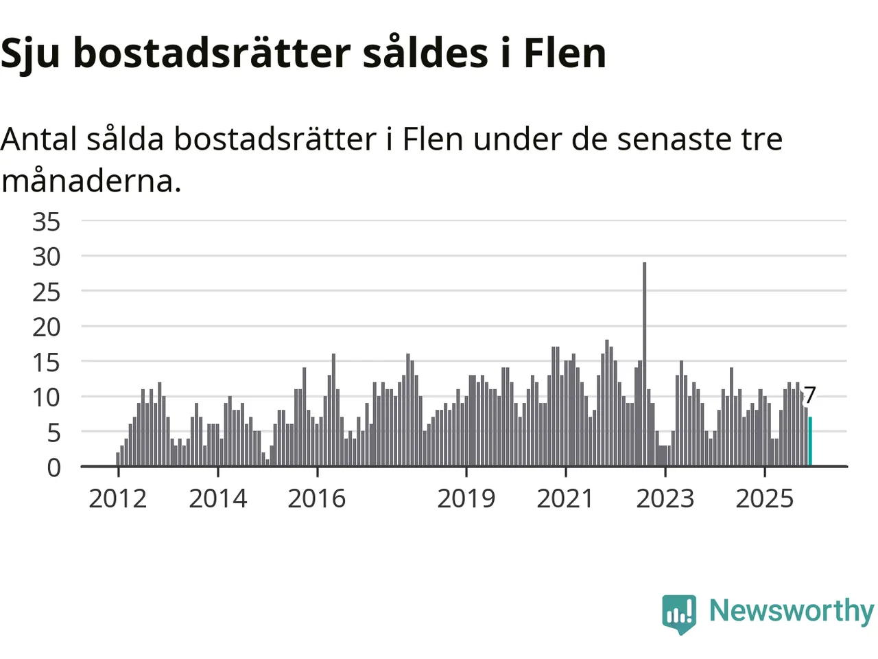 Mellan oktober och december gjordes sammanlagt sju affärer med bostadsrätter i Flens kommun. Det kan jämföras med elva vid motsvarande tid i fjol.