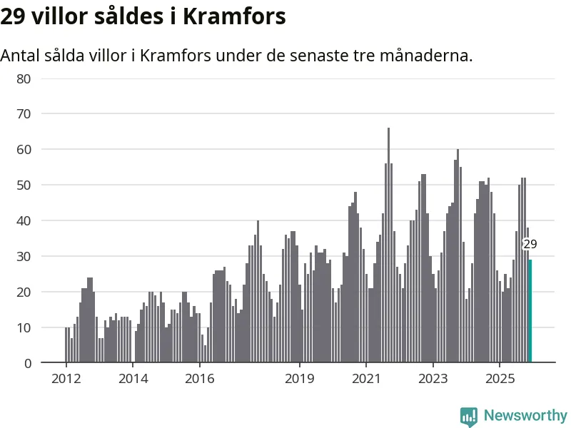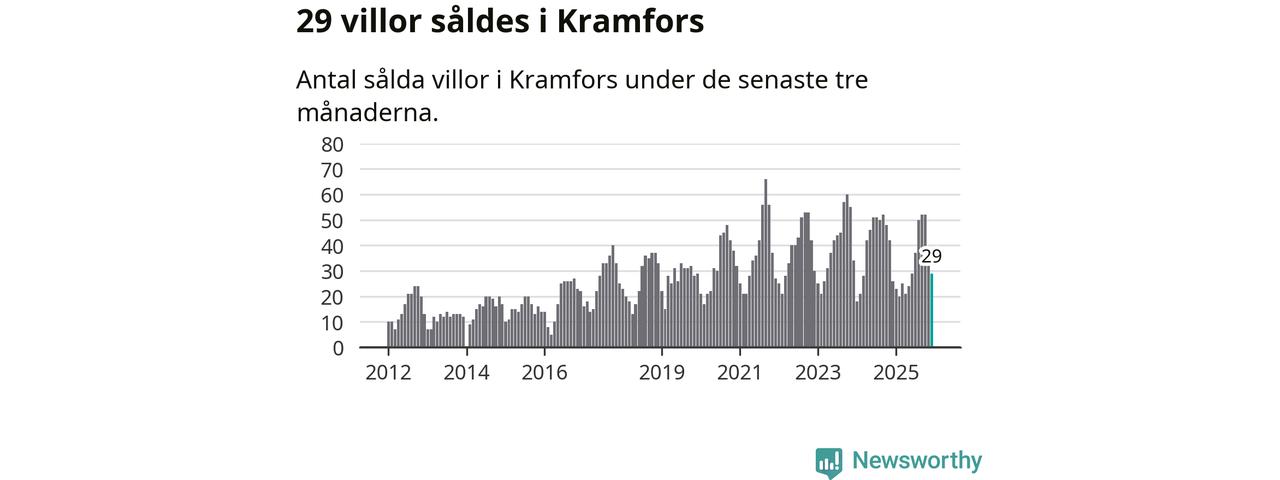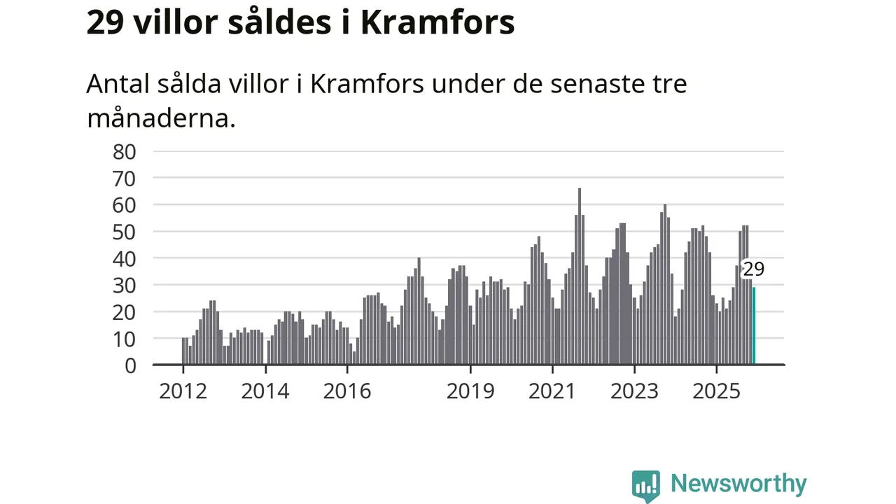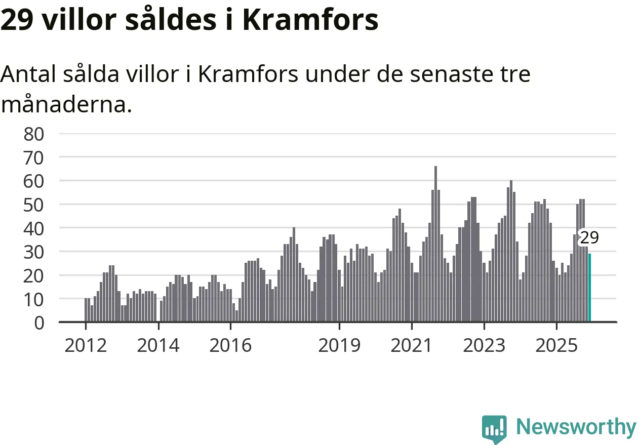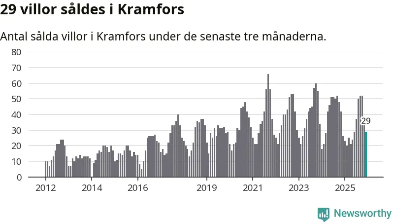 Mellan oktober och december gjordes sammanlagt 29 affärer med villor i Kramfors kommun. Det kan jämföras med 26 vid motsvarande tid i fjol.