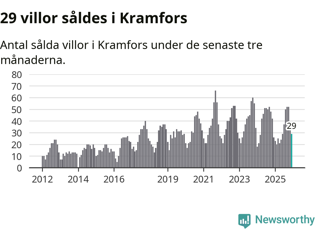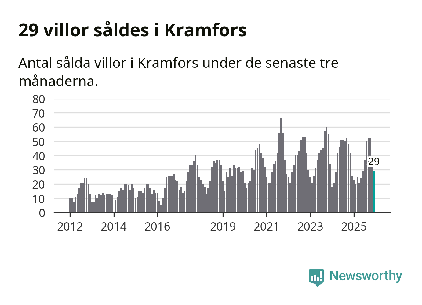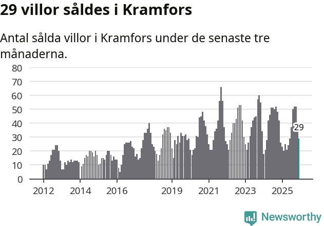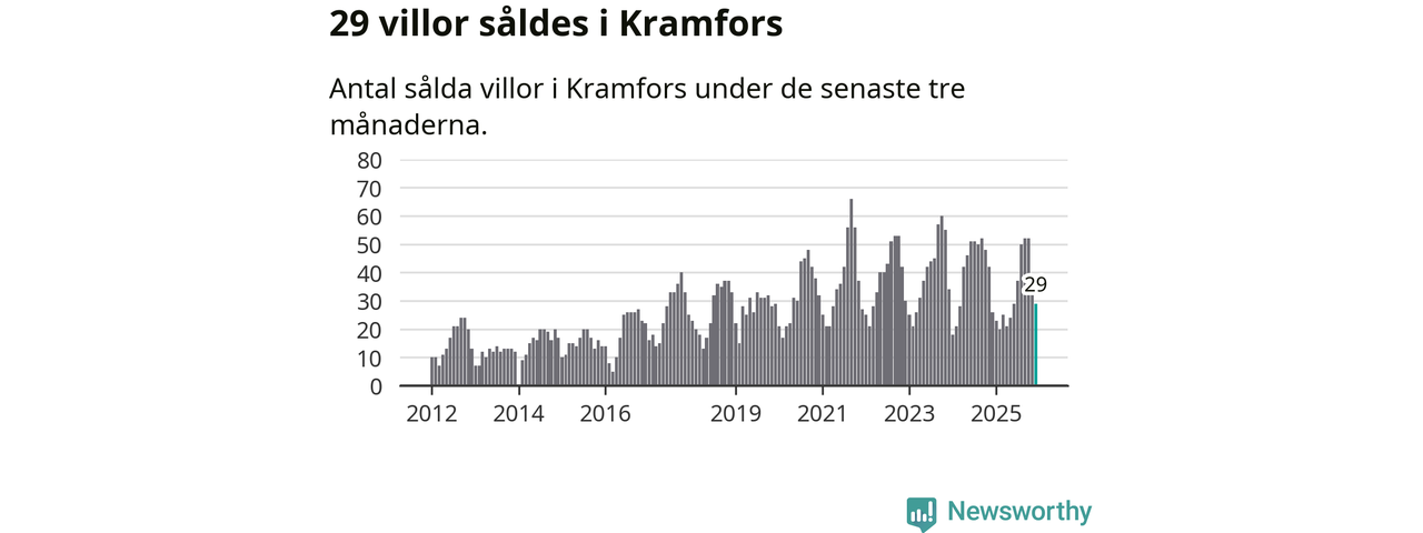 Mellan oktober och december gjordes sammanlagt 29 affärer med villor i Kramfors kommun. Det kan jämföras med 26 vid motsvarande tid i fjol.