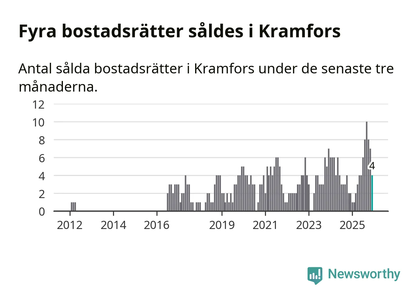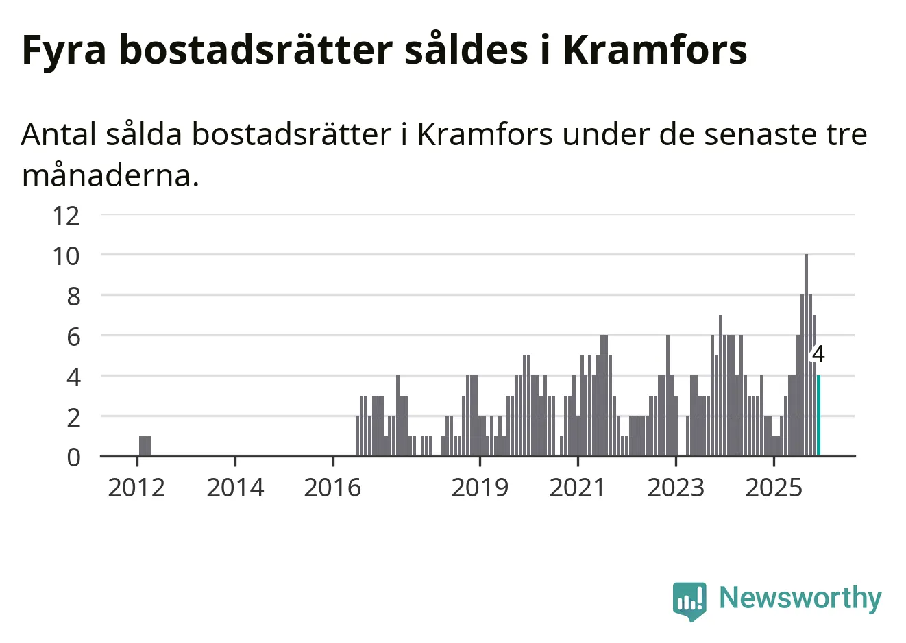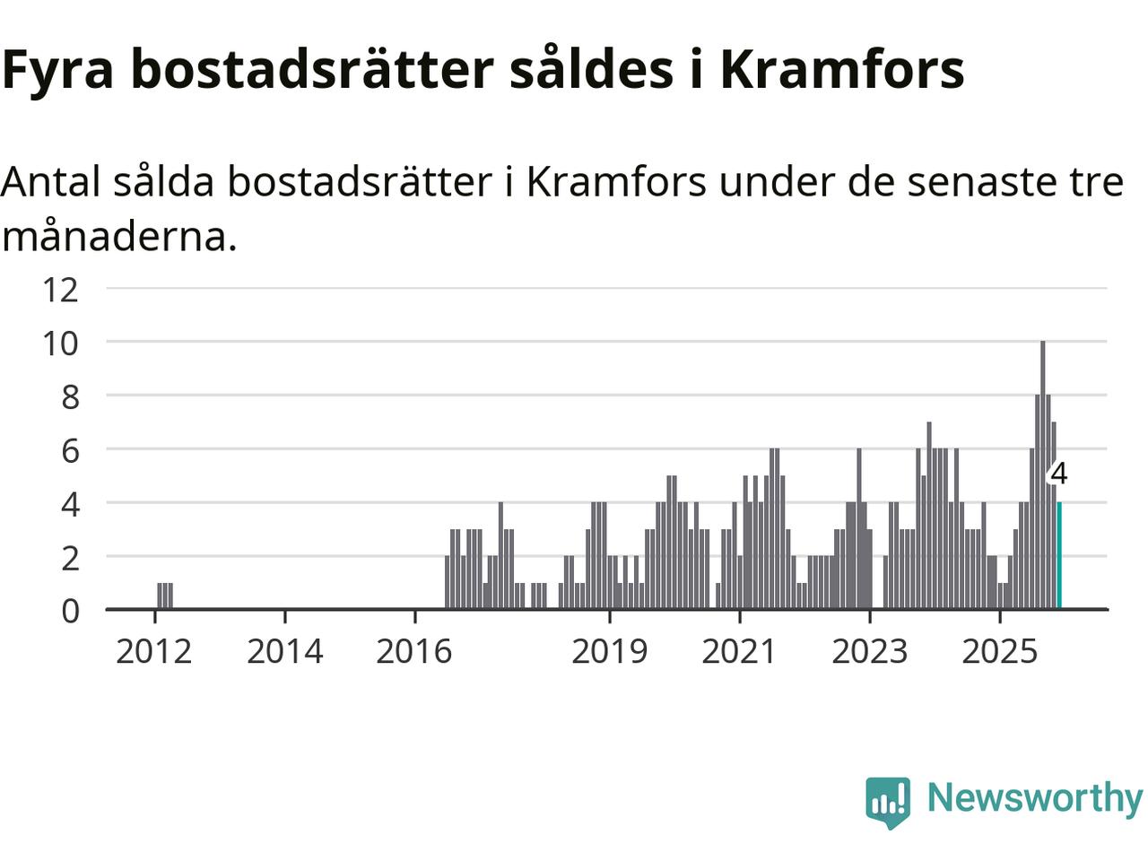 Mellan oktober och december gjordes sammanlagt fyra affärer med bostadsrätter i Kramfors kommun. Det kan jämföras med två vid motsvarande tid i fjol.
