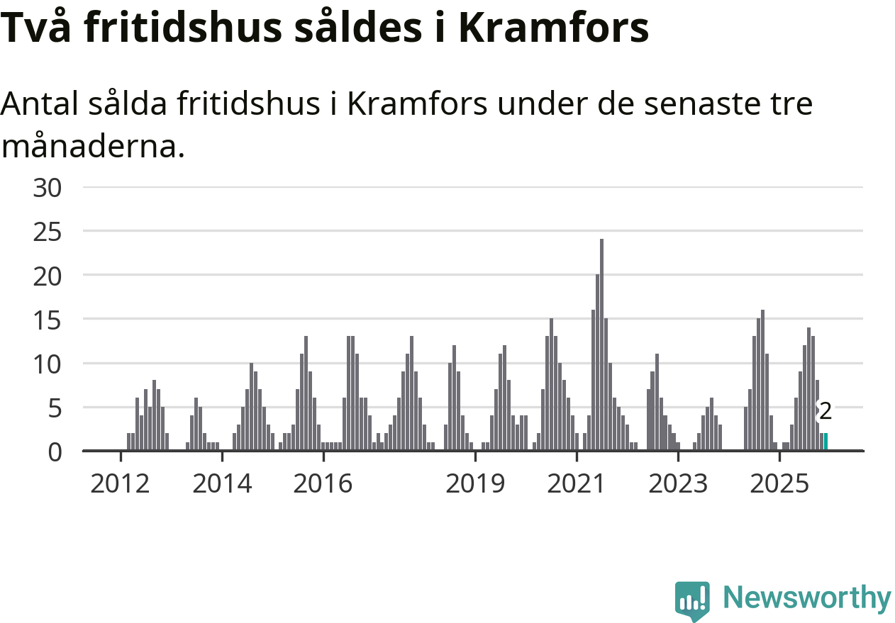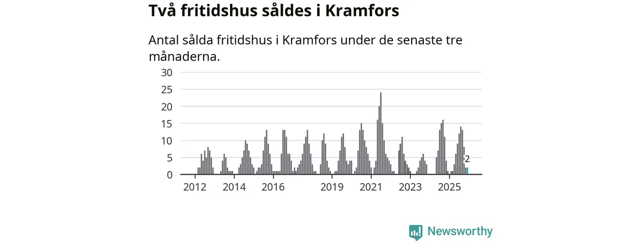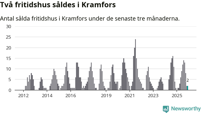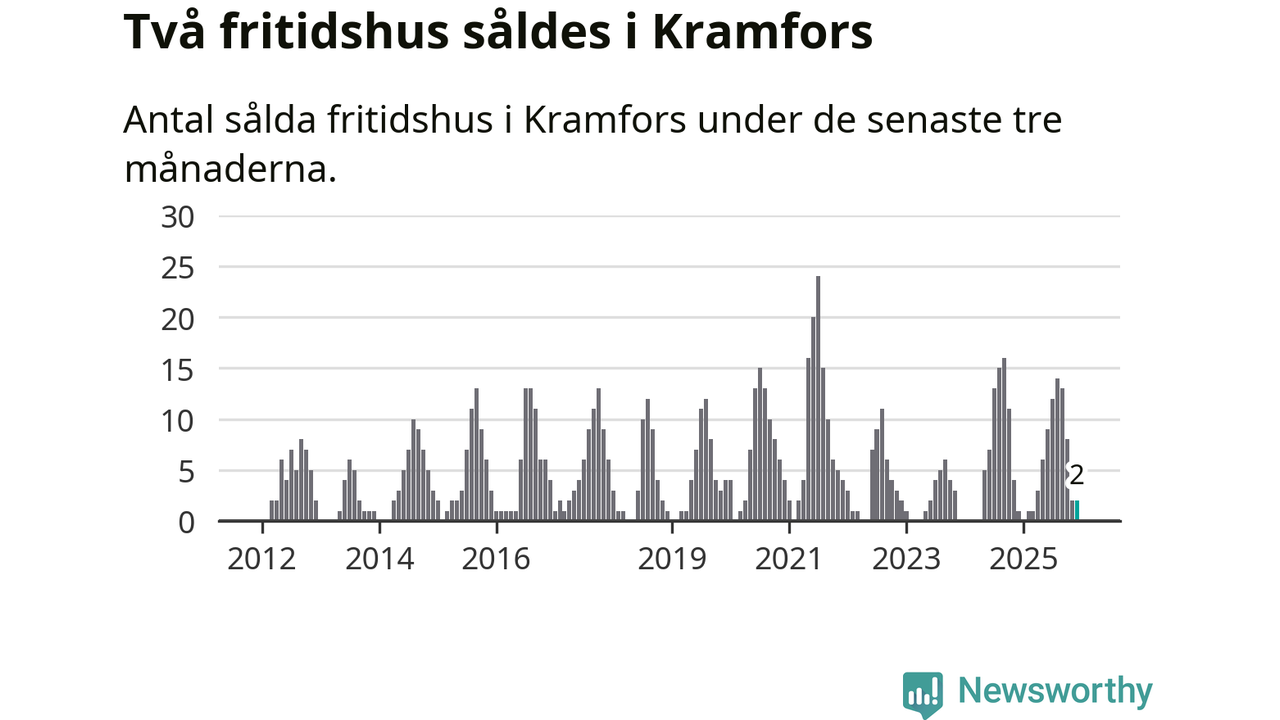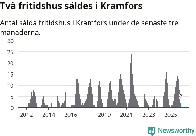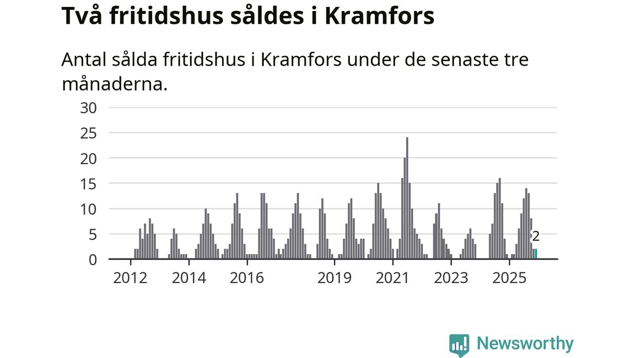 Mellan oktober och december gjordes sammanlagt två affärer med fritidshus i Kramfors kommun. Det kan jämföras med ett vid motsvarande tid i fjol.