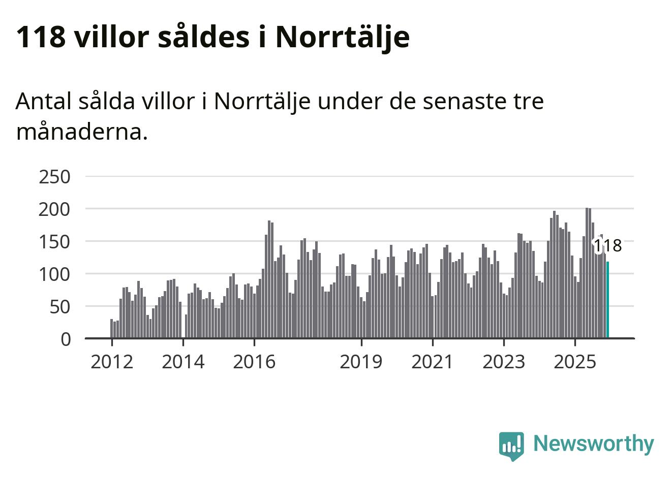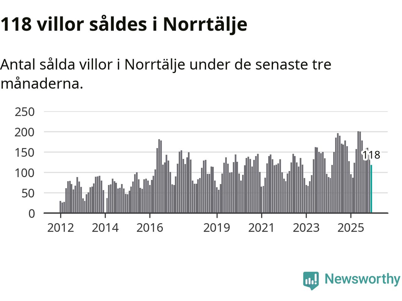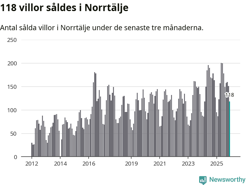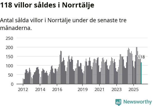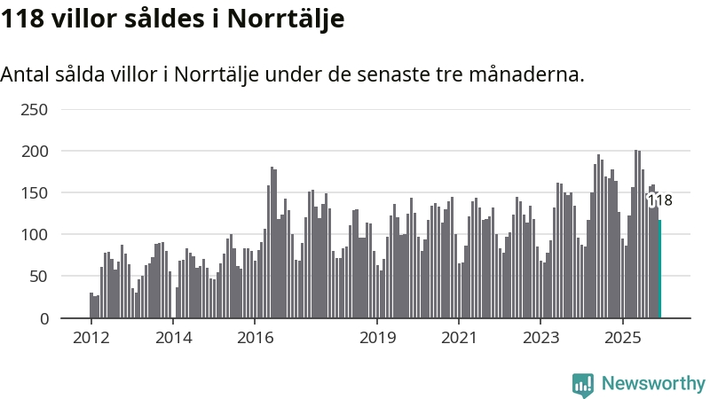 Sammanlagt såldes 118 villor i Norrtälje kommun mellan oktober och december till ett genomsnittligt pris på 3,9 miljoner kronor. I fjol gjordes 127 affärer vid den här tiden på året.