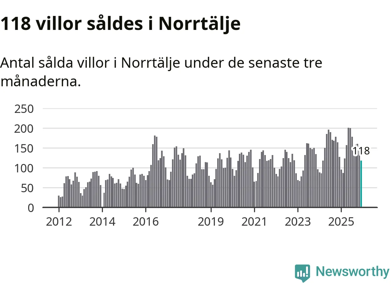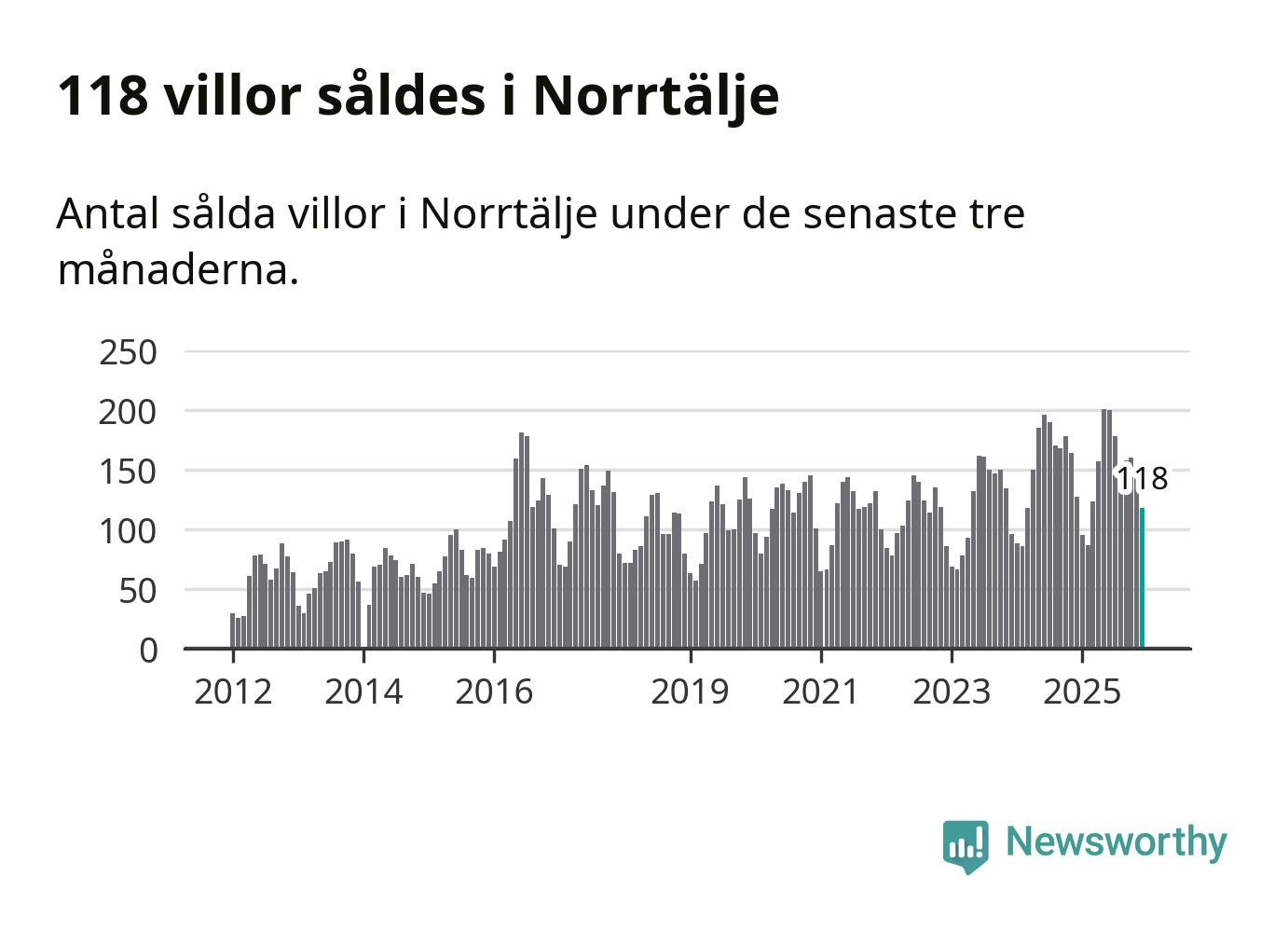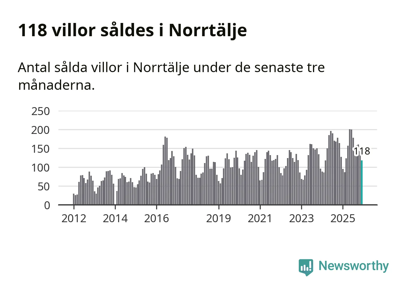 Sammanlagt såldes 118 villor i Norrtälje kommun mellan oktober och december till ett genomsnittligt pris på 3,9 miljoner kronor. I fjol gjordes 127 affärer vid den här tiden på året.