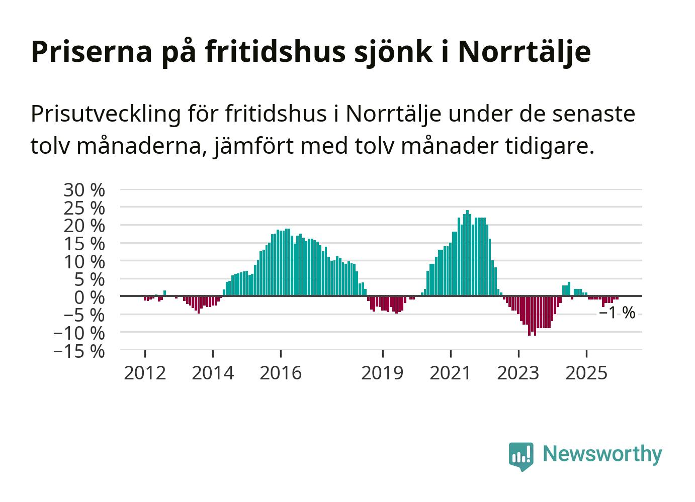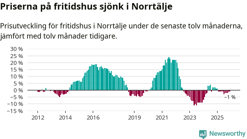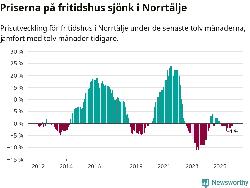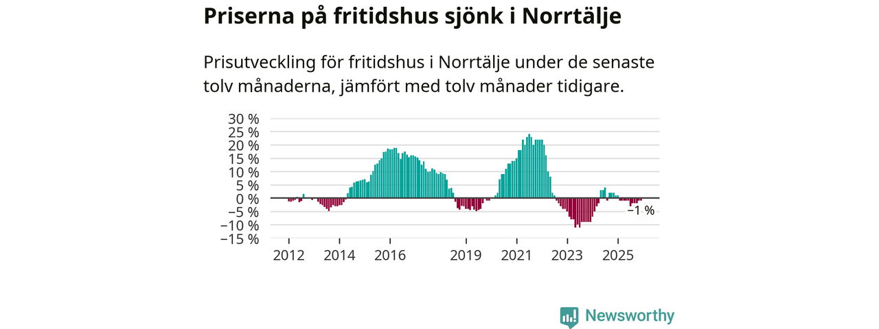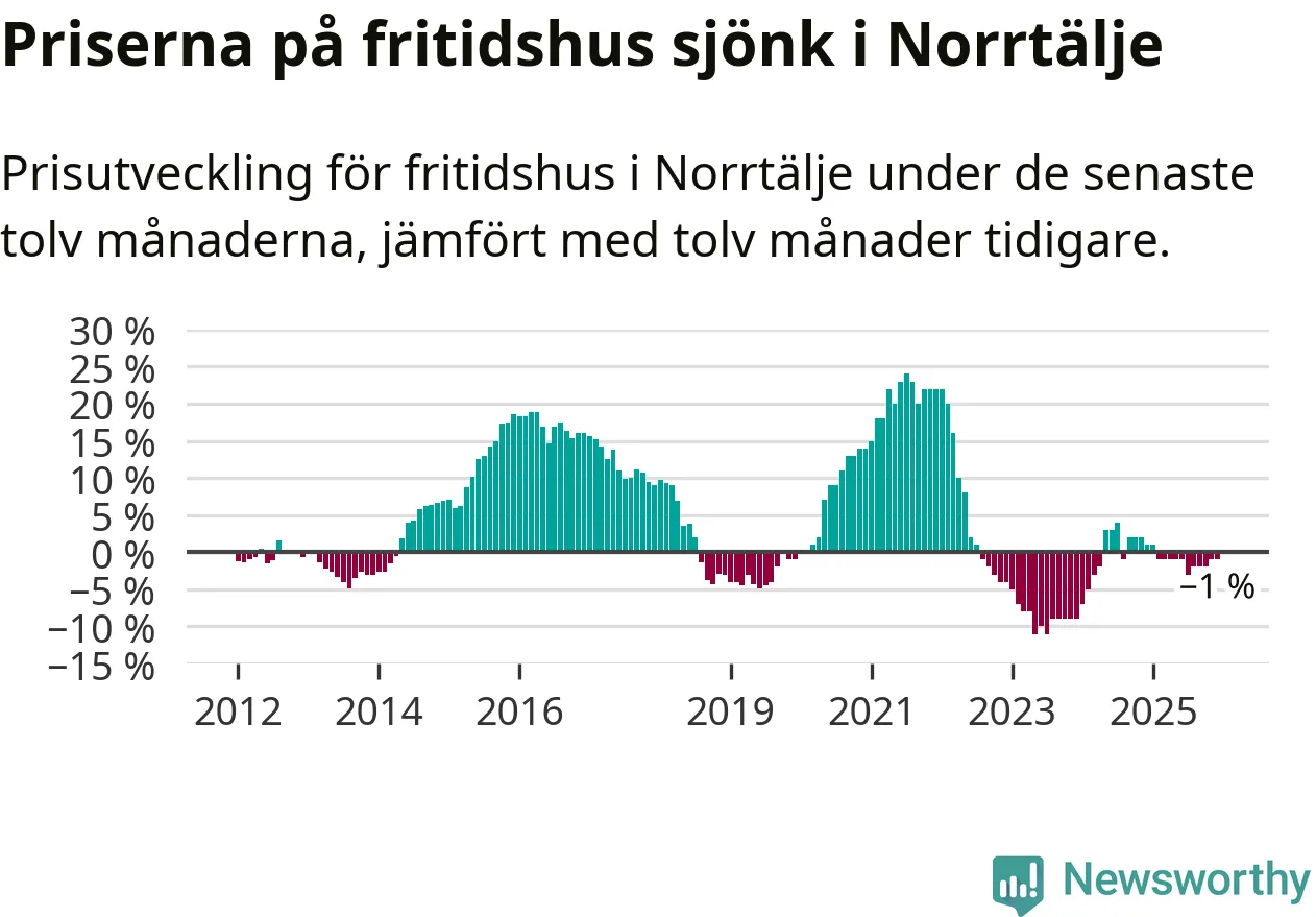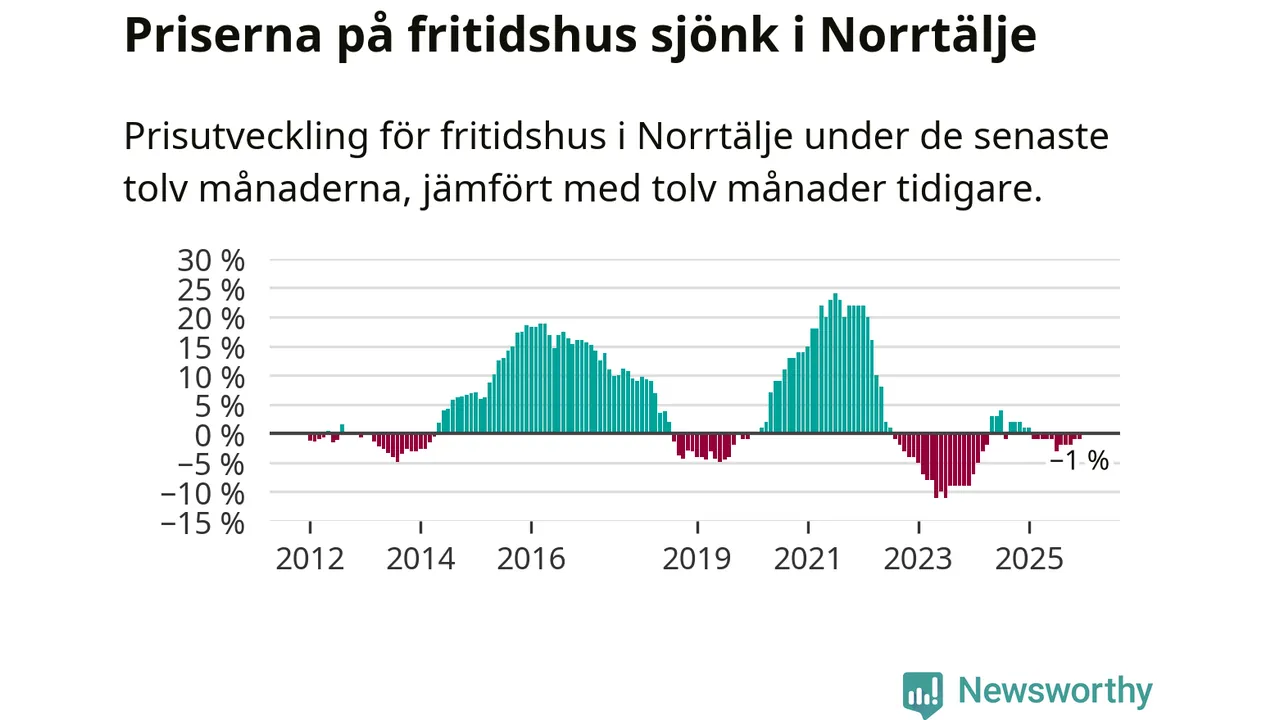 Priserna på fritidshus har gått ner i Norrtälje kommun. Medelpriset på försäljningarna under de senaste tolv månaderna visar på en nedgång med 1 procent.
