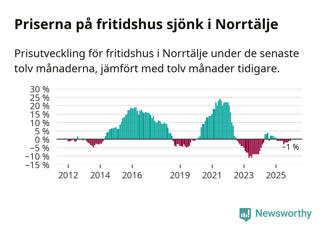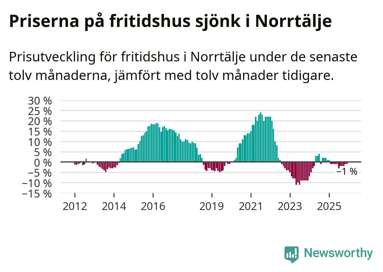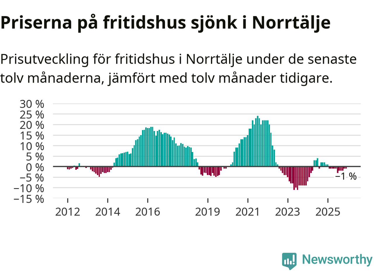 Priserna på fritidshus har gått ner i Norrtälje kommun. Medelpriset på försäljningarna under de senaste tolv månaderna visar på en nedgång med 1 procent.