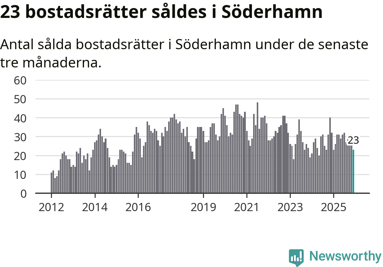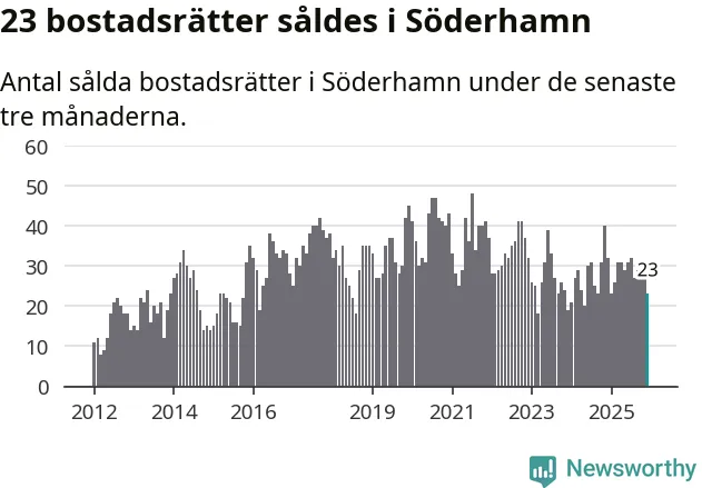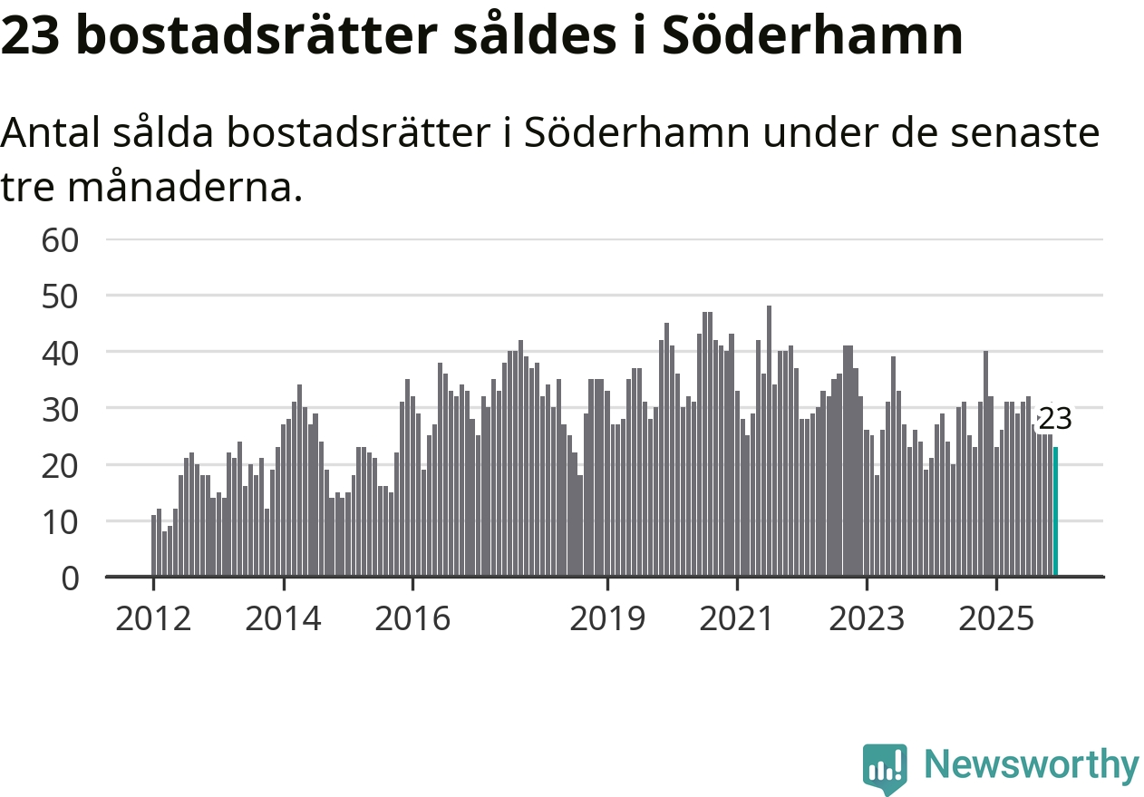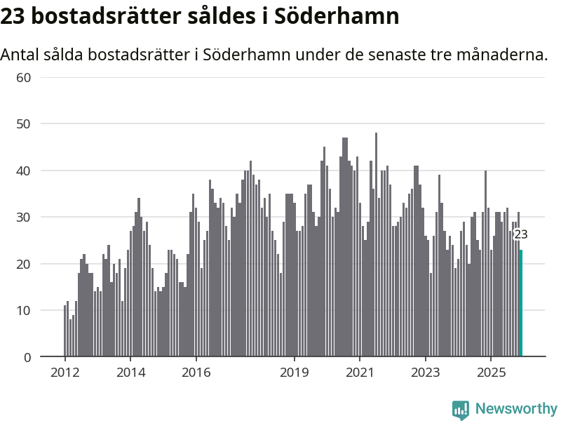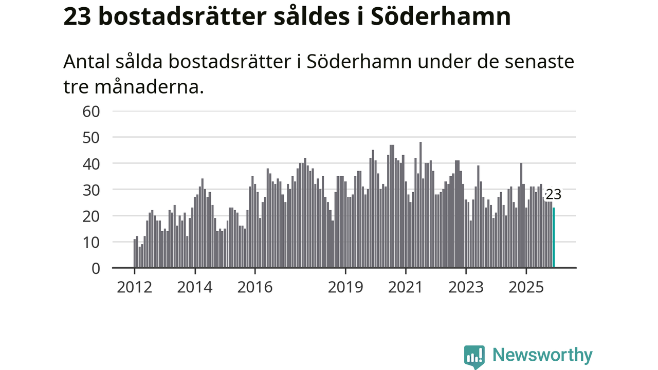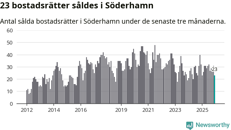 Mellan oktober och december gjordes sammanlagt 23 affärer med bostadsrätter i Söderhamns kommun. Det kan jämföras med 32 vid motsvarande tid i fjol.