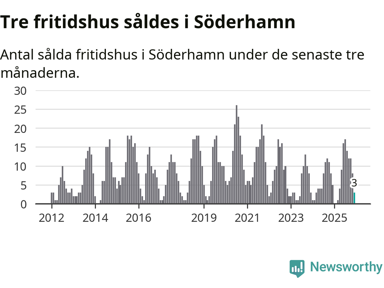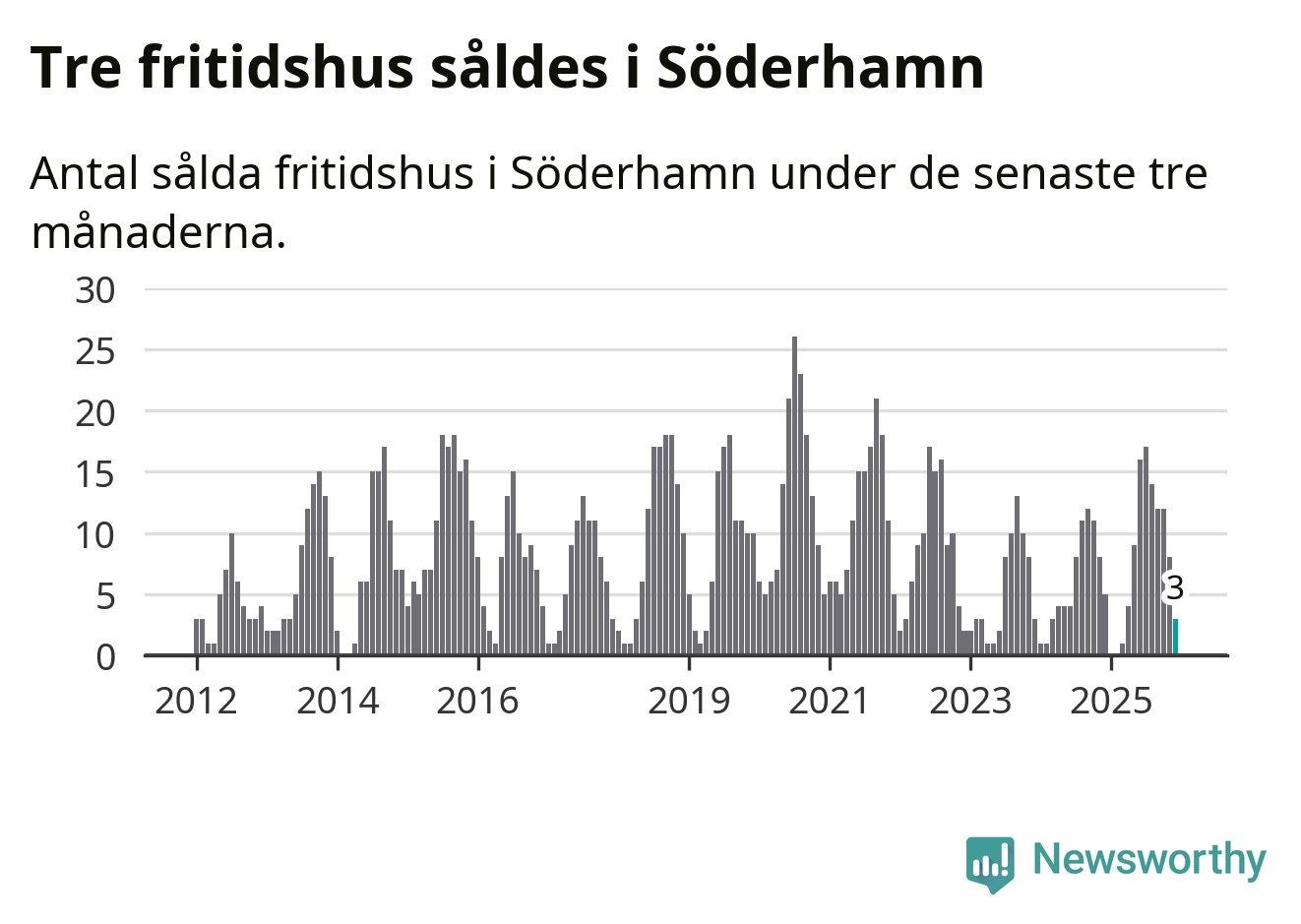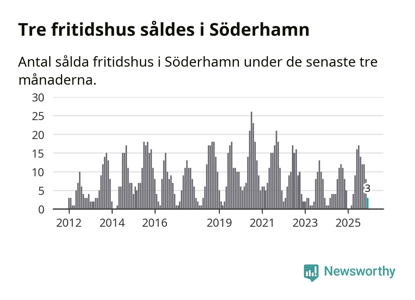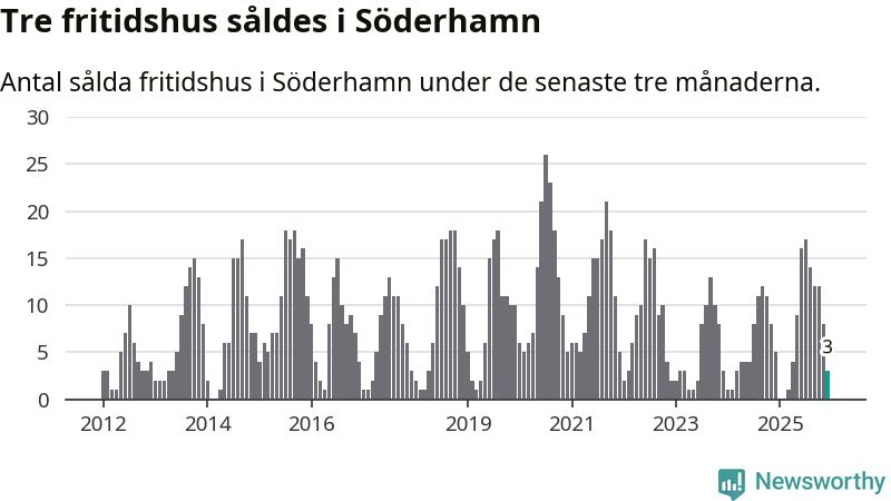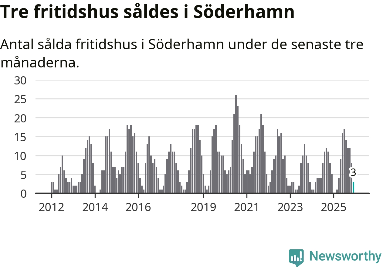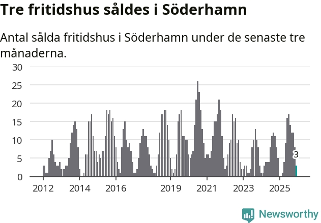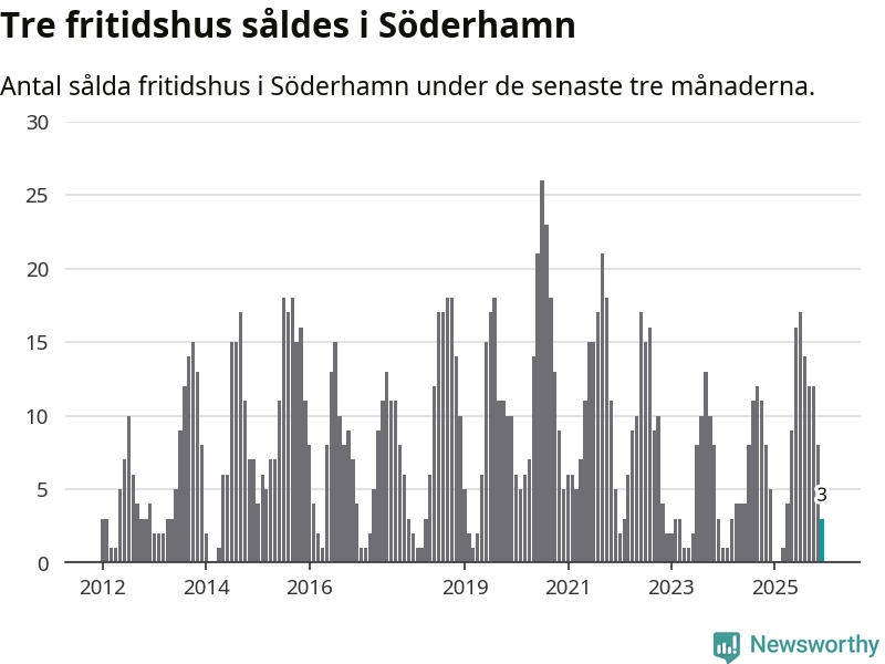 Mellan oktober och december gjordes sammanlagt tre affärer med fritidshus i Söderhamns kommun. Det kan jämföras med fem vid motsvarande tid i fjol.