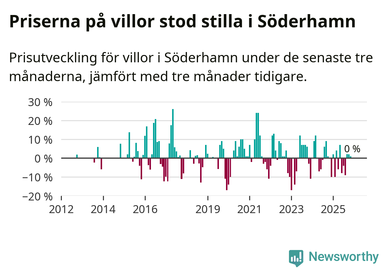 Om det gjorts färre än 20 affärer under tidsperioden redovisar Svensk Mäklarstatistik inga uppgifter om prisutveckling.