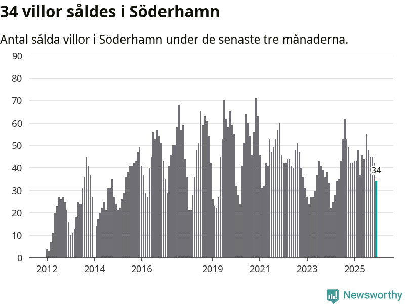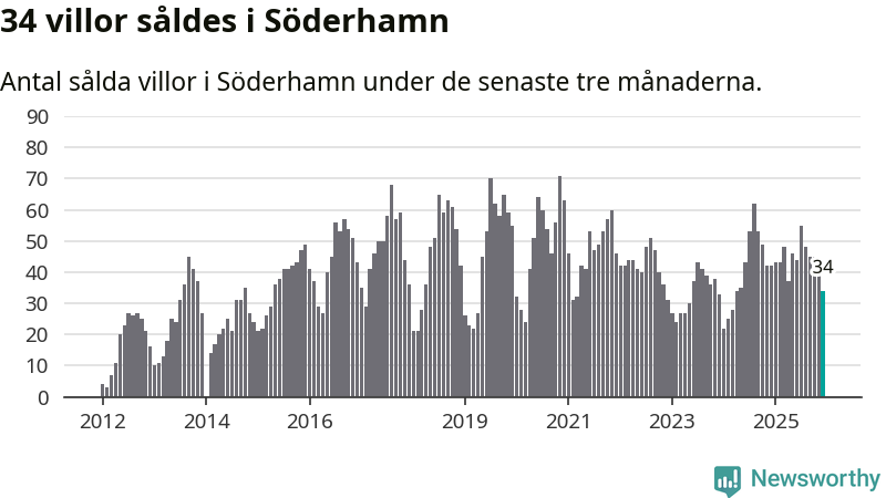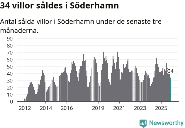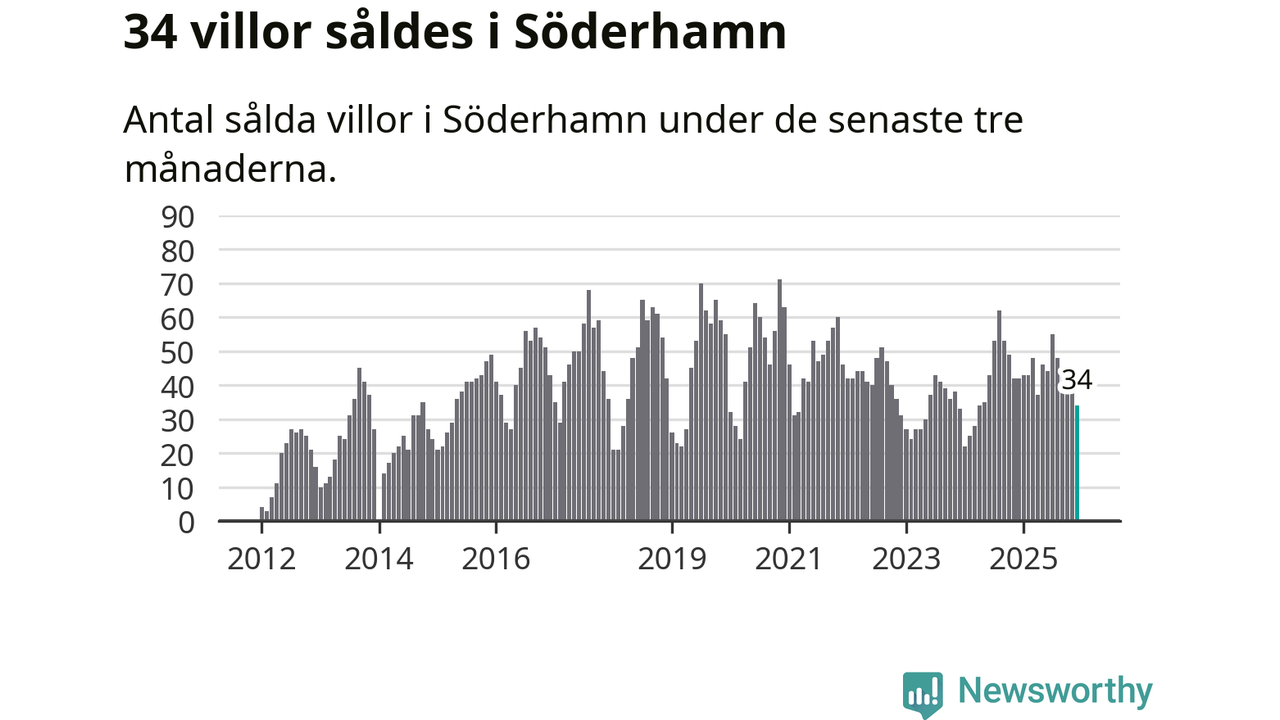 Sammanlagt såldes 34 villor i Söderhamns kommun mellan oktober och december till ett genomsnittligt pris på 1,7 miljoner kronor. I fjol gjordes 42 affärer vid den här tiden på året.