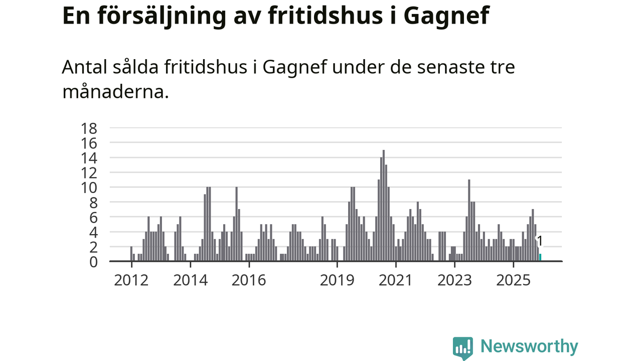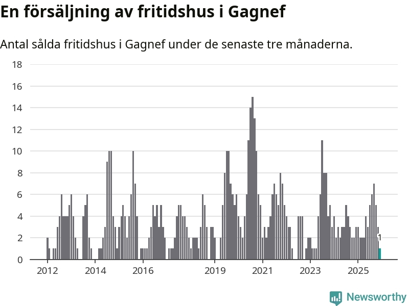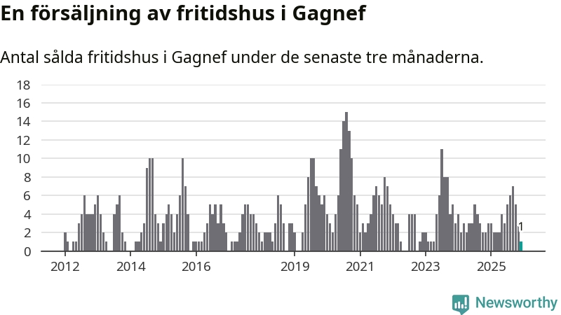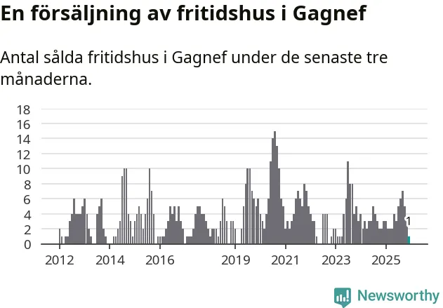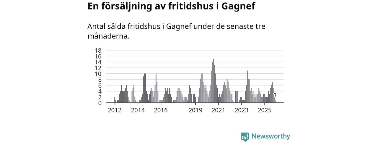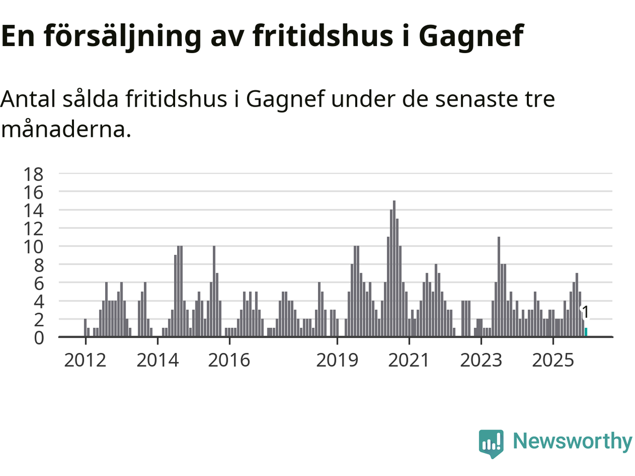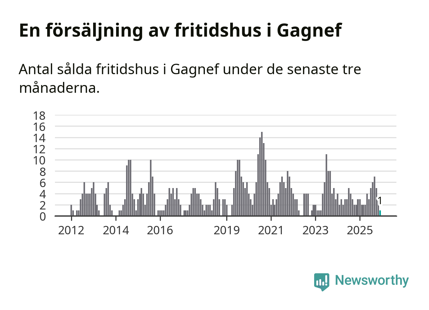 Mellan oktober och december gjordes sammanlagt en affär med fritidshus i Gagnefs kommun. Det kan jämföras med tre vid motsvarande tid i fjol.