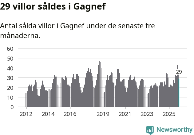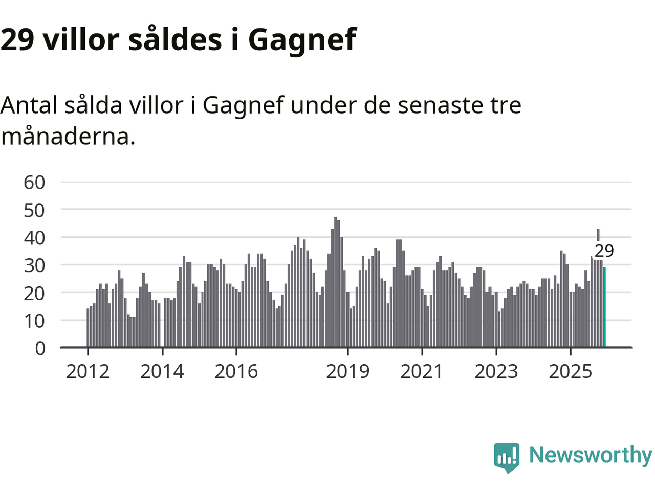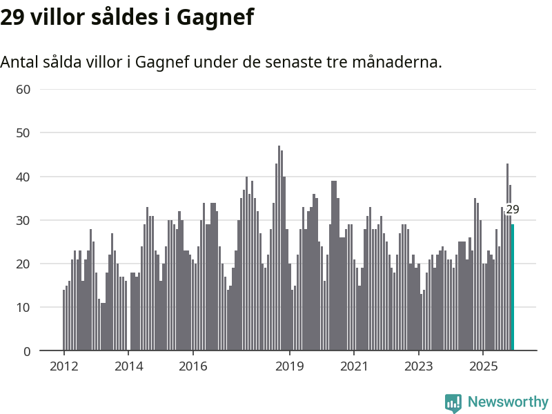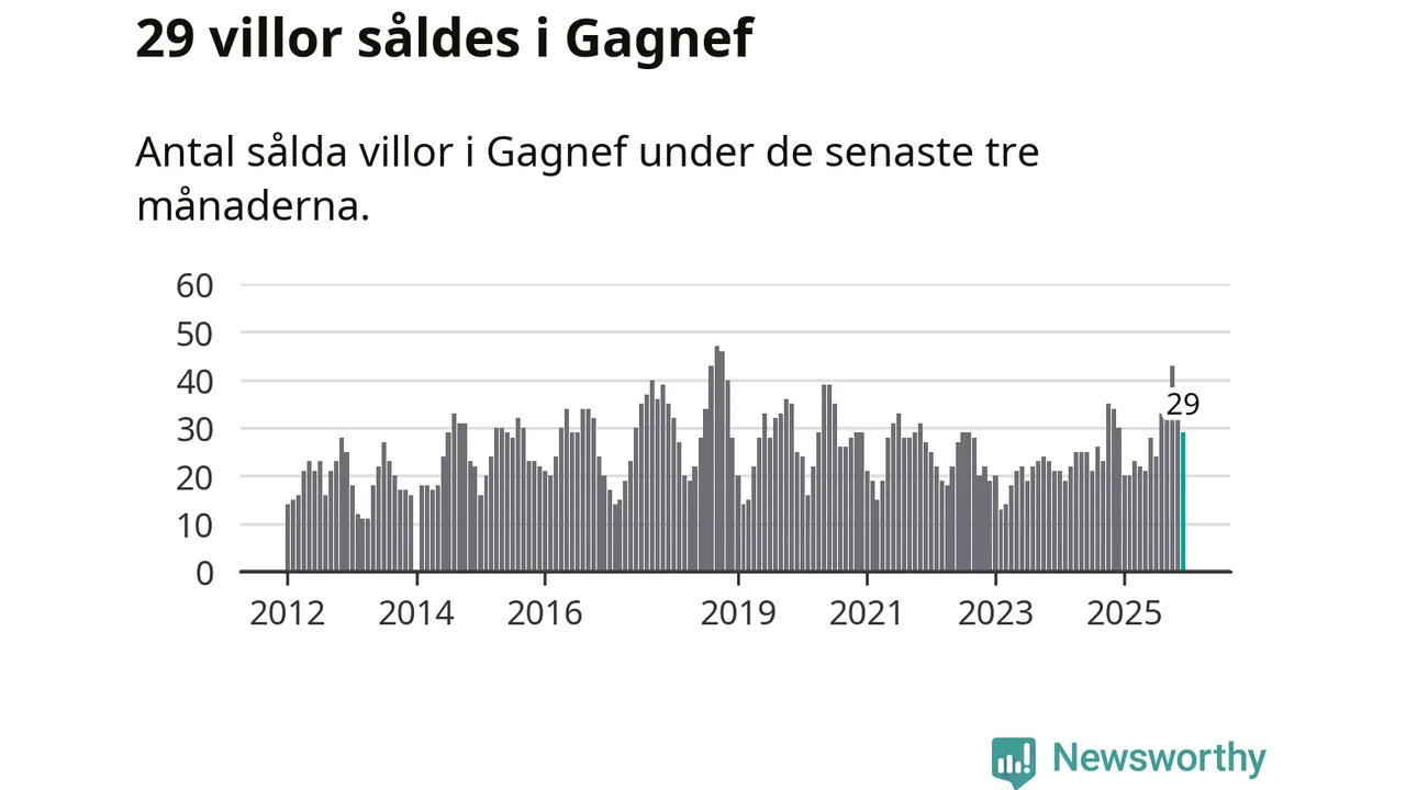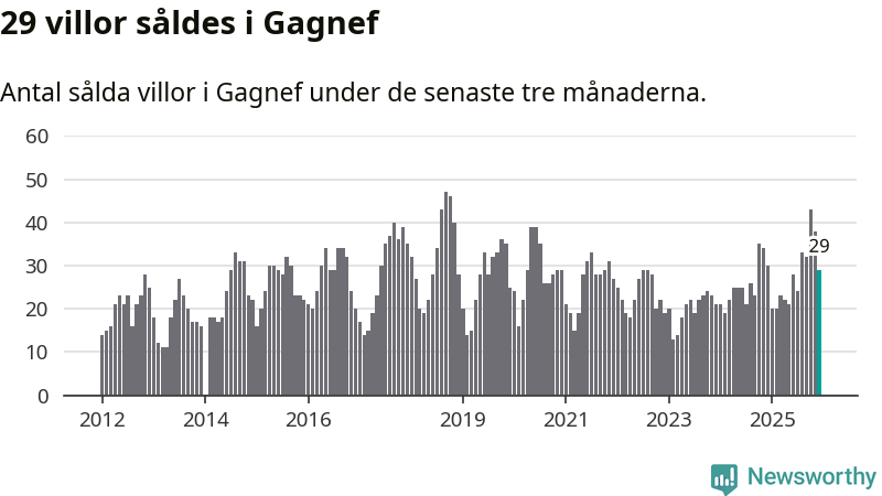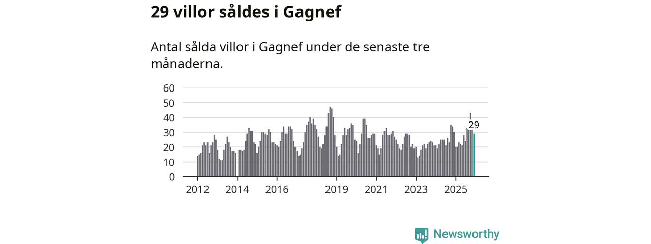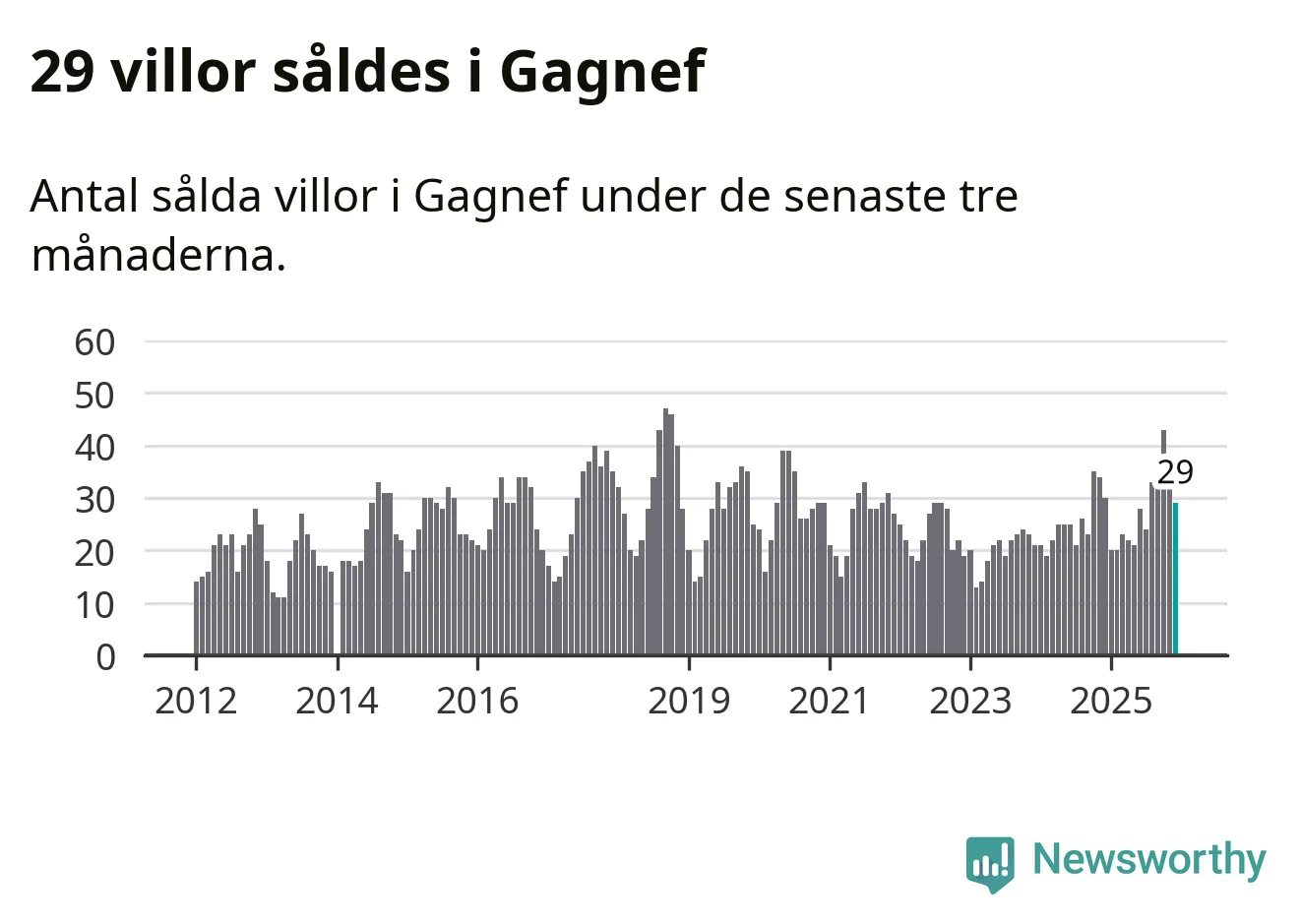 Mellan oktober och december gjordes sammanlagt 29 affärer med villor i Gagnefs kommun. Det kan jämföras med 30 vid motsvarande tid i fjol.