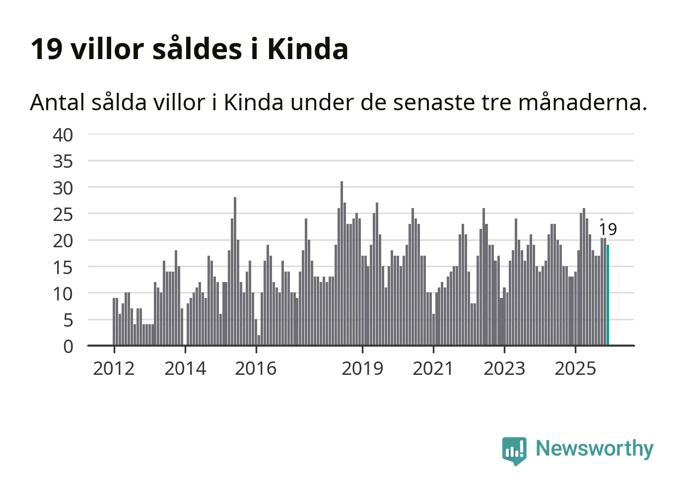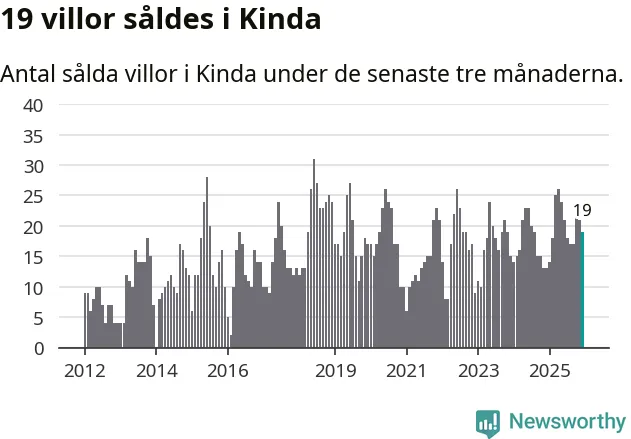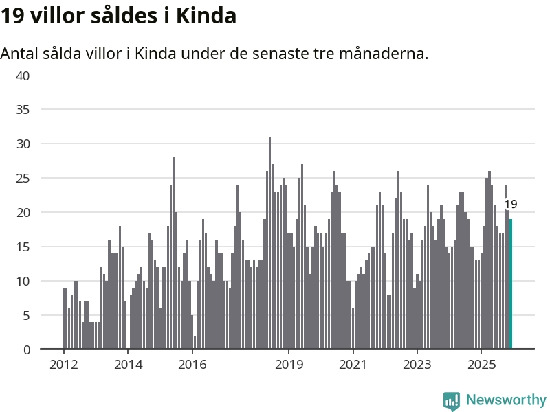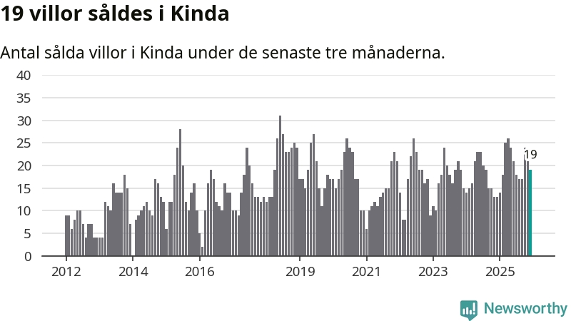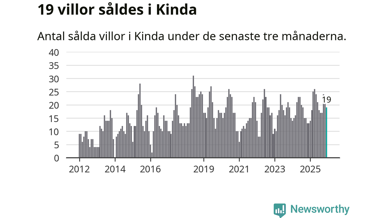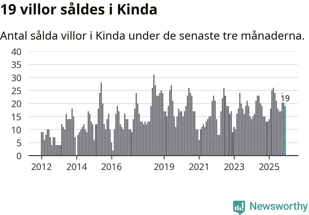 Mellan oktober och december gjordes sammanlagt 19 affärer med villor i Kinda kommun. Det kan jämföras med 13 vid motsvarande tid i fjol.