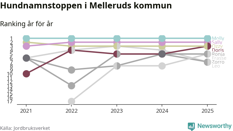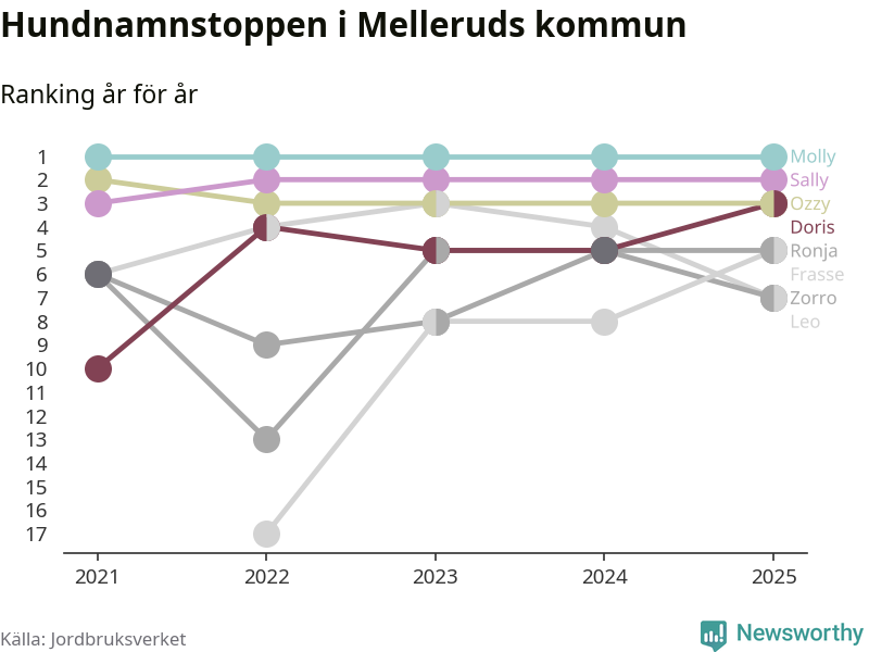 Molly toppar hundnamnsligan i Melleruds kommun, precis som i landet som helhet. Det visar färsk statistik från Jordbruksverket. Här finns hela topplistan för kommunen.