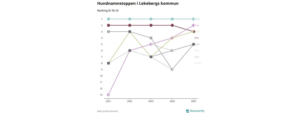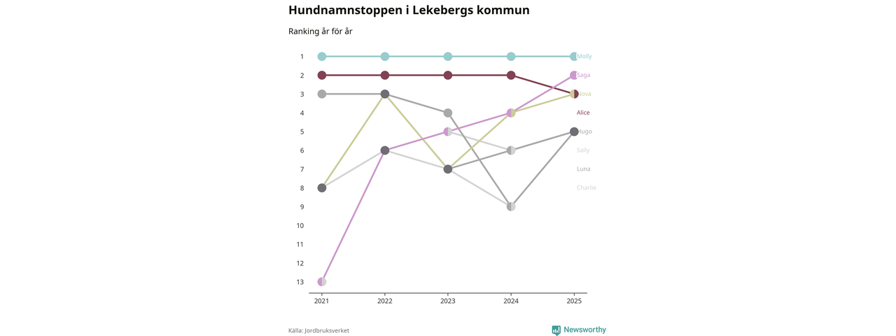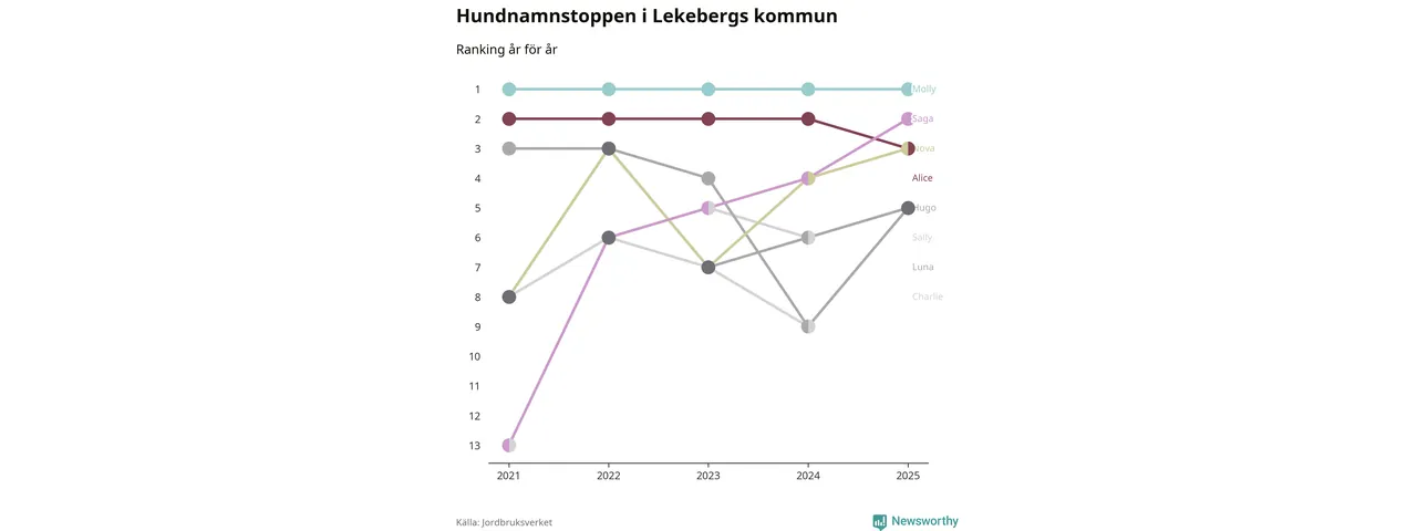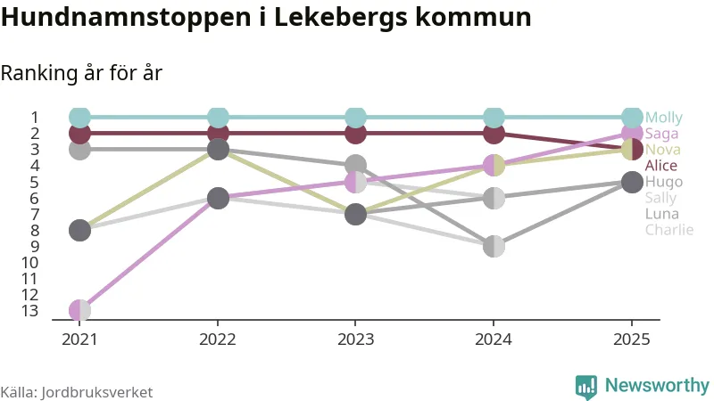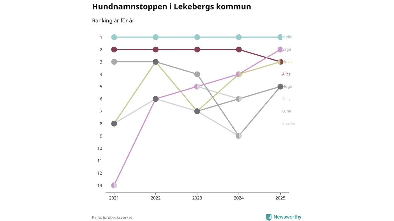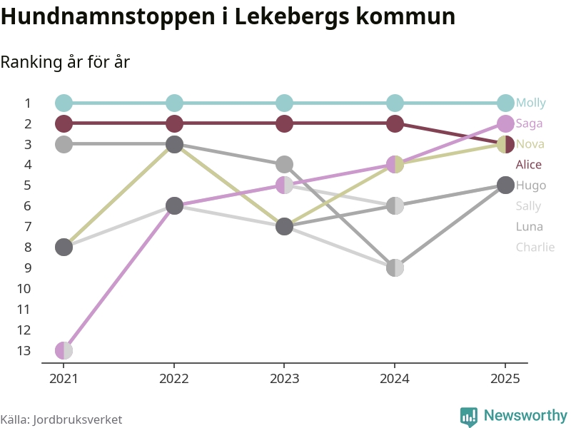 Molly toppar hundnamnsligan i Lekebergs kommun, precis som i landet som helhet. Det visar färsk statistik från Jordbruksverket. Här finns hela topplistan för kommunen.