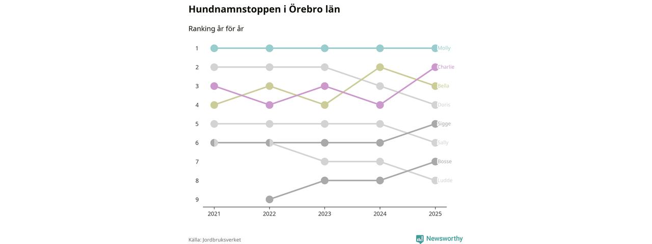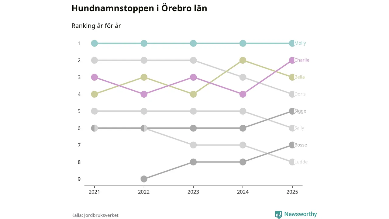 Molly toppar hundnamnsligan i Örebro län, precis som i landet som helhet. Det visar färsk statistik från Jordbruksverket. Här finns hela topplistan för länet.