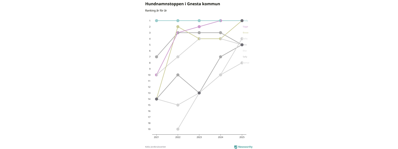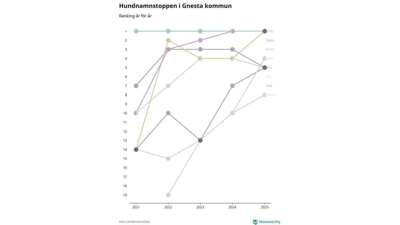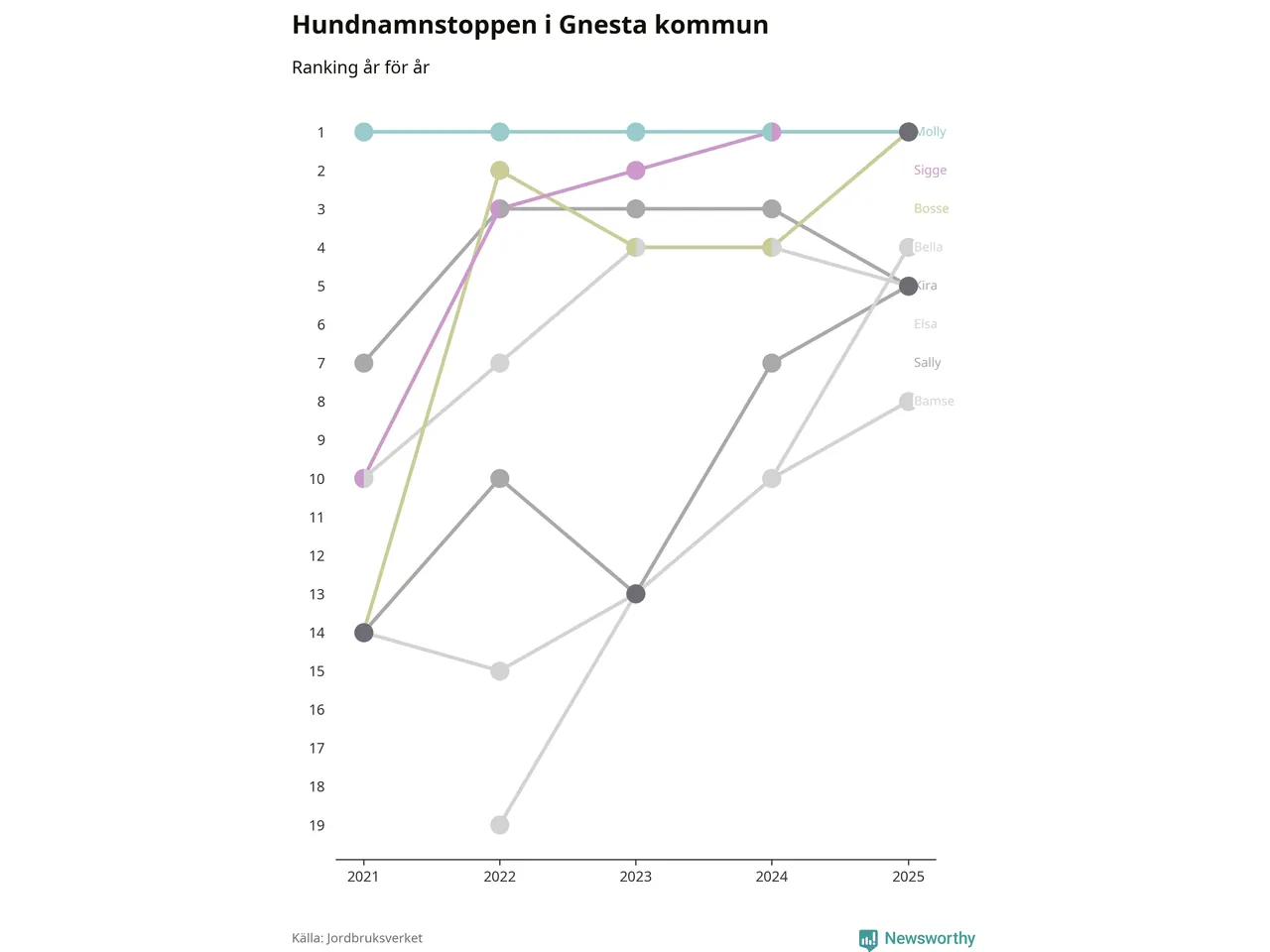 Bella klättrar på topplistan bland Gnestas hundnamn, visar ny statistik från Jordbruksverkets hundregister.