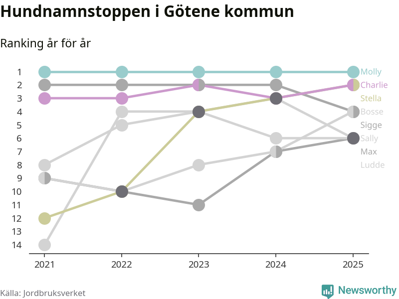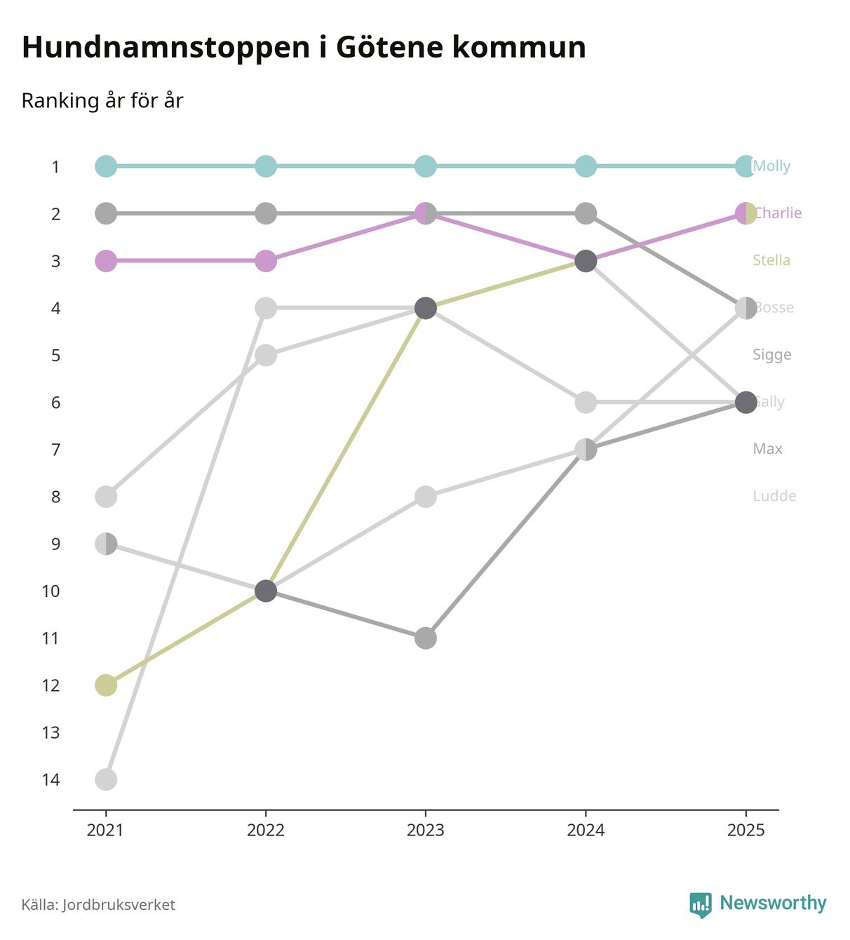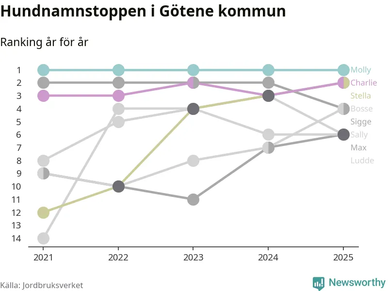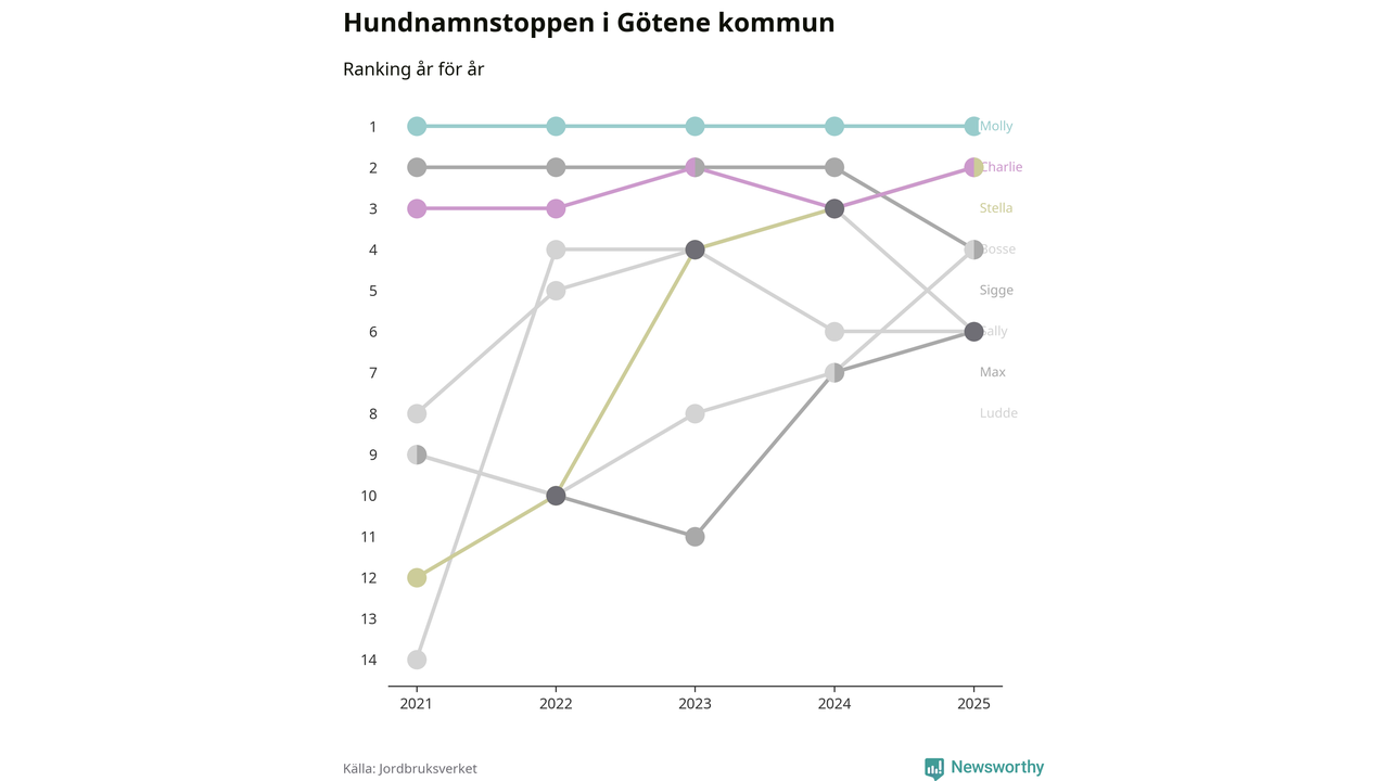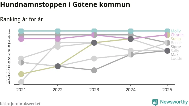 Molly toppar hundnamnsligan i Götene kommun, precis som i landet som helhet. Det visar färsk statistik från Jordbruksverket. Här finns hela topplistan för kommunen.