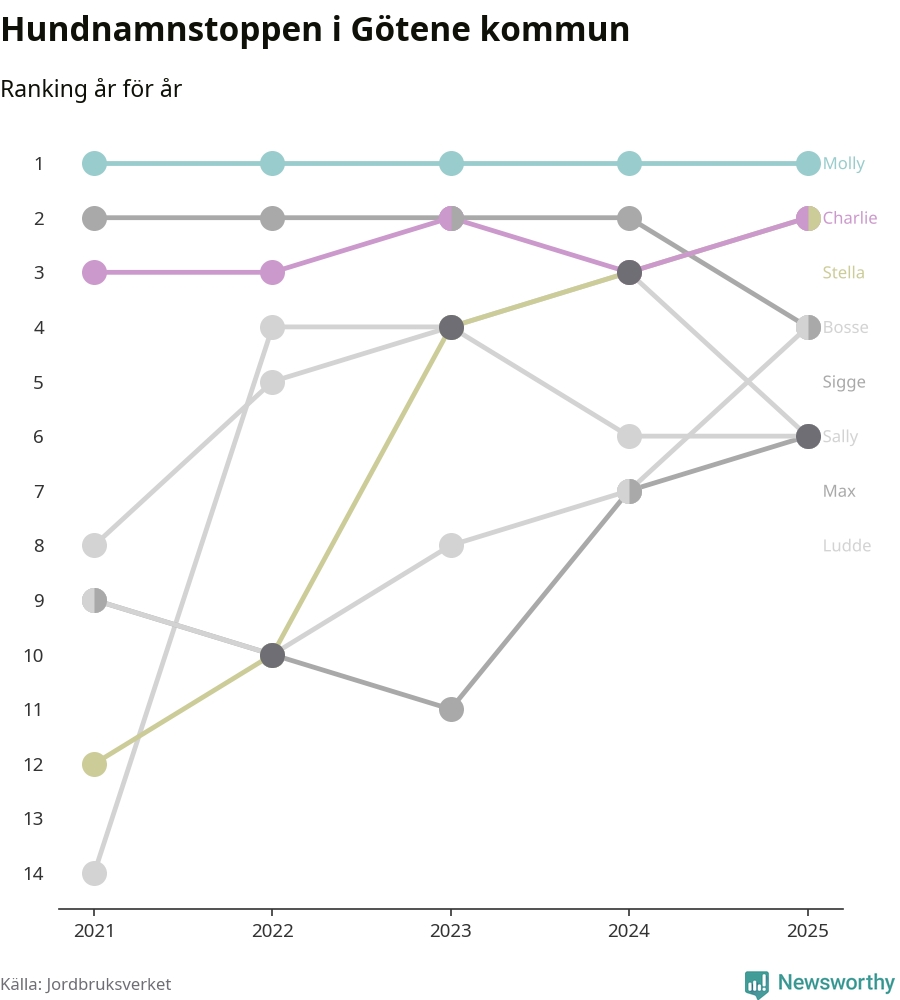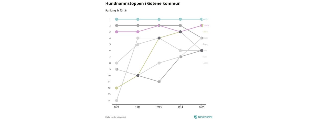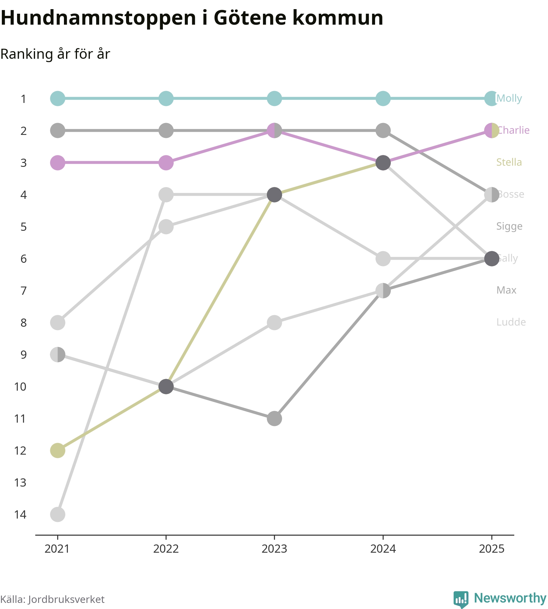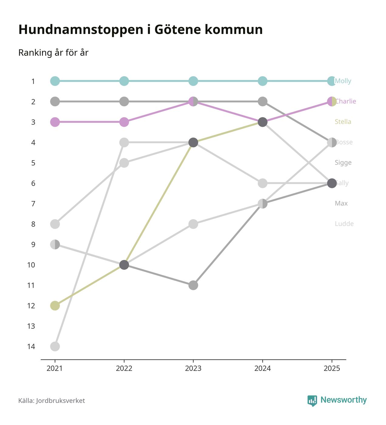 Molly toppar hundnamnsligan i Götene kommun, precis som i landet som helhet. Det visar färsk statistik från Jordbruksverket. Här finns hela topplistan för kommunen.