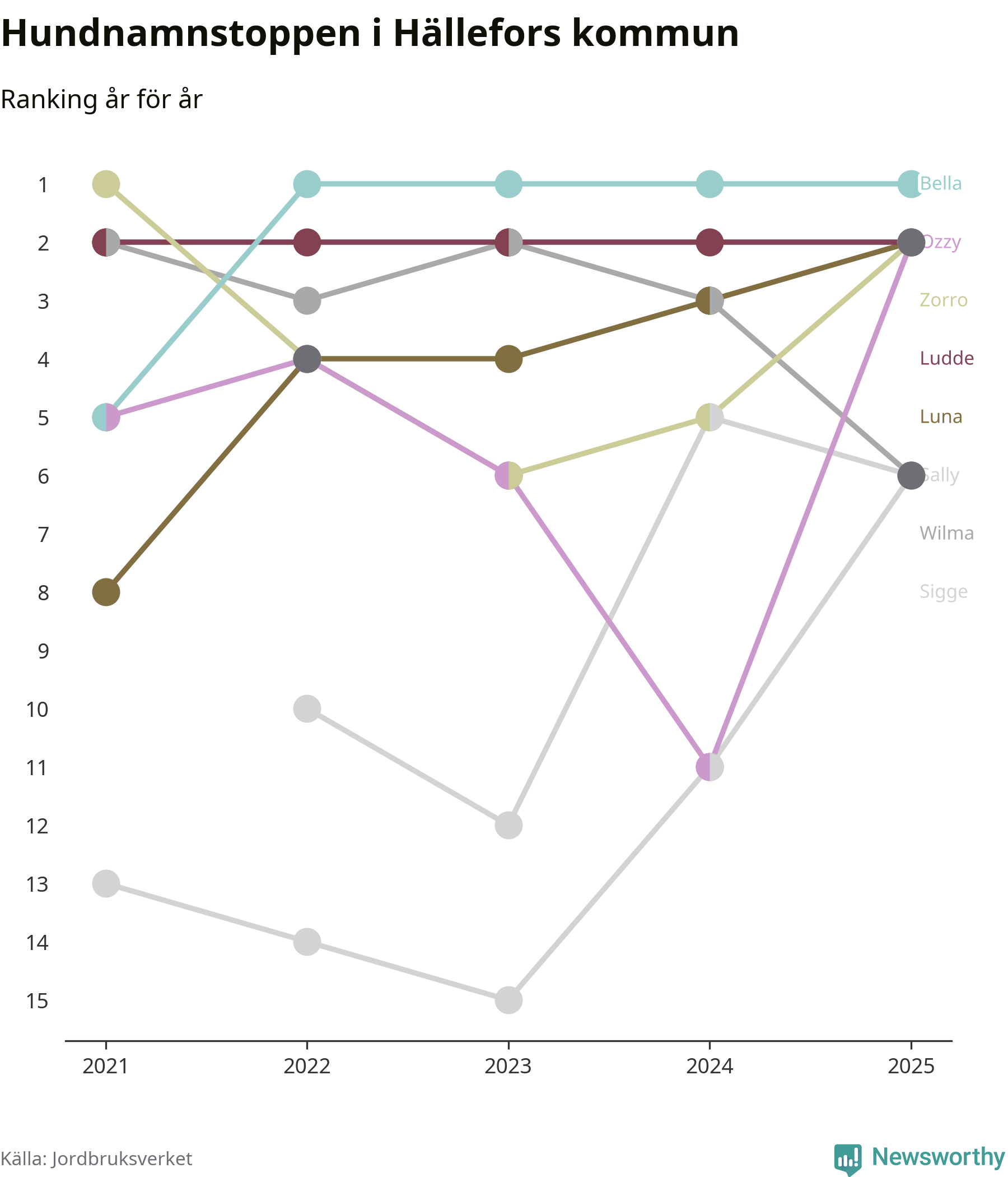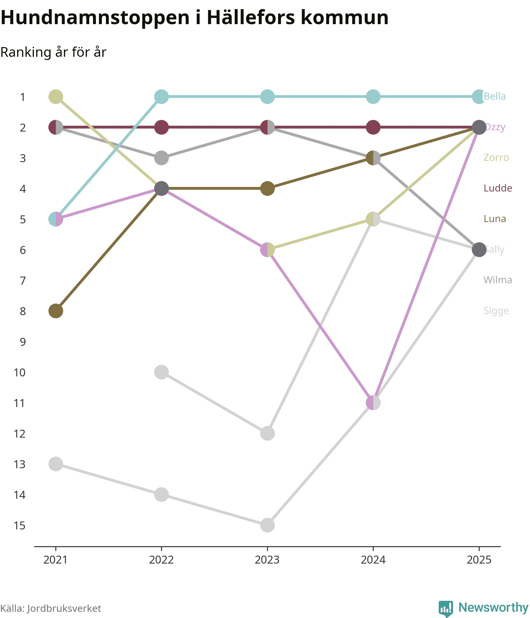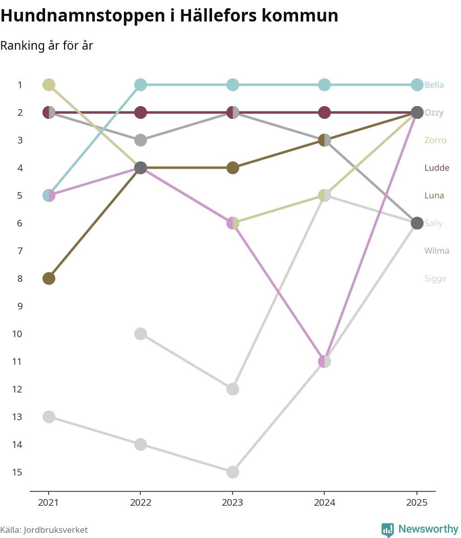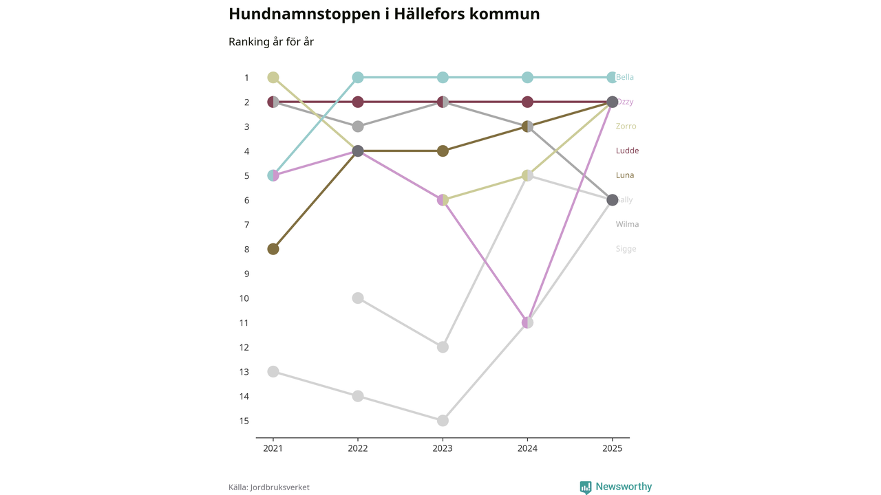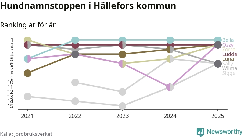 Bella är de vanligaste hundnamnen i Hällefors kommun, och bland de populärare även i riket som helhet. Det visar färsk statistik från Jordbruksverket. Här finns hela topplistan för kommunen.