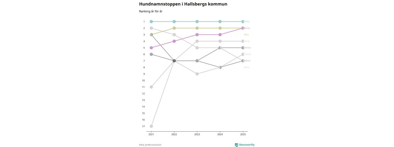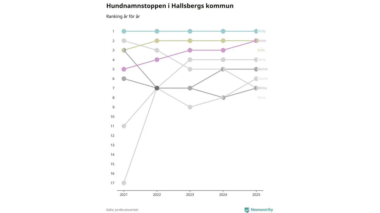 Molly toppar hundnamnsligan i Hallsbergs kommun, precis som i landet som helhet. Det visar färsk statistik från Jordbruksverket. Här finns hela topplistan för kommunen.