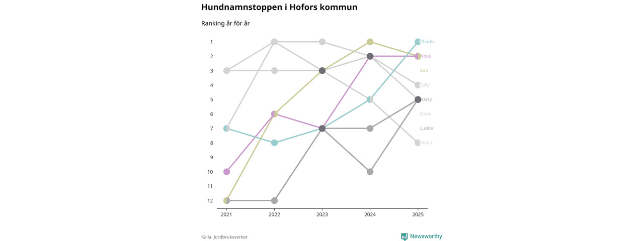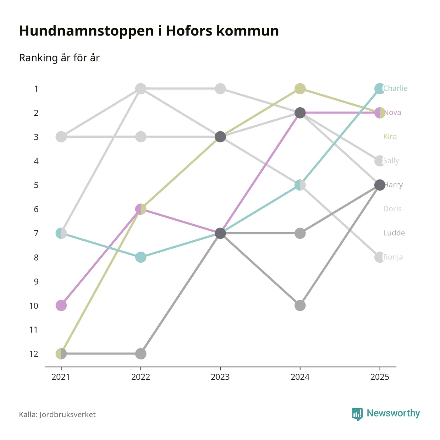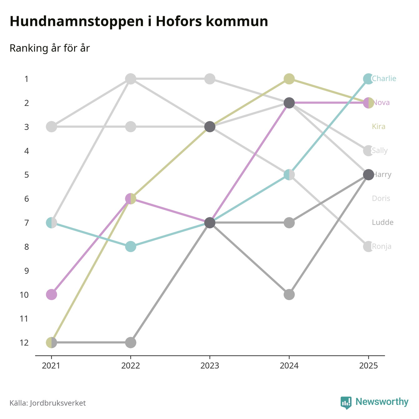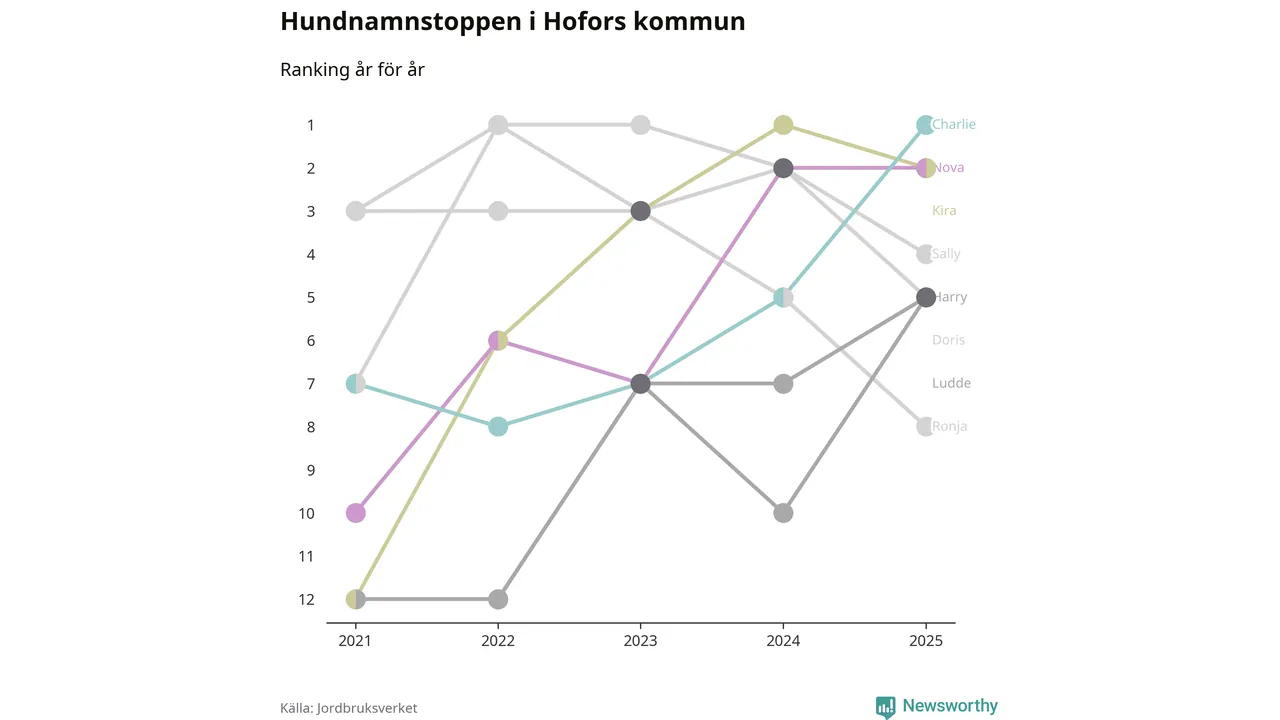 Charlie är ny etta på topplistan över Hofors hundnamn, visar ny statistik från Jordbruksverkets hundregister. Charlie finns också bland hela landets allra populäraste namn.