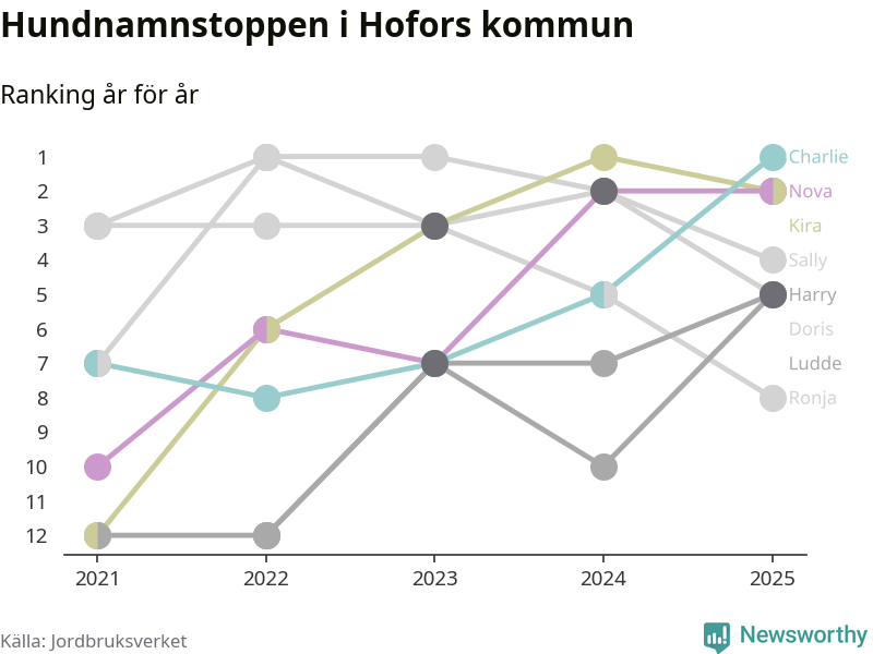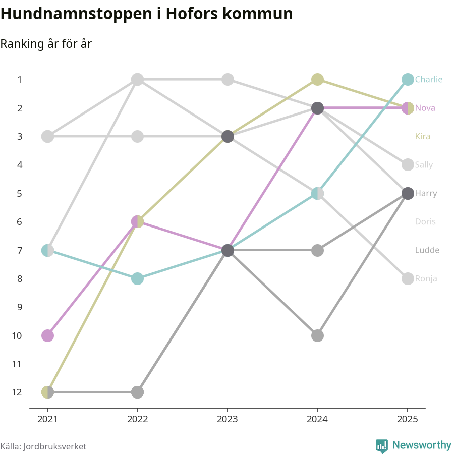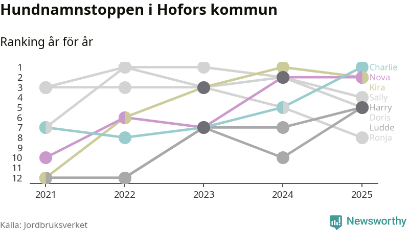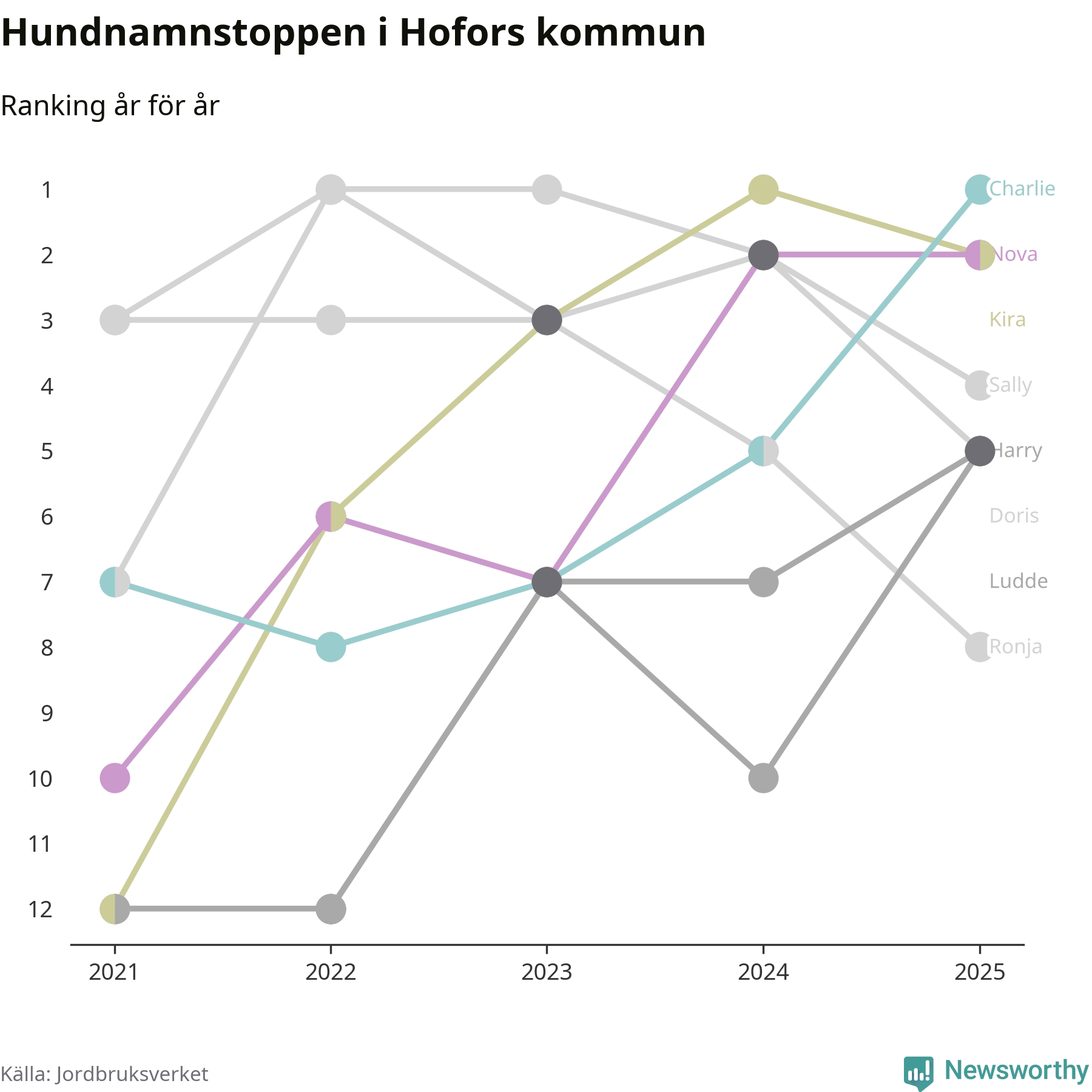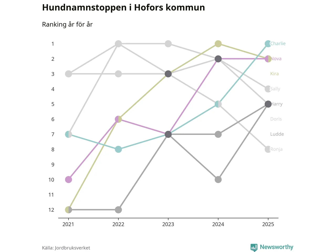 Charlie är ny etta på topplistan över Hofors hundnamn, visar ny statistik från Jordbruksverkets hundregister. Charlie finns också bland hela landets allra populäraste namn.