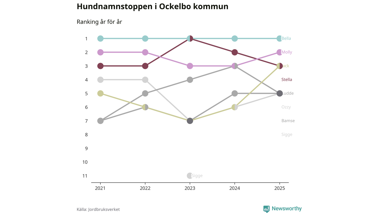 Vanligaste hundnamnen i Ockelbo kommun