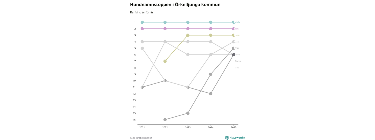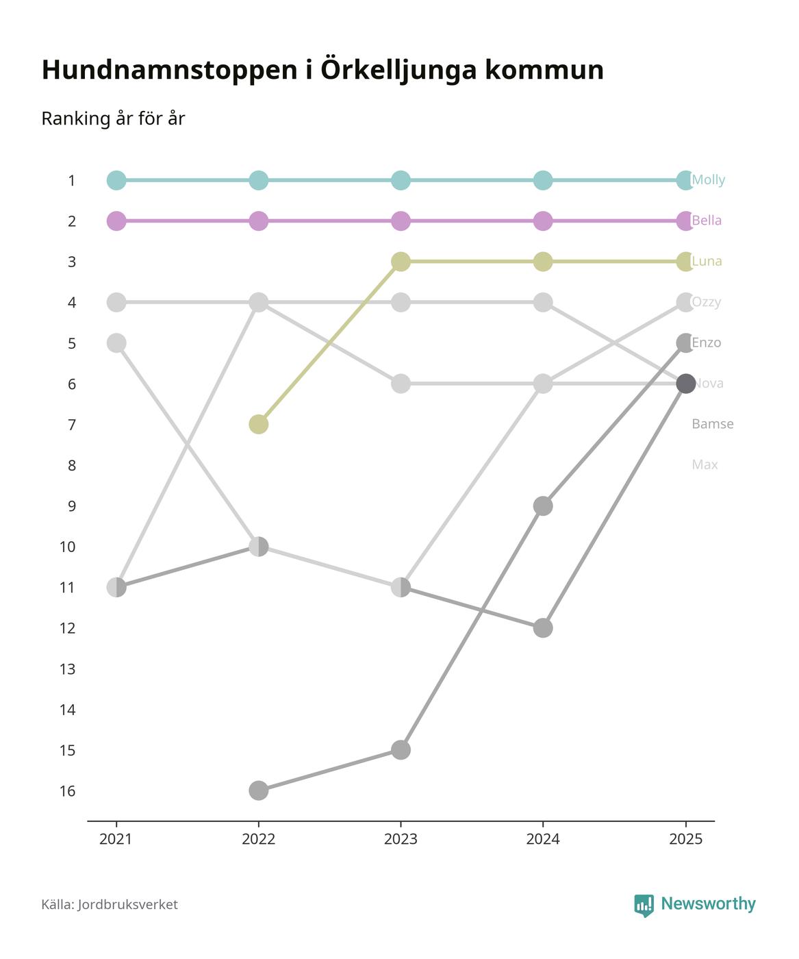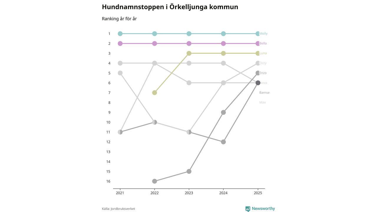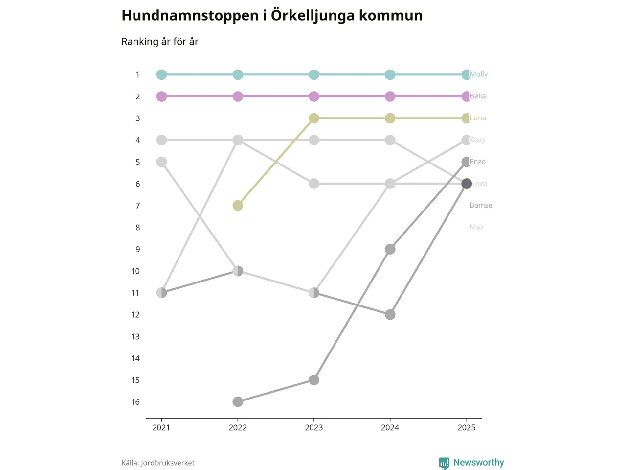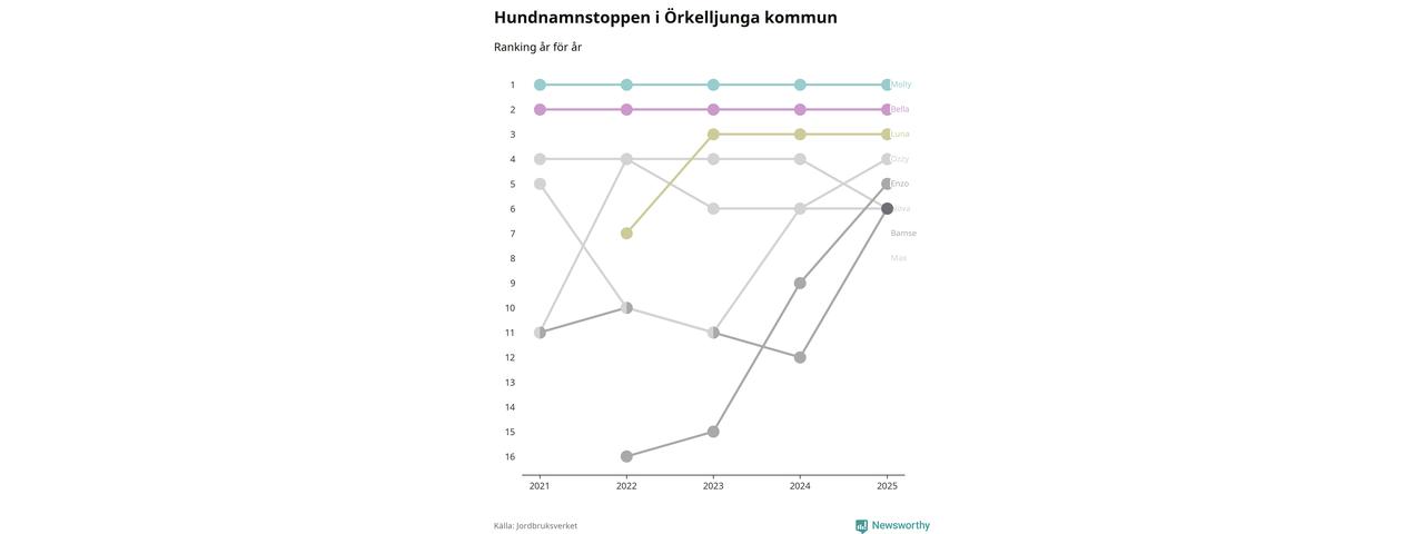 Molly toppar hundnamnsligan i Örkelljunga kommun, precis som i landet som helhet. Det visar färsk statistik från Jordbruksverket. Här finns hela topplistan för kommunen.