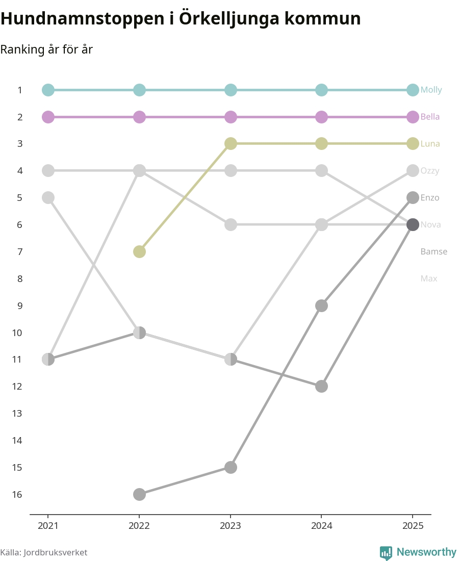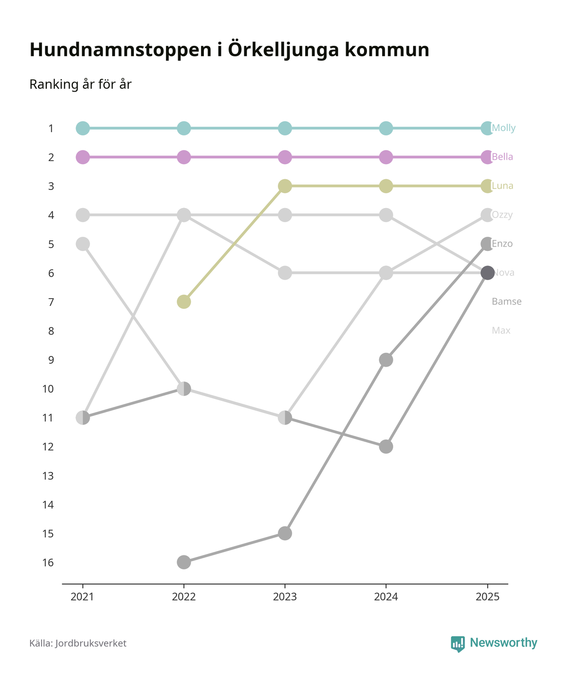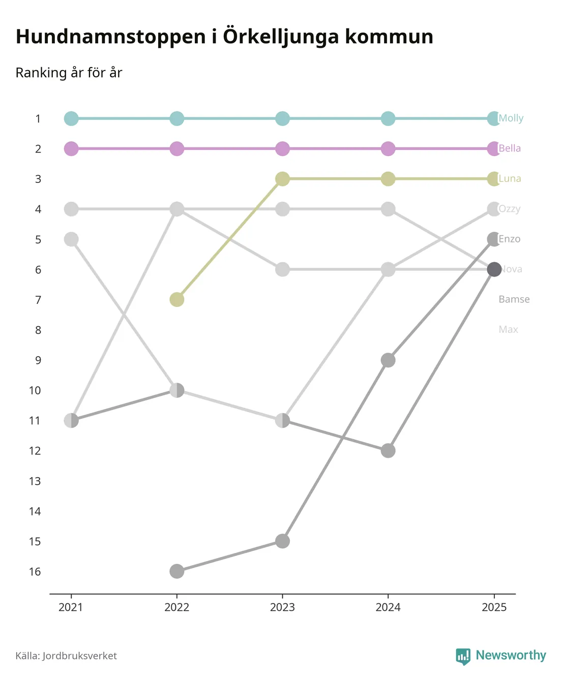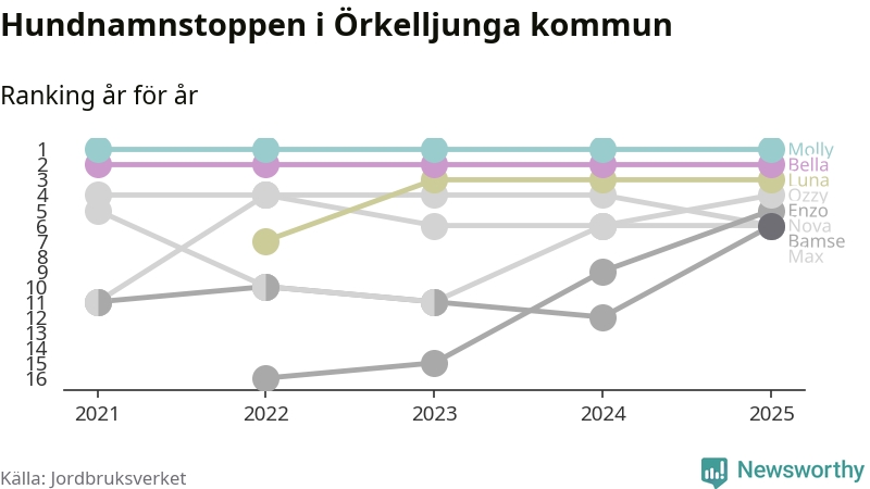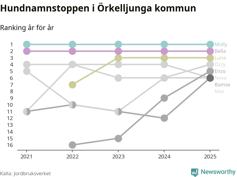 Molly toppar hundnamnsligan i Örkelljunga kommun, precis som i landet som helhet. Det visar färsk statistik från Jordbruksverket. Här finns hela topplistan för kommunen.