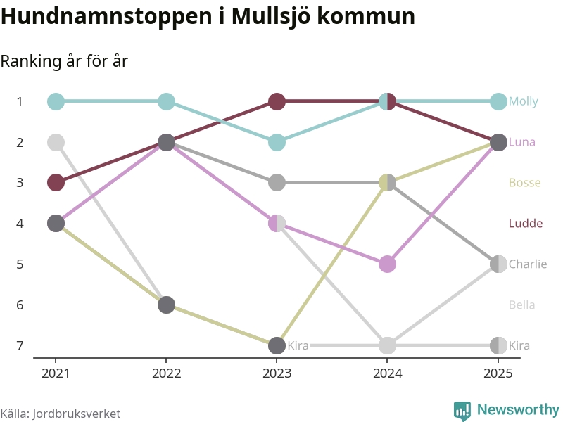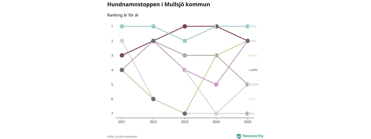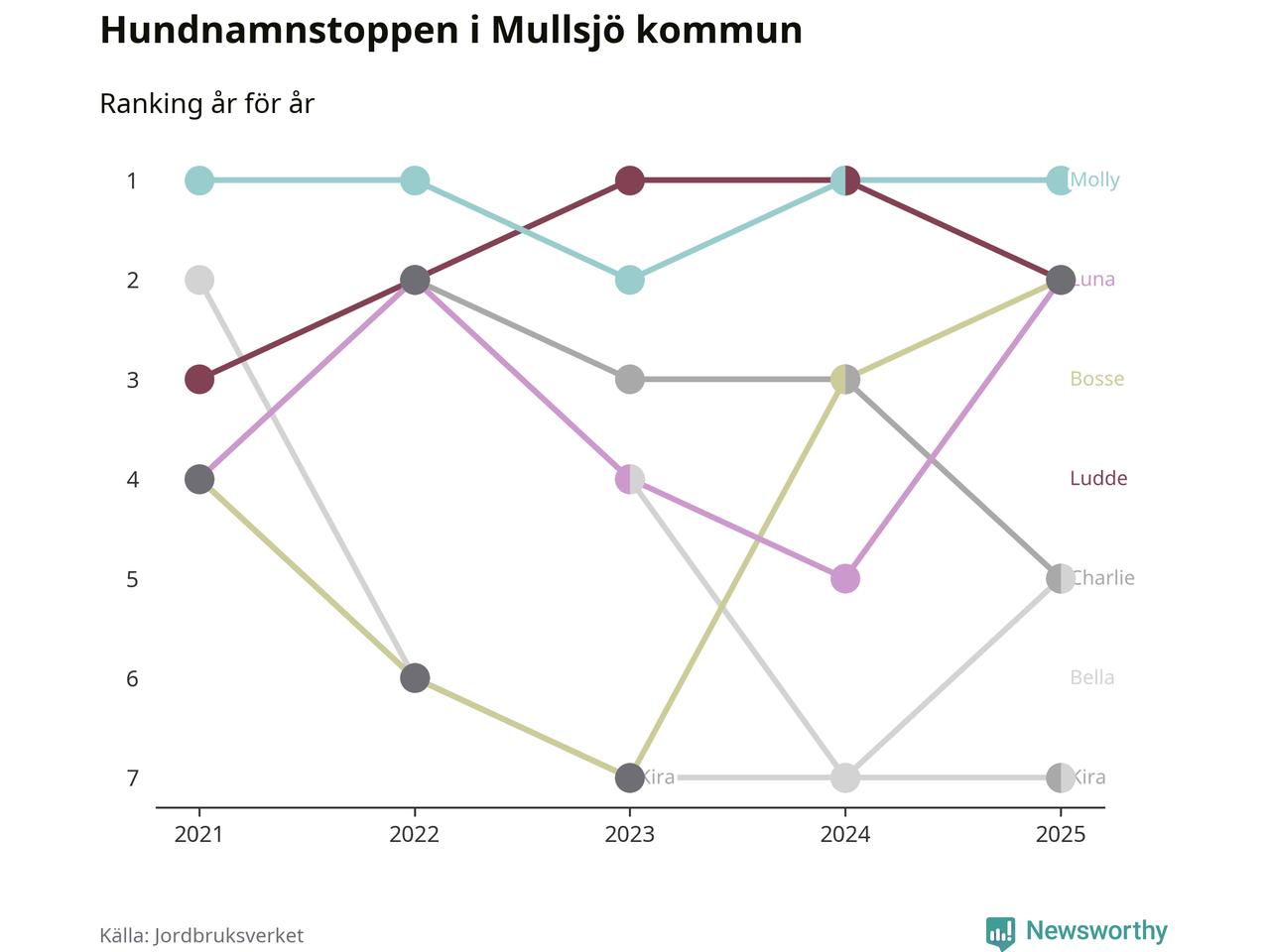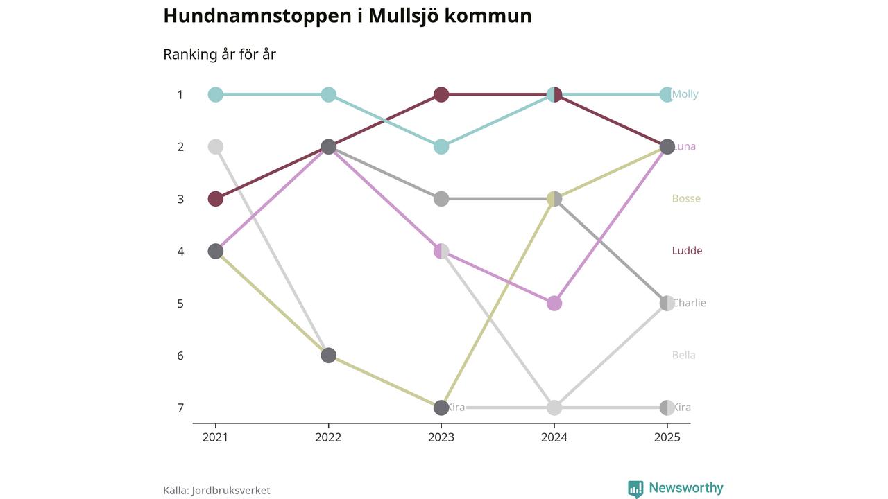 Molly toppar hundnamnsligan i Mullsjö kommun,