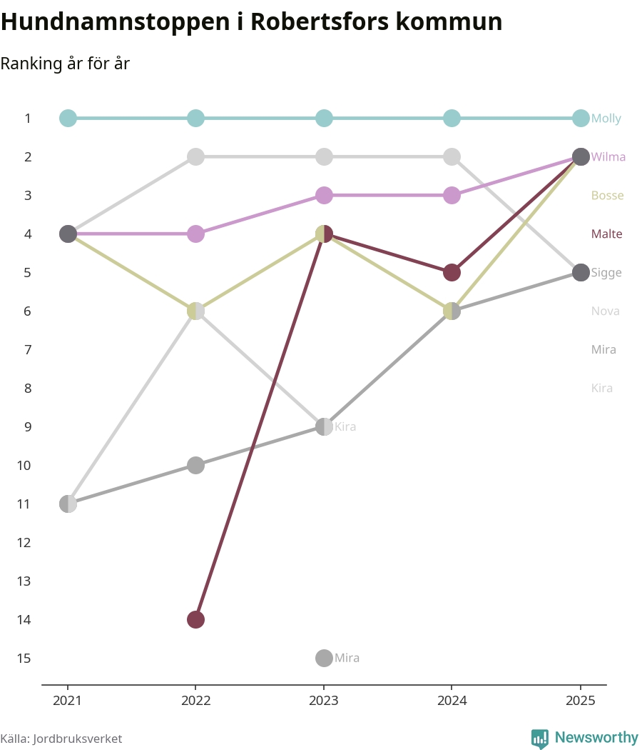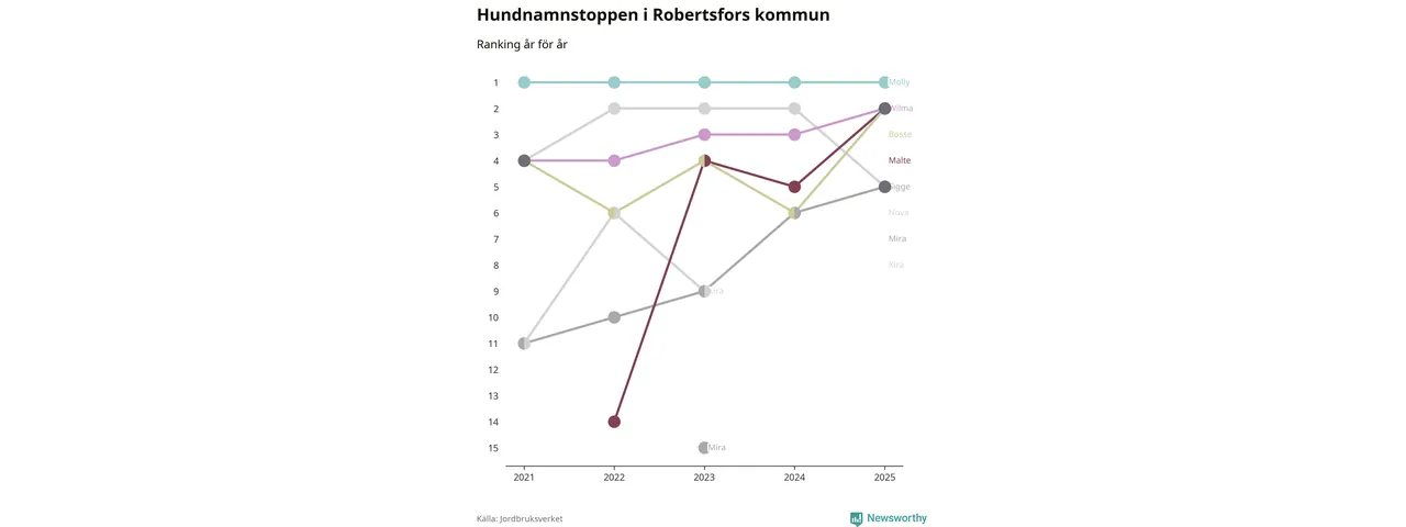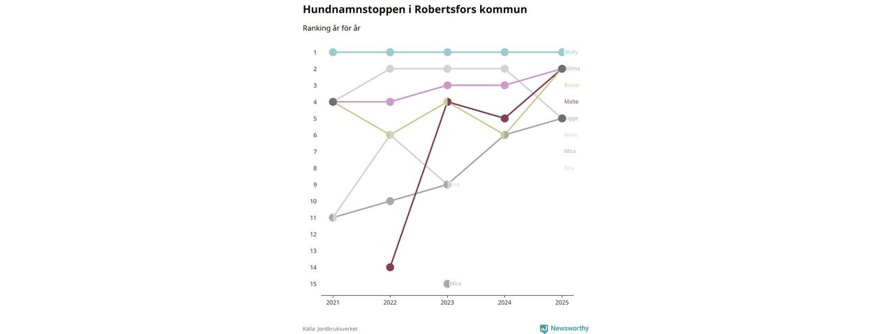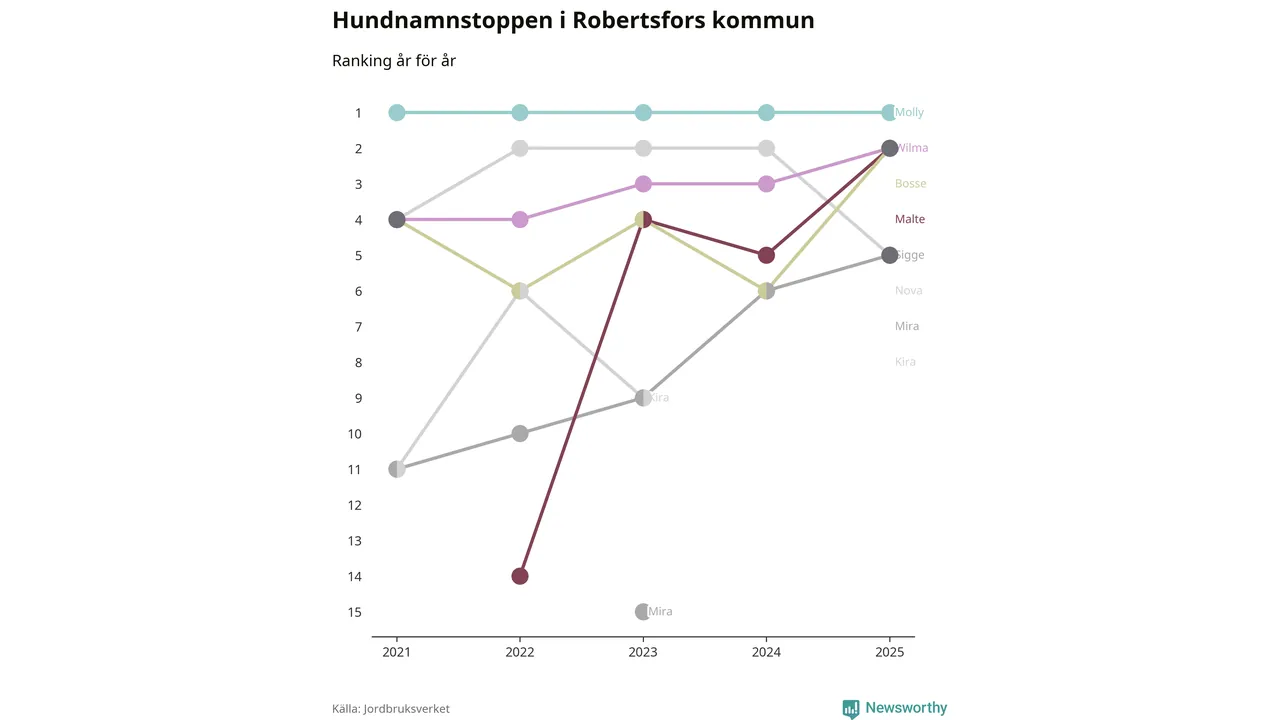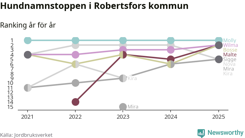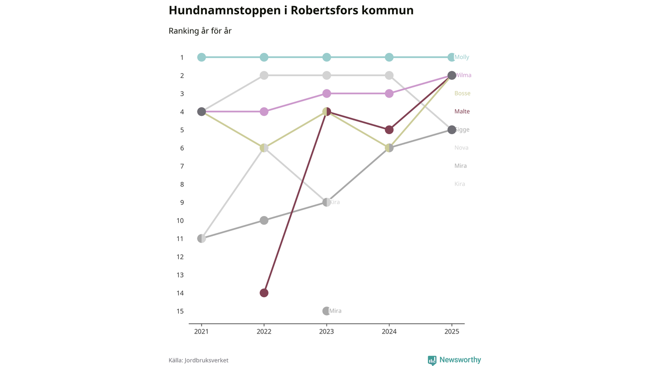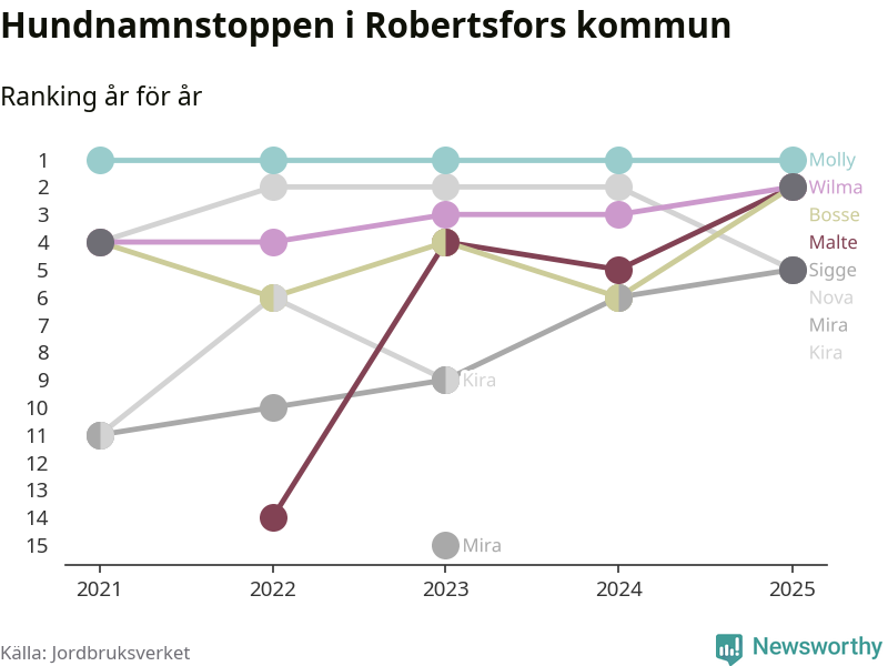 Molly toppar hundnamnsligan i Robertsfors kommun,