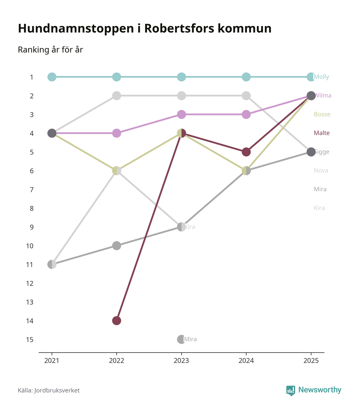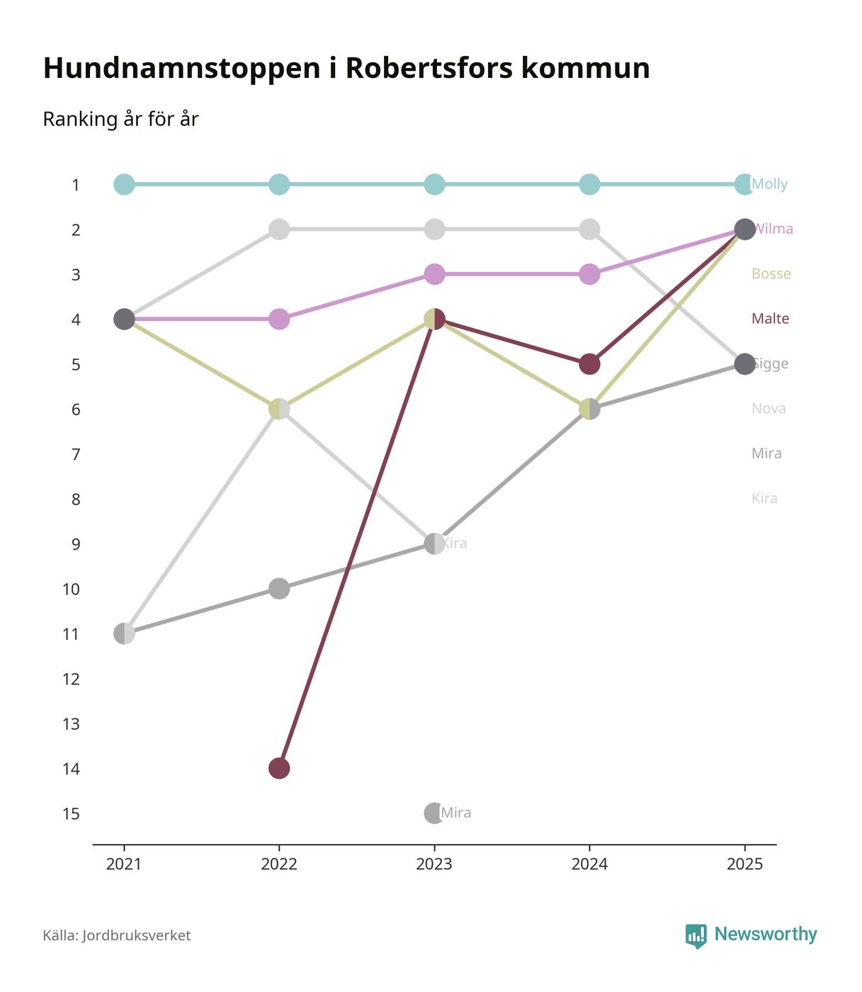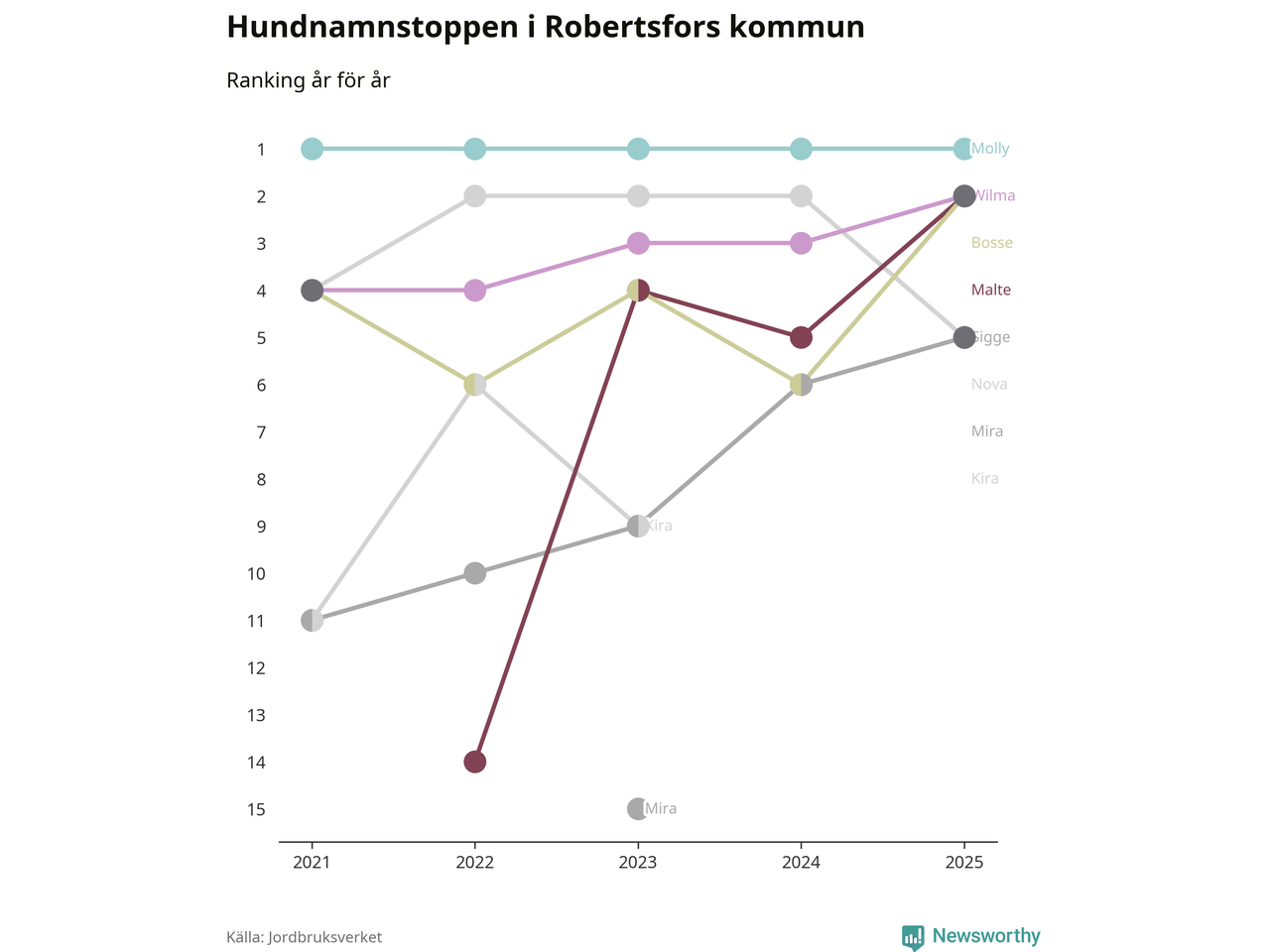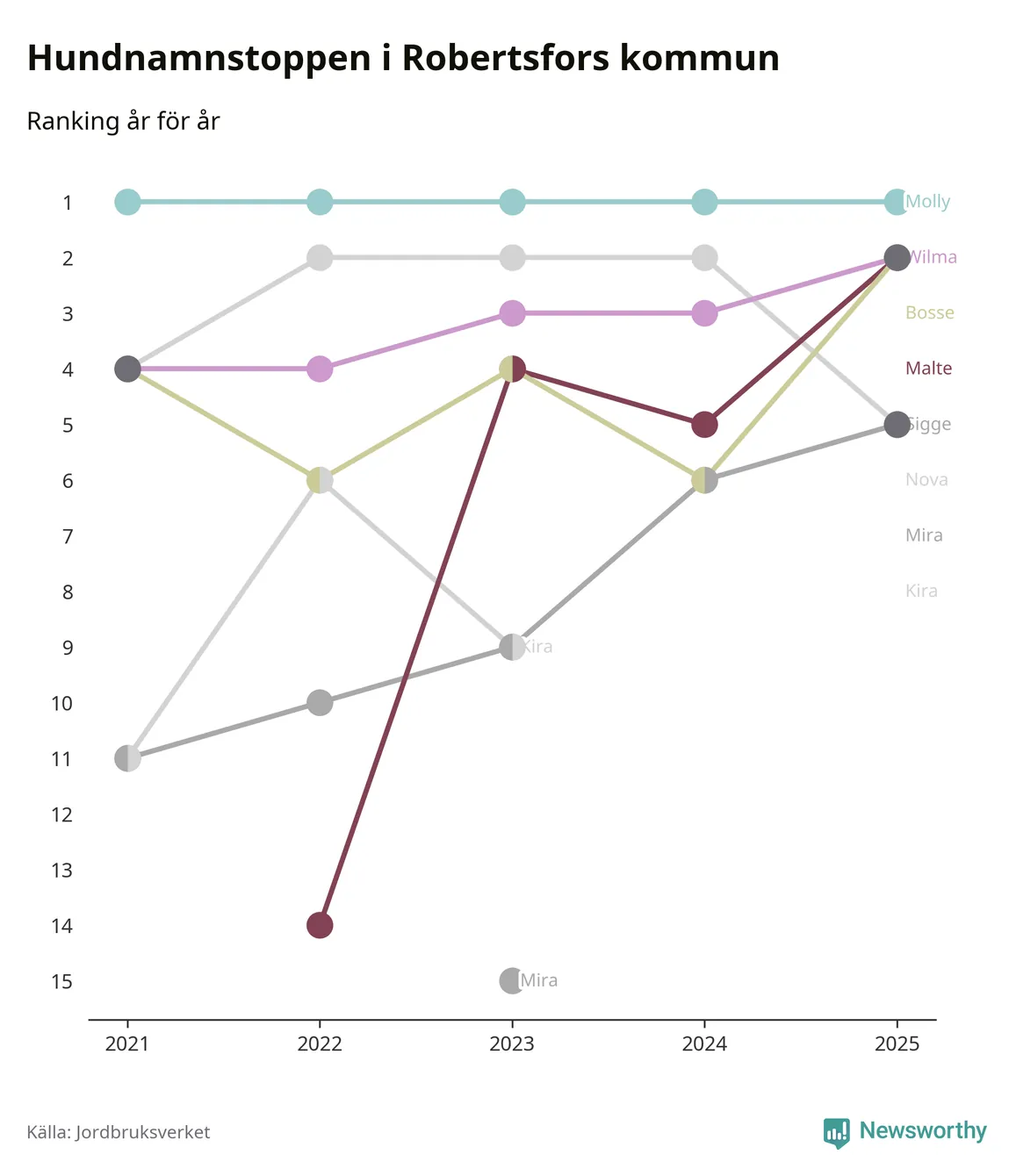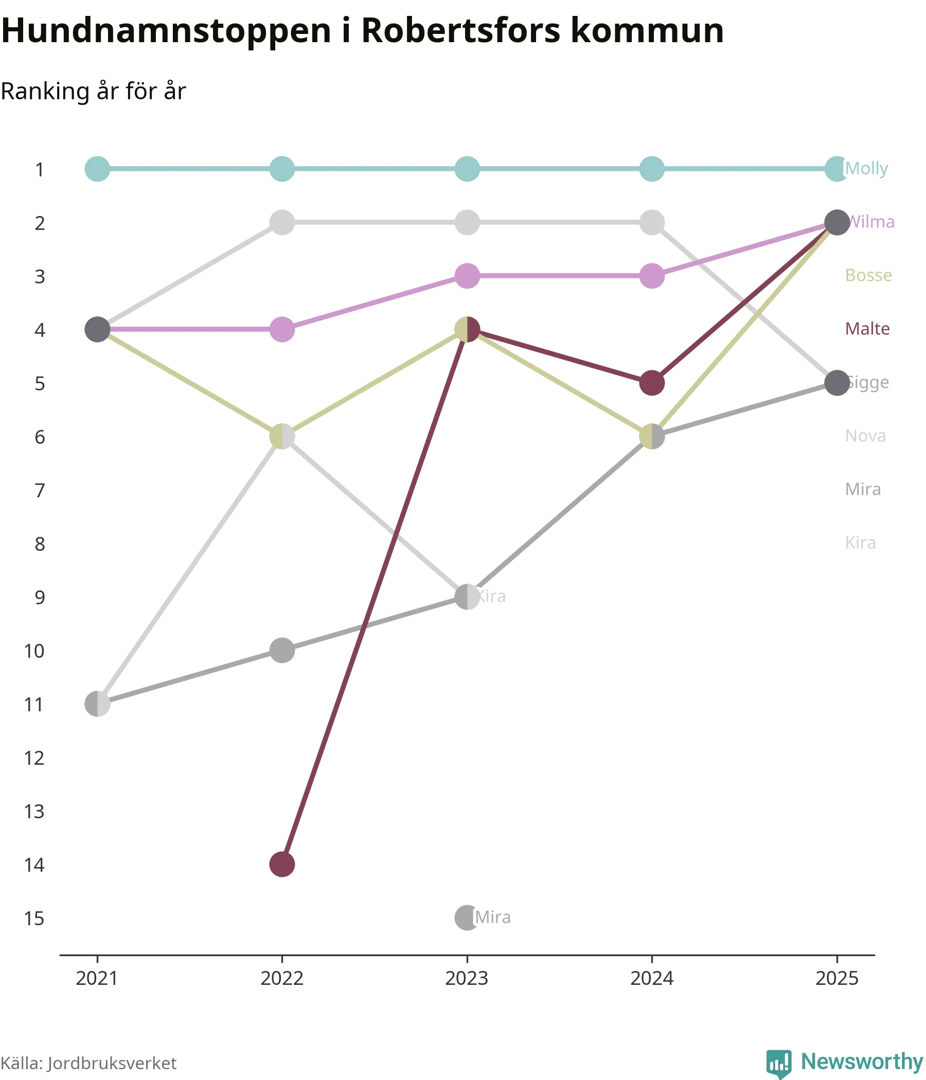 Molly toppar hundnamnsligan i Robertsfors kommun,