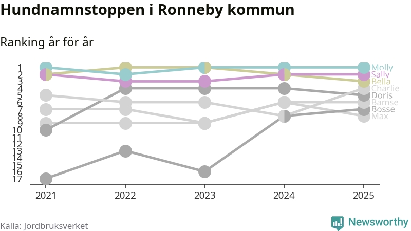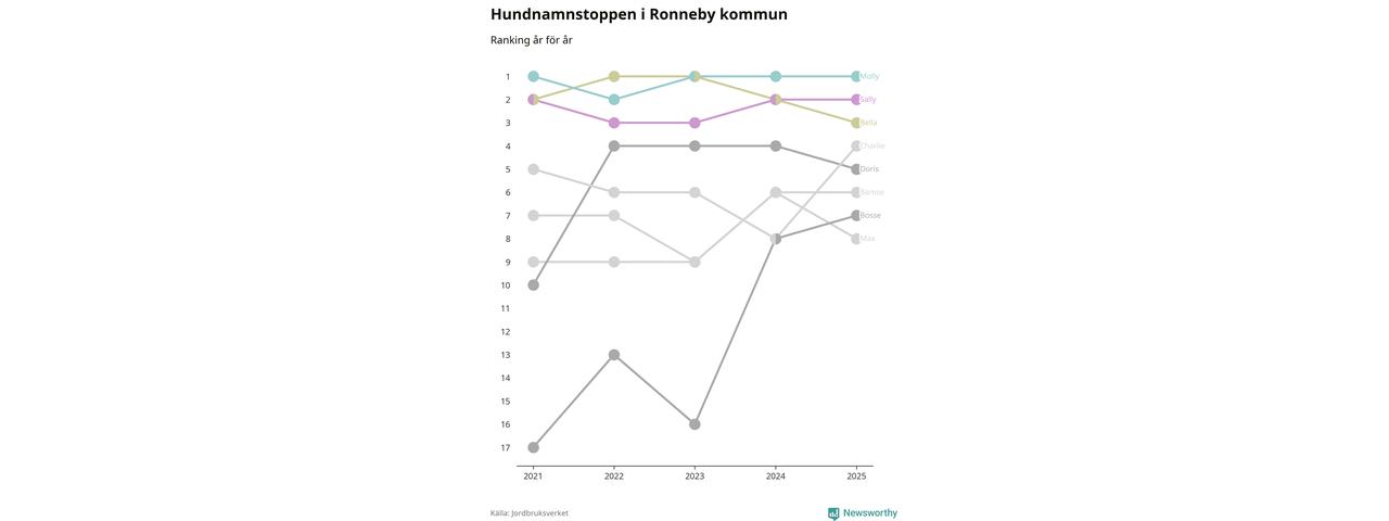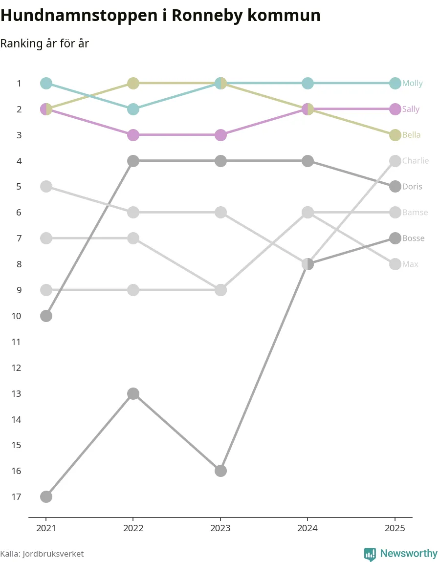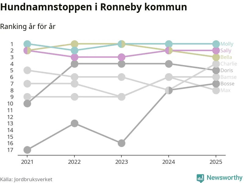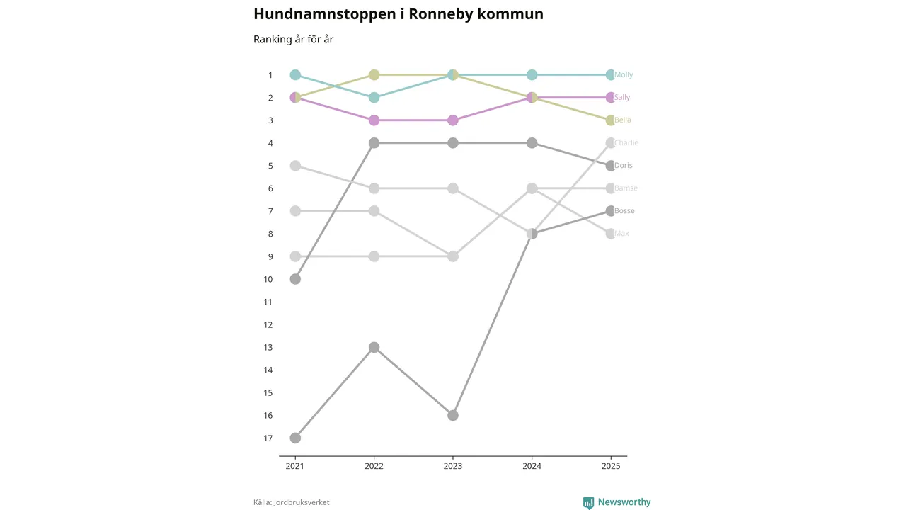 Molly toppar hundnamnsligan i Ronneby kommun, precis som i landet som helhet. Det visar färsk statistik från Jordbruksverket. Här finns hela topplistan för kommunen.