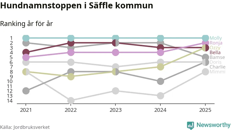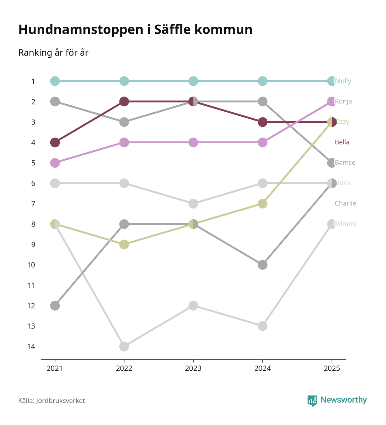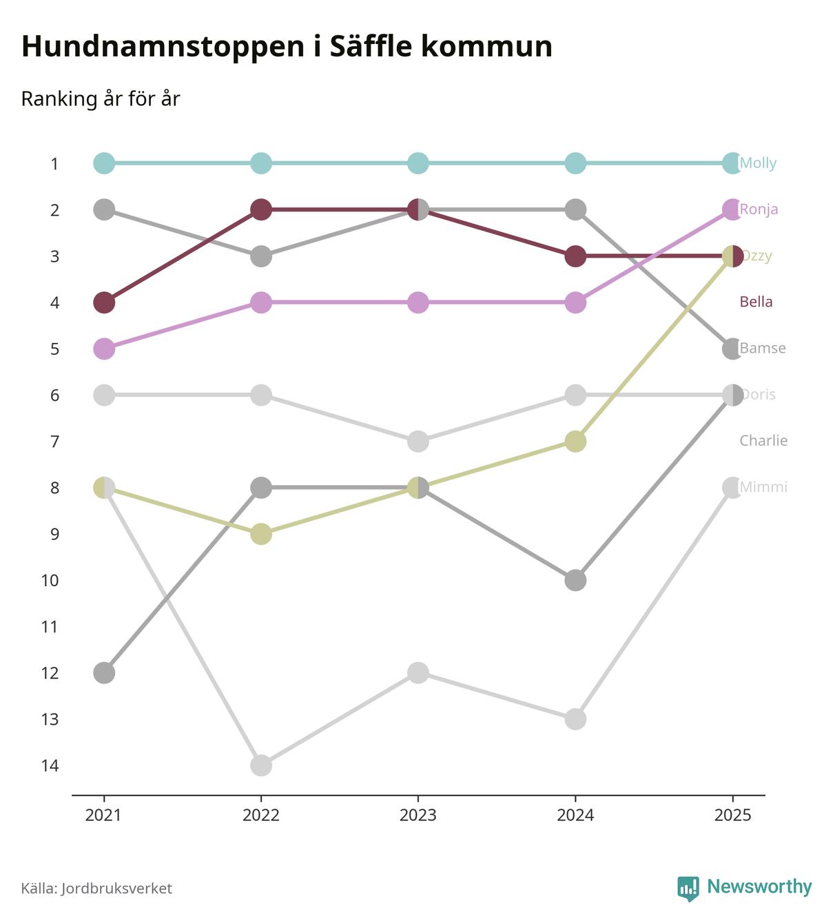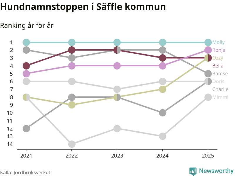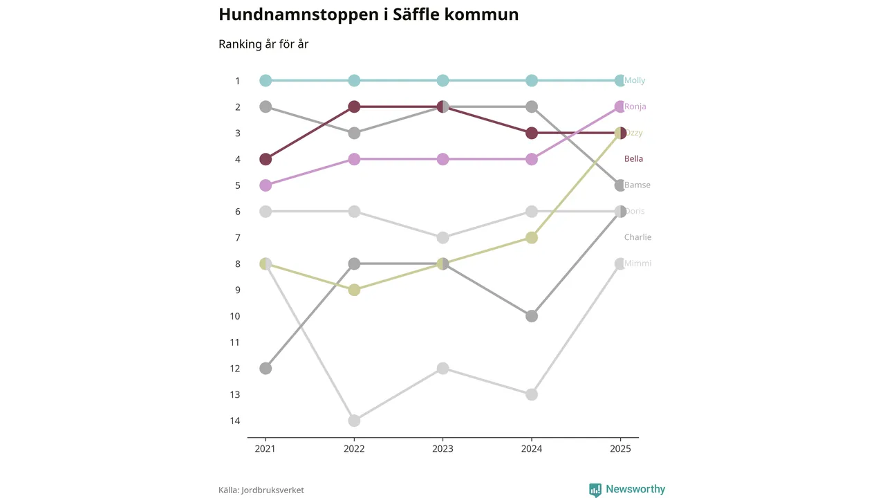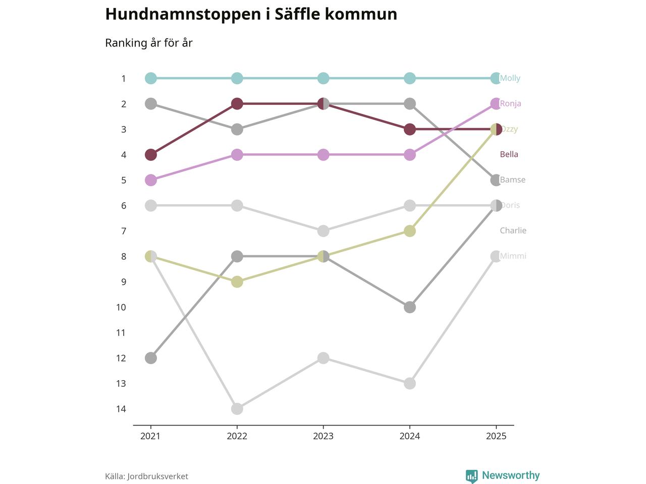 Molly toppar hundnamnsligan i Säffle kommun, precis som i landet som helhet. Det visar färsk statistik från Jordbruksverket. Här finns hela topplistan för kommunen.