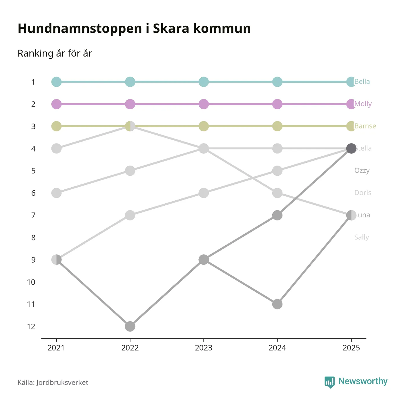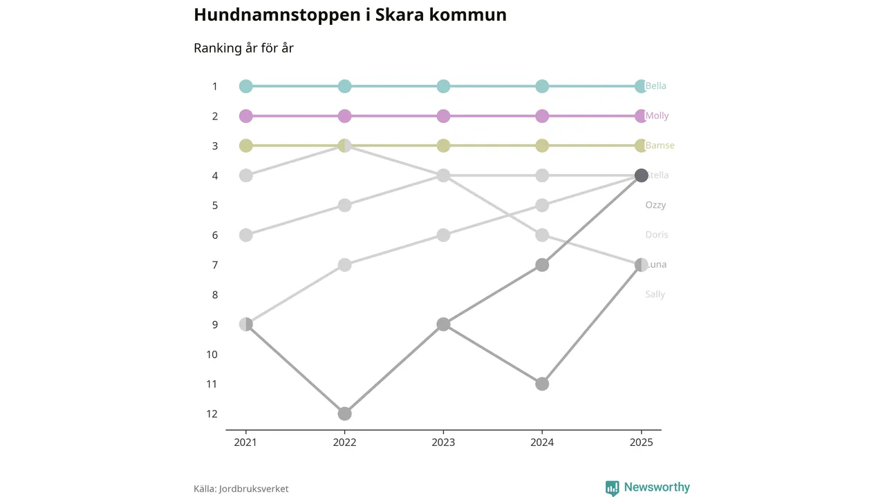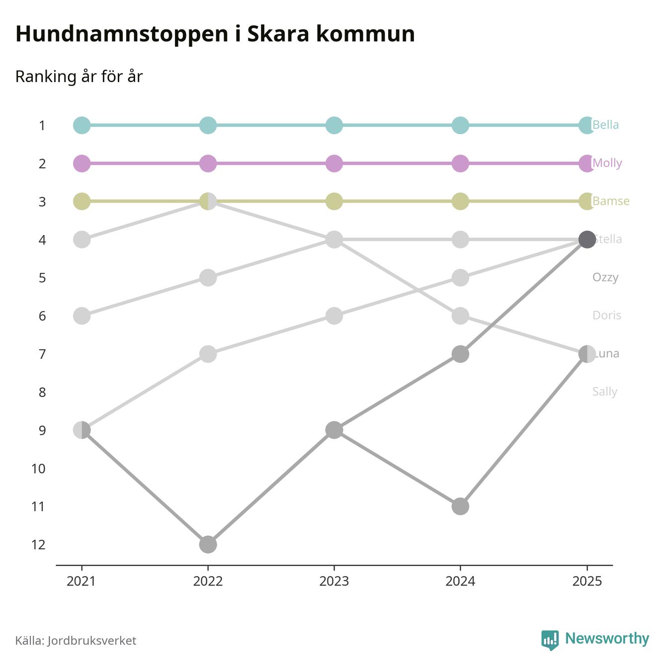 Bella är de vanligaste hundnamnen i Skara kommun, och bland de populärare även i riket som helhet. Det visar färsk statistik från Jordbruksverket. Här finns hela topplistan för kommunen.