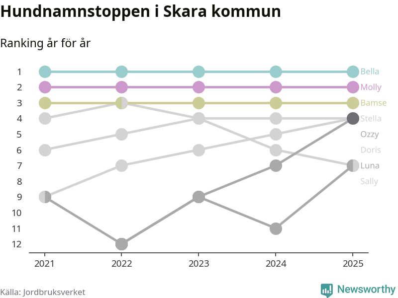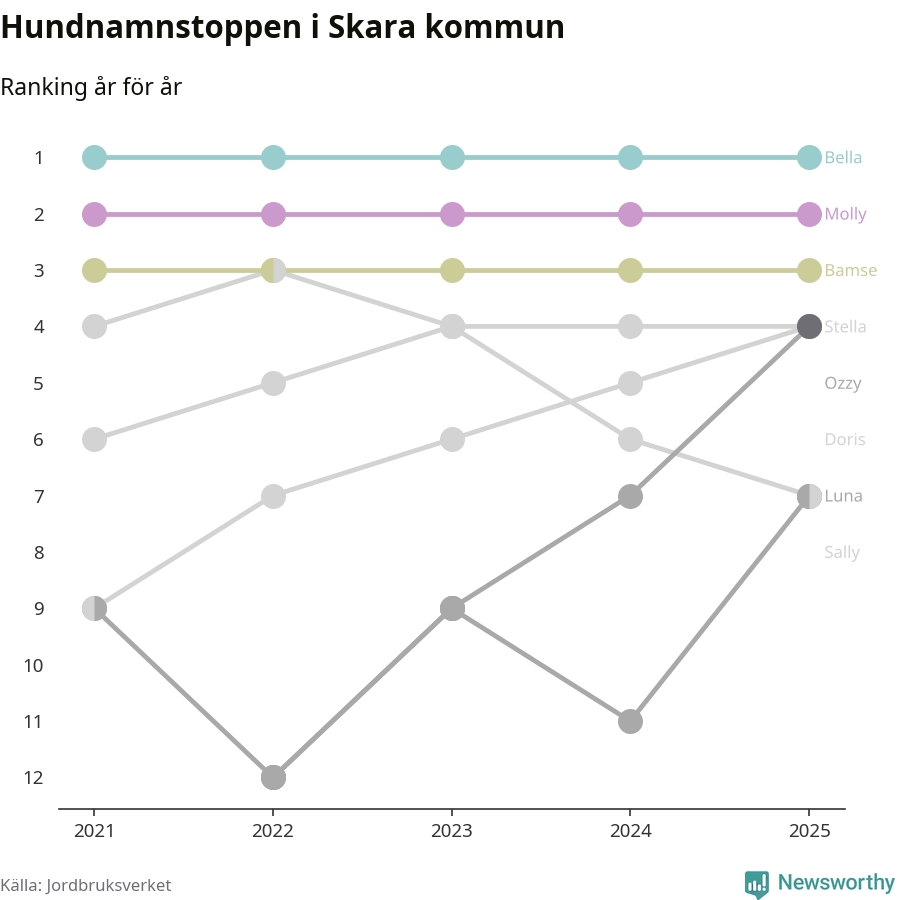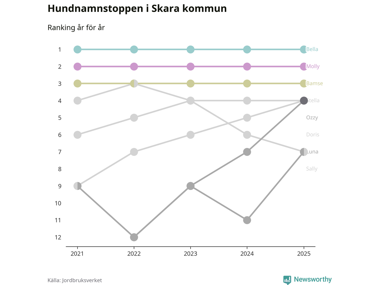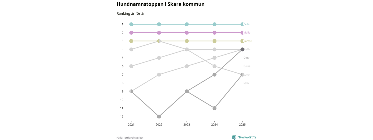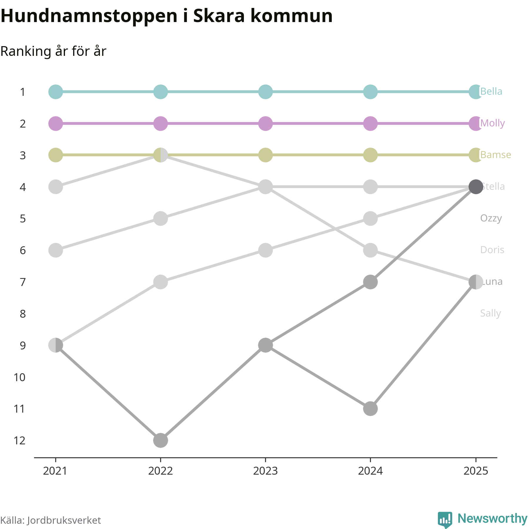 Bella är de vanligaste hundnamnen i Skara kommun, och bland de populärare även i riket som helhet. Det visar färsk statistik från Jordbruksverket. Här finns hela topplistan för kommunen.