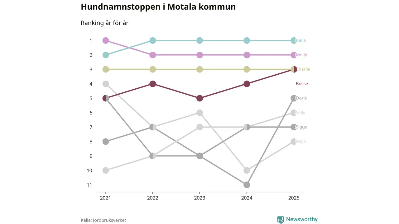Doris klättrar på topplistan bland Motalas hundnamn, visar ny statistik från Jordbruksverkets hundregister.